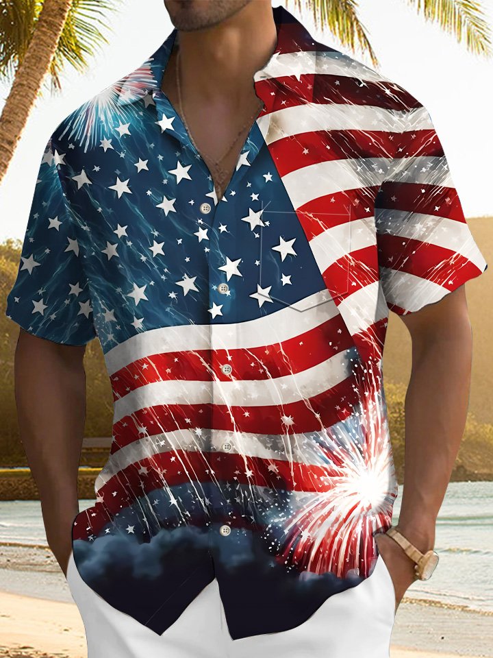 Alohadaddy Summer Independence Day Holiday Flag Retro Casual Vacation Shirt