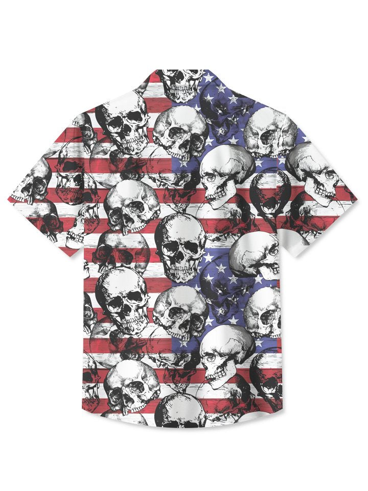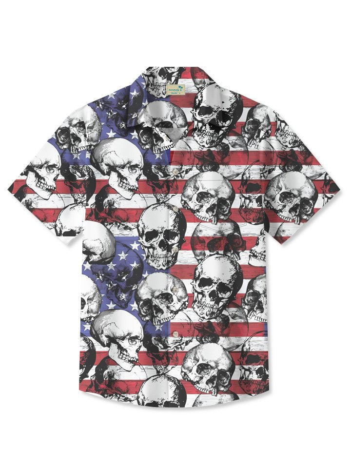 Alohadaddy Summer Independence Day Holiday Skull Retro Casual Vacation Shirt