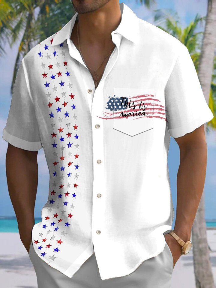 Alohadaddy Summer Stars Flag Independence Day Commute Casual 50s Vintage Bowling Shirt