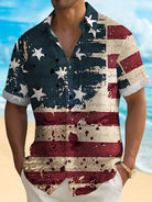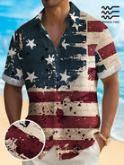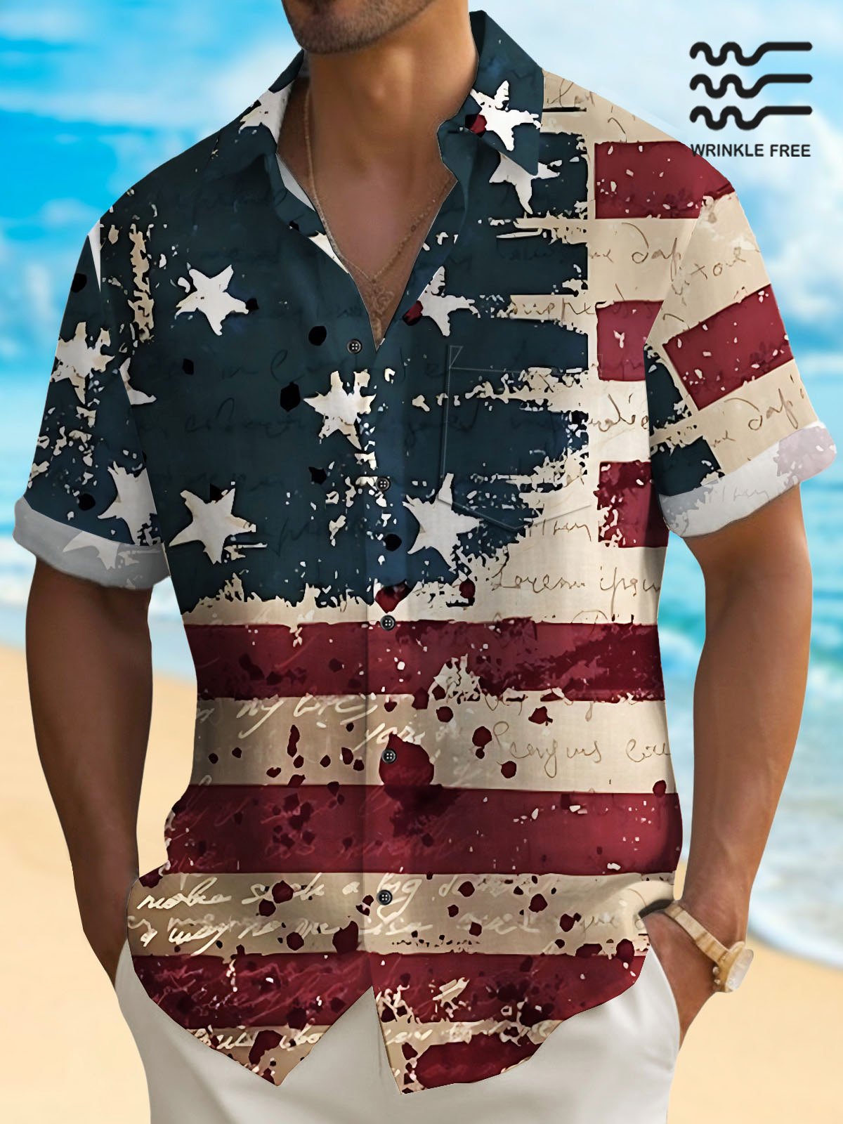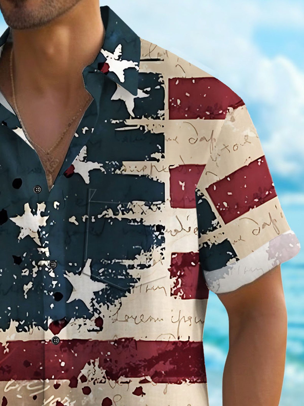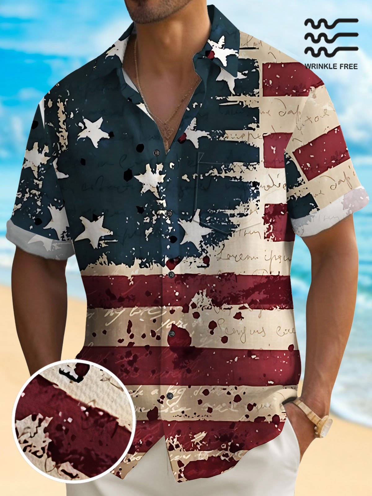 Alohadaddy Vintage American Flag Men's Hawaiian Shirt Wrinkle Free Seersucker The Fourth Of July Shirt Big Tall