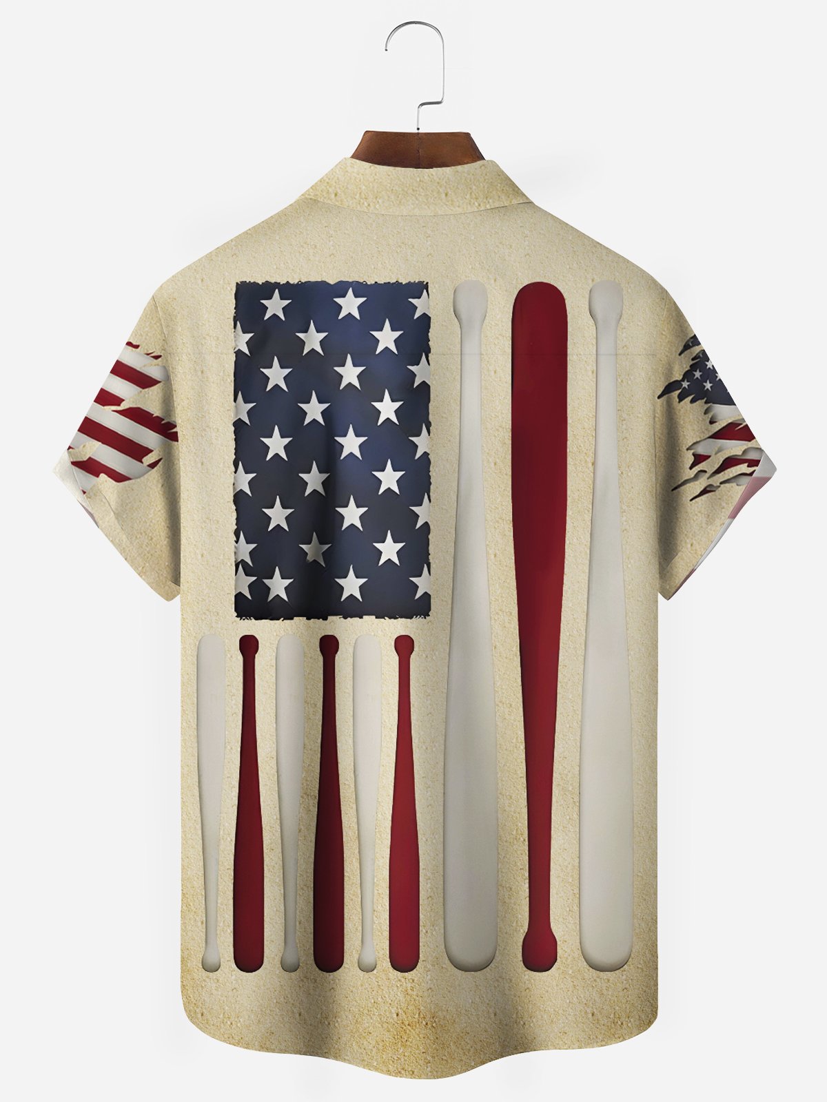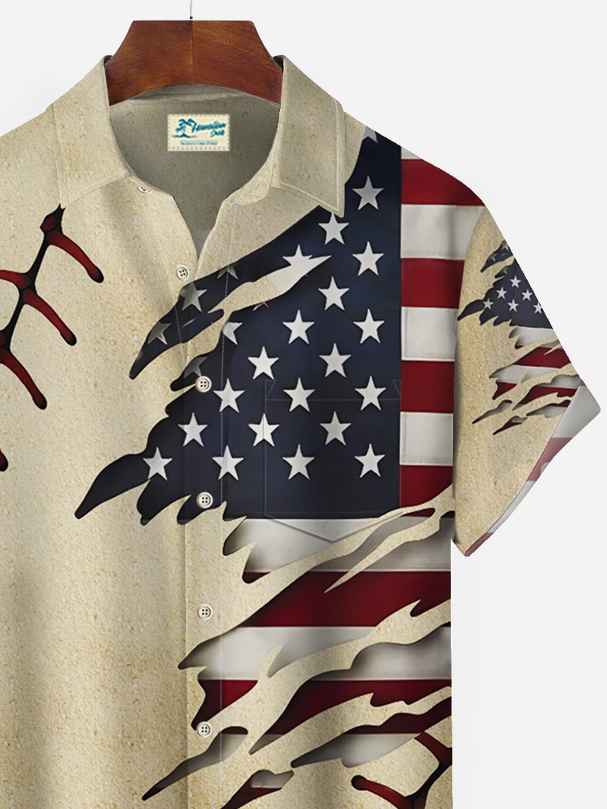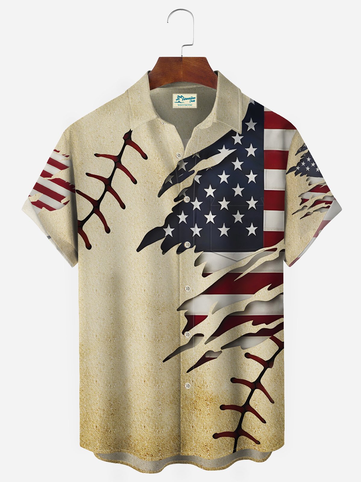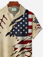 Alohadaddy Vintage Baseball American Flag Khaki Men's Hawaiian Shirts Stretch Aloha Camp Pocket Shirts