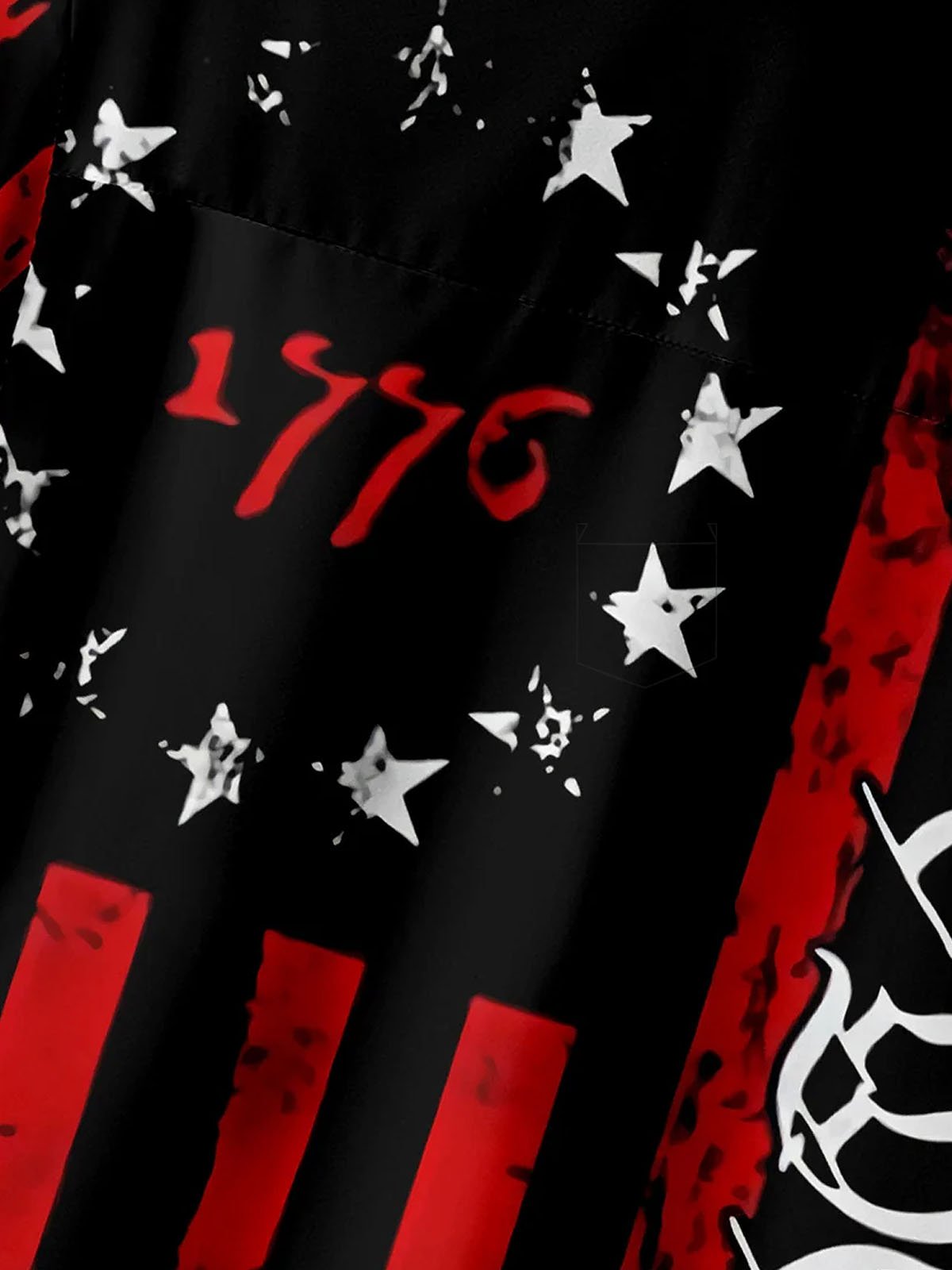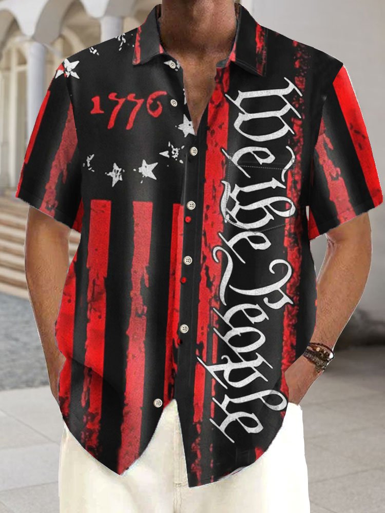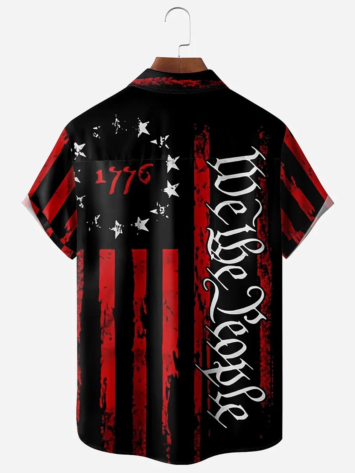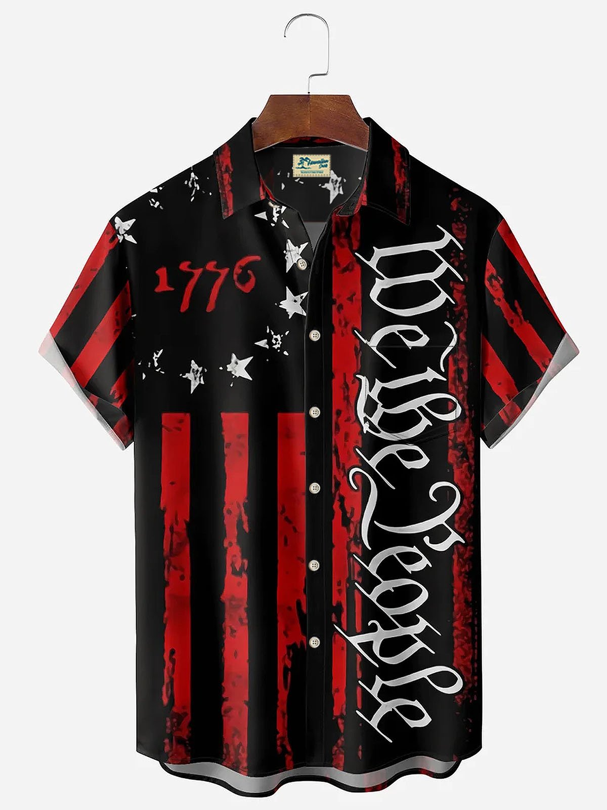 Alohadaddy Vintage Flag Letter Print Men's Button Pocket Shirt
