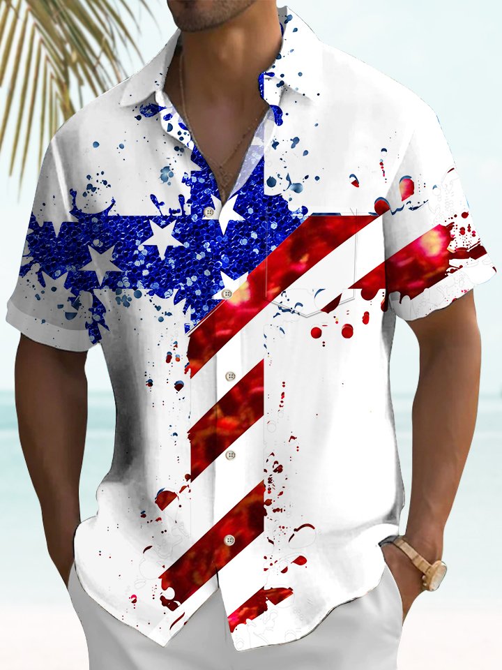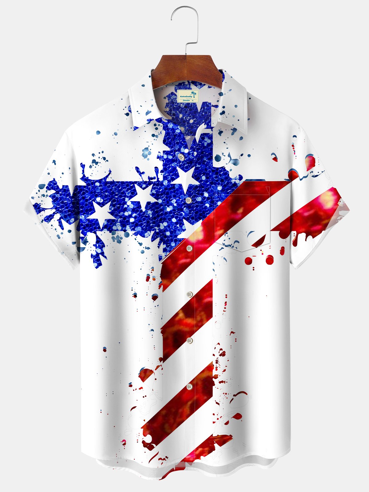 Alohadaddy Vintage Holiday American Flag Independence Day Holiday Shirt Polyester Shirts