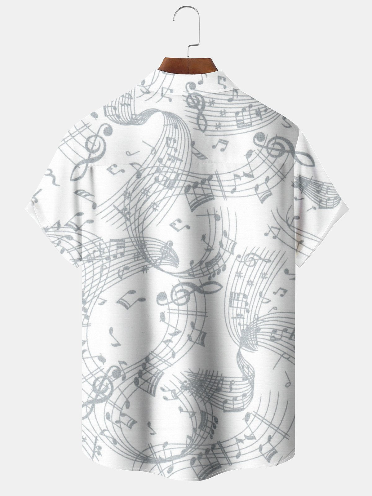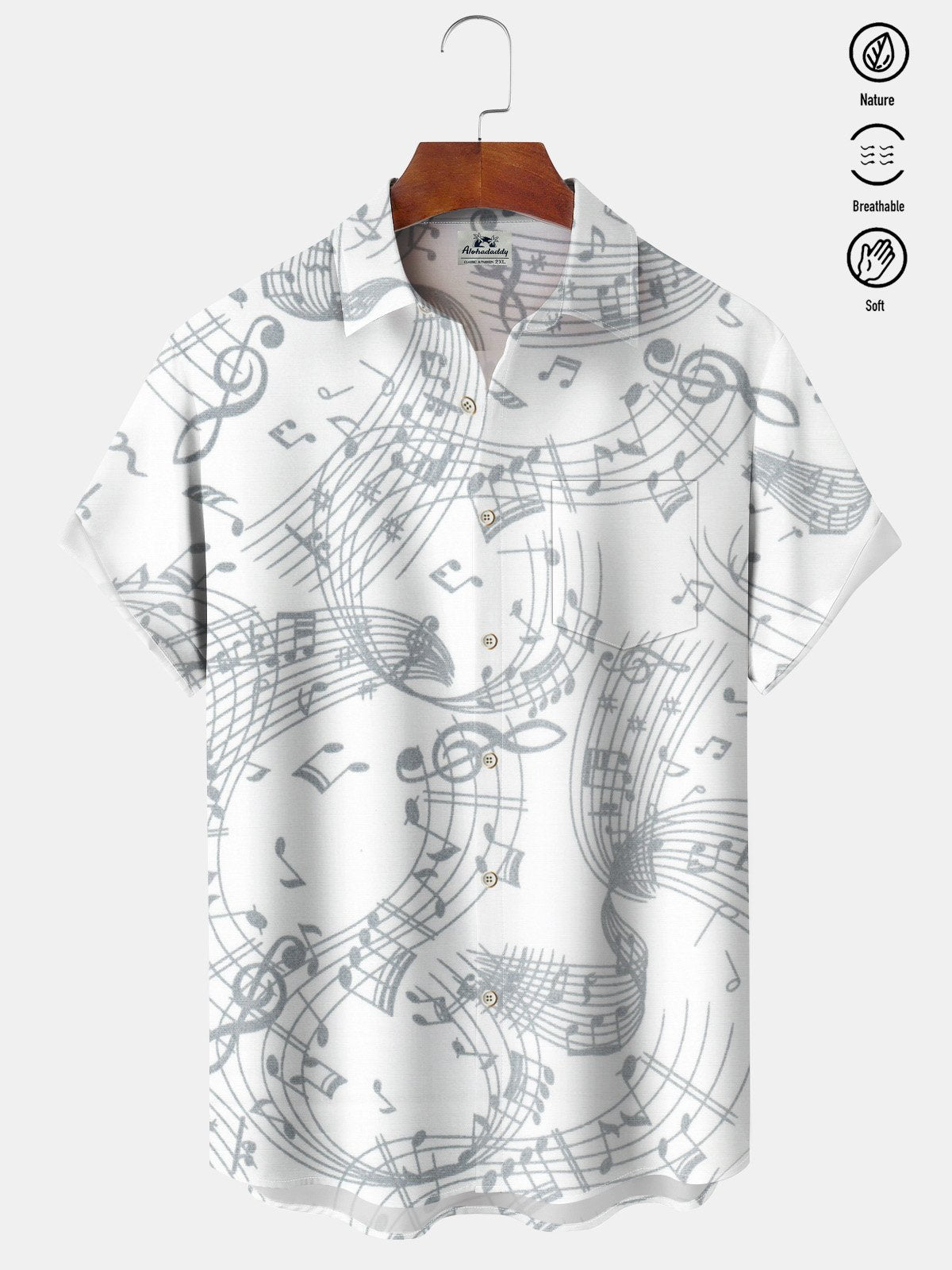 Alohadaddy® Casual Linen Music Notes Print Art Pockets Moisture Wicking Hawaiian Shirt Big & Tall