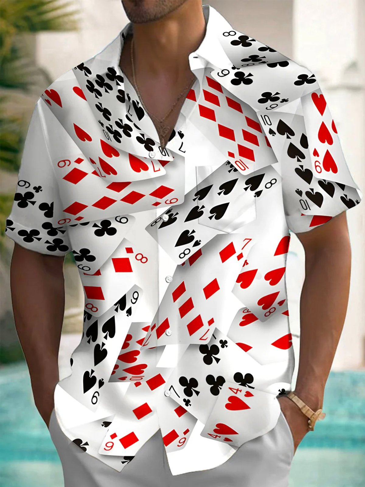 Alohadaddy® Vintage 3D Poker Print Pocket Button Shirt