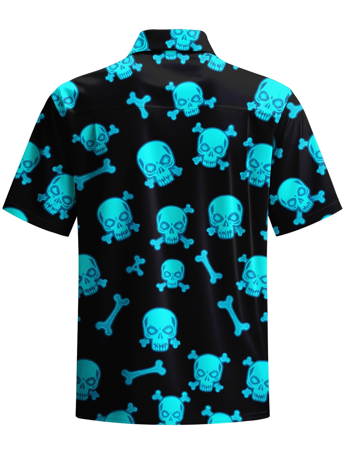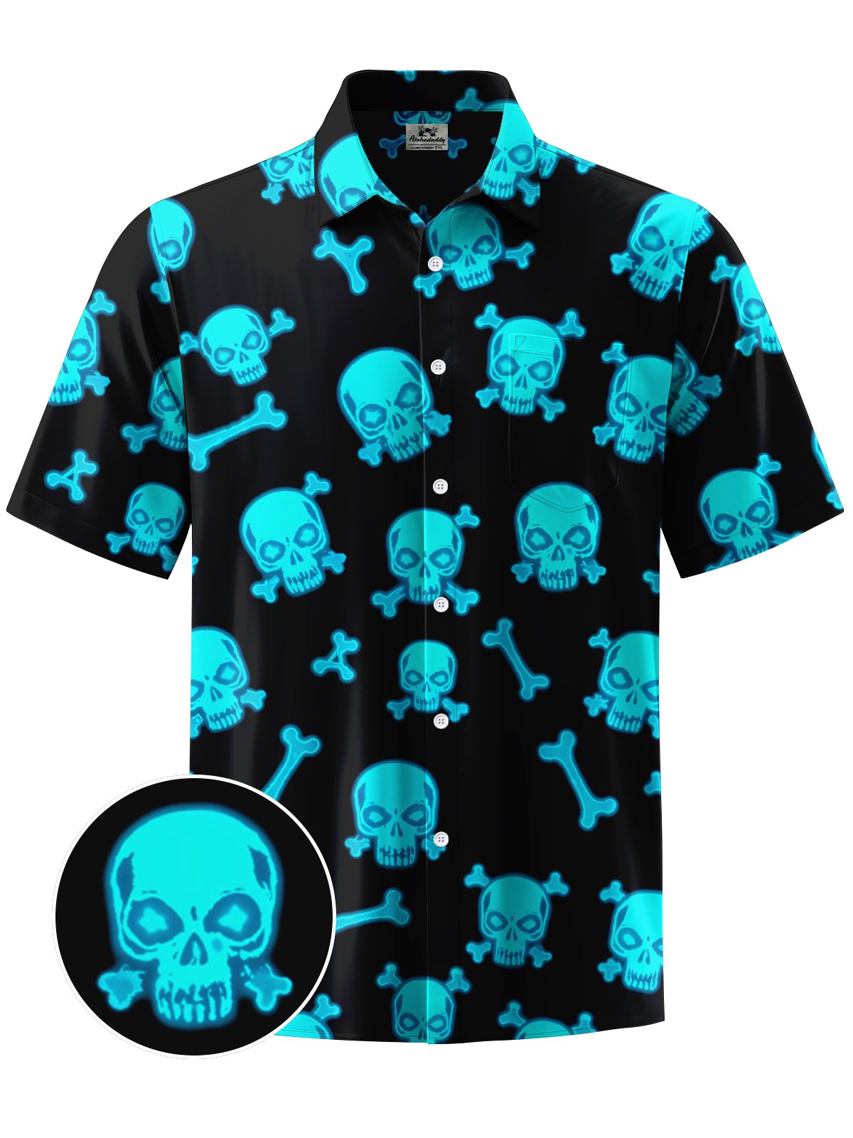 Alohadaddy® Vintage Skull Print Gradient Men's Pocket Button Shirt