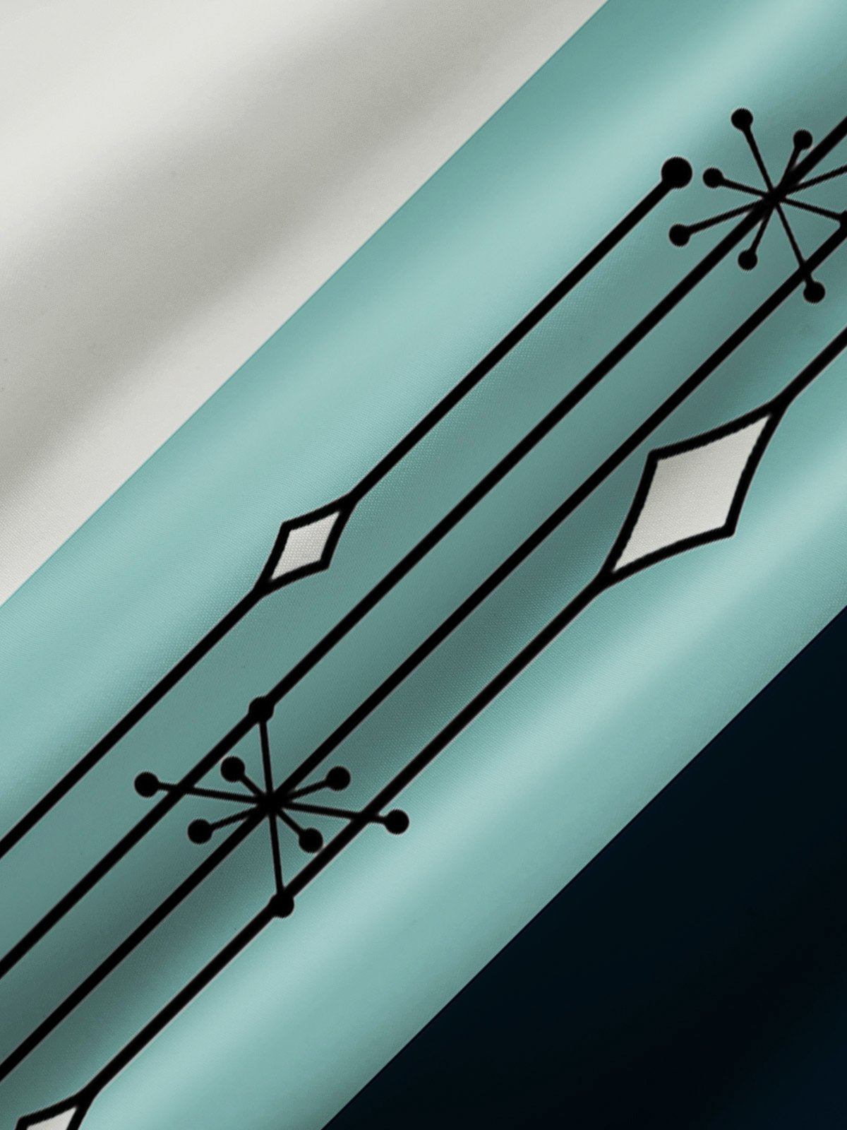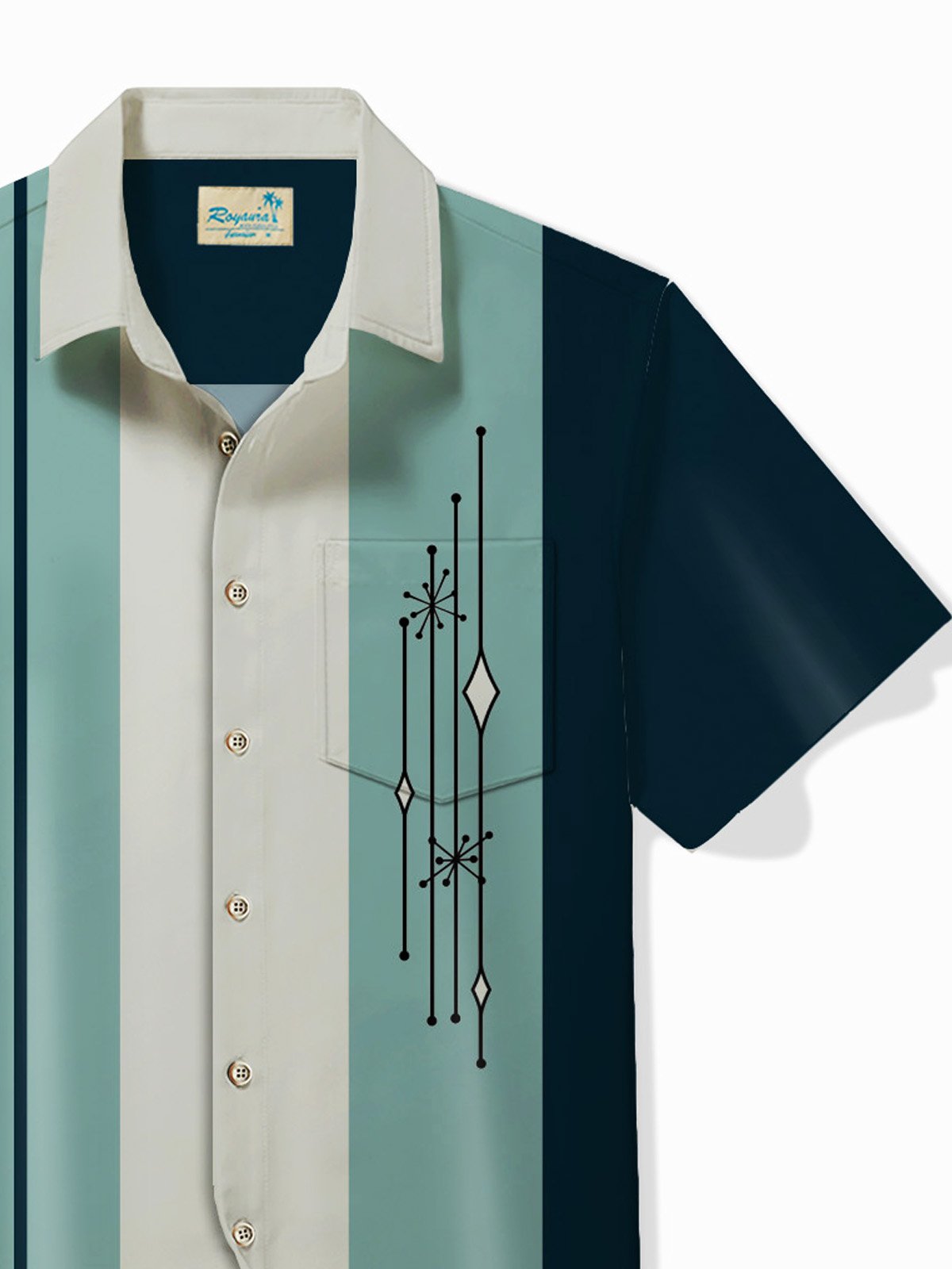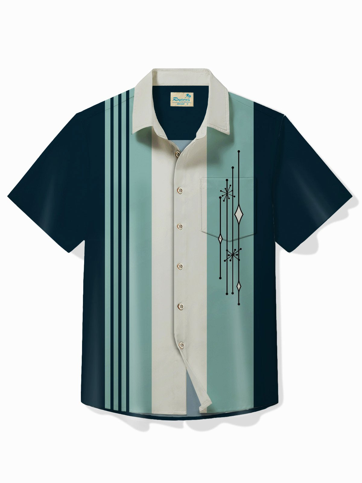 Alohadaddy 50's Mid Century Geometric Art Men's Vintage Bowling Shirt Stretch Pocket Camp Shirt Big Tall
