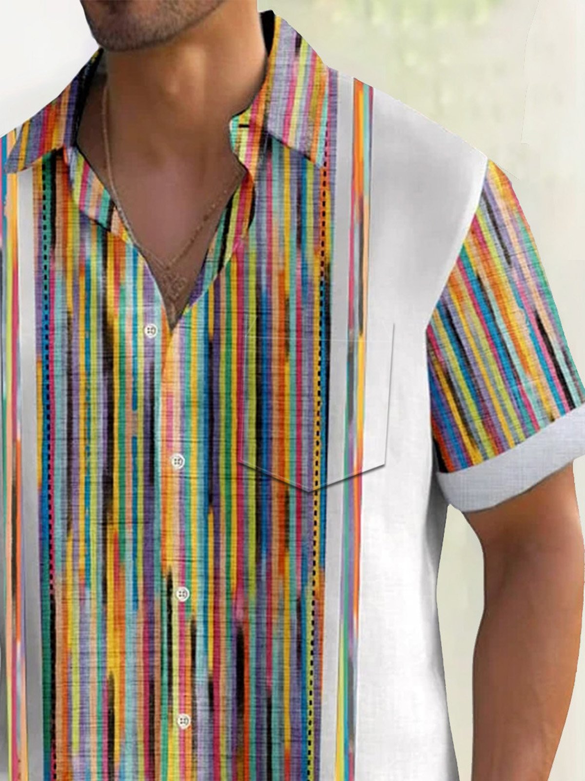 Alohadaddy 50's Mid Century Geometric Art Men's Vintage Bowling Shirt Stretch Pocket Camp Shirt Big Tall