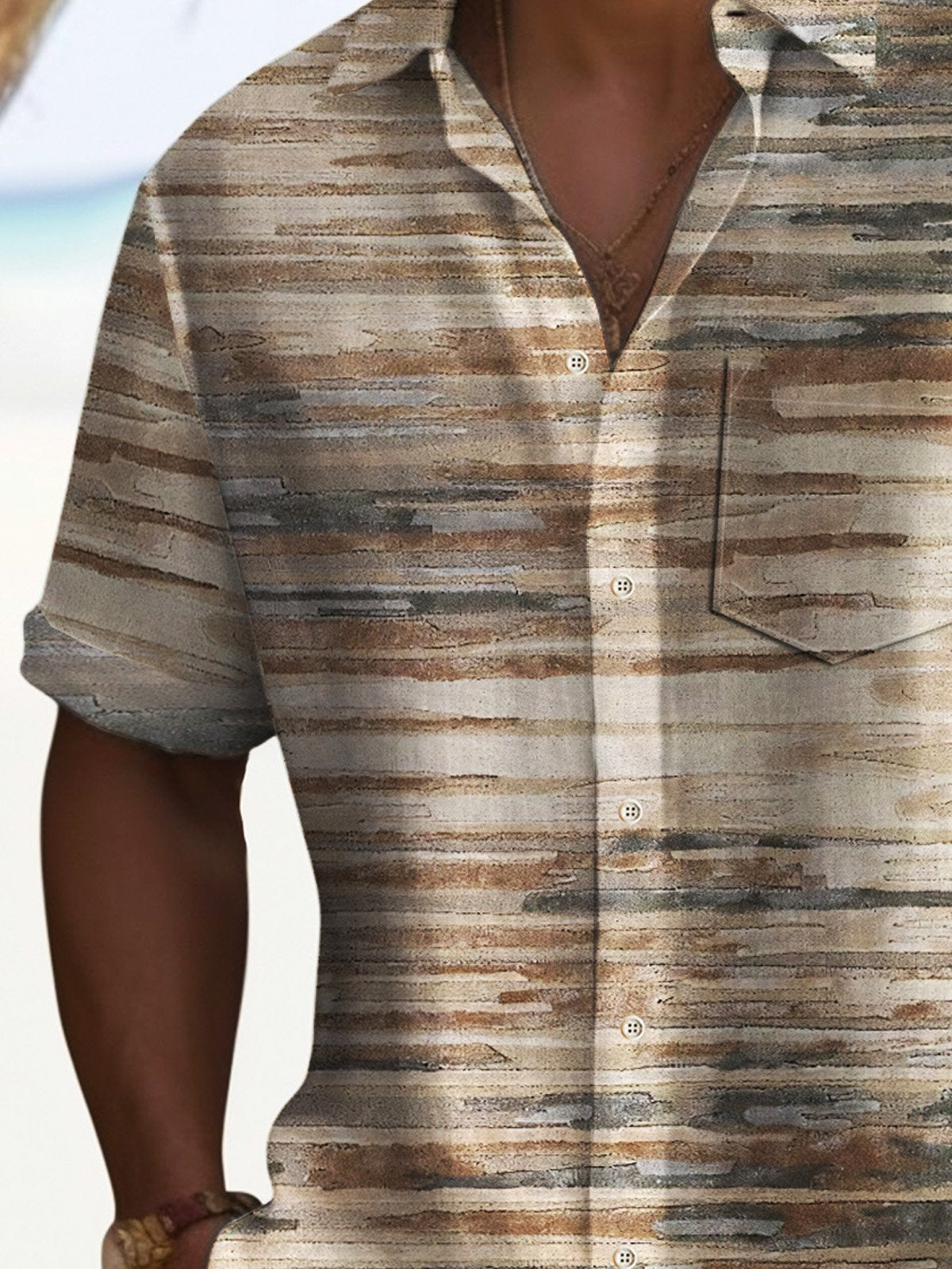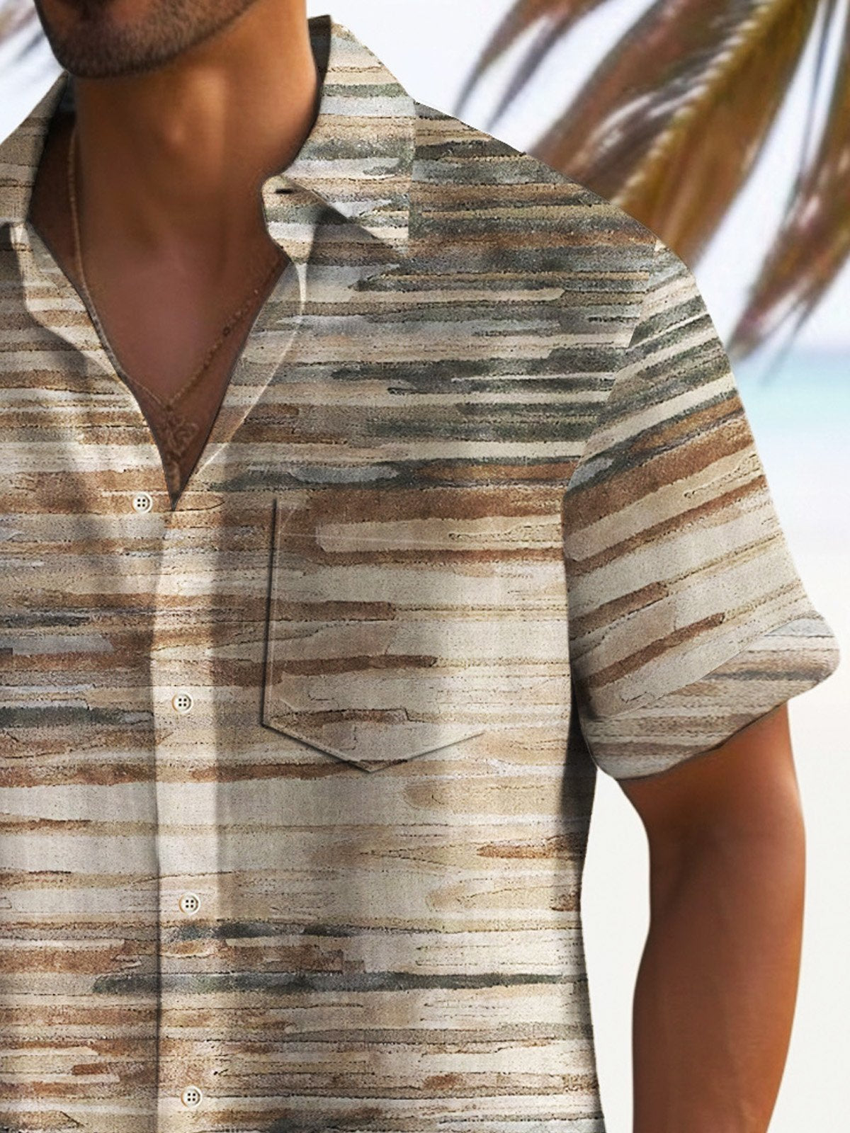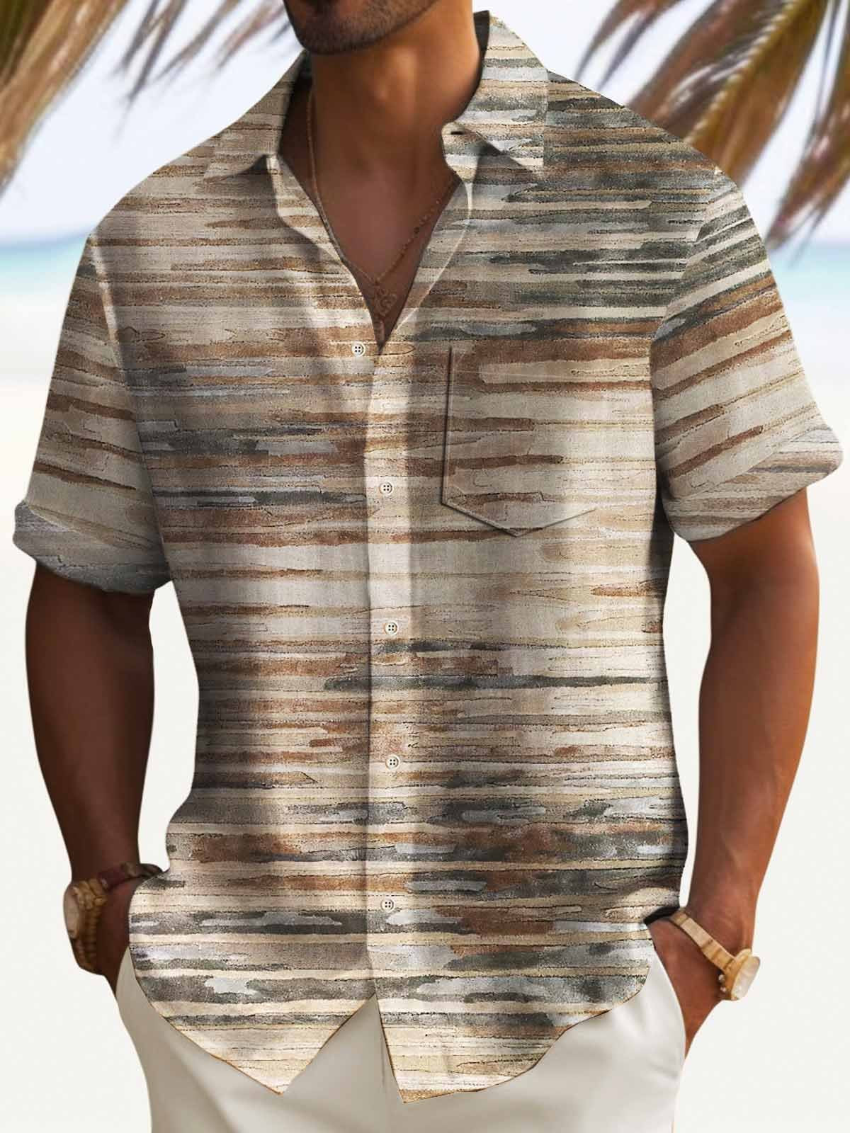Alohadaddy 50's Retro Distressed Textured Men's Camp Shirt Quick-Drying Pocket Art Shirt Big Tall