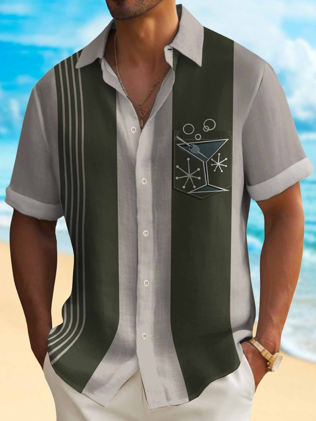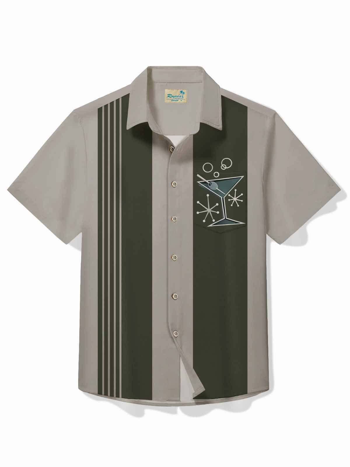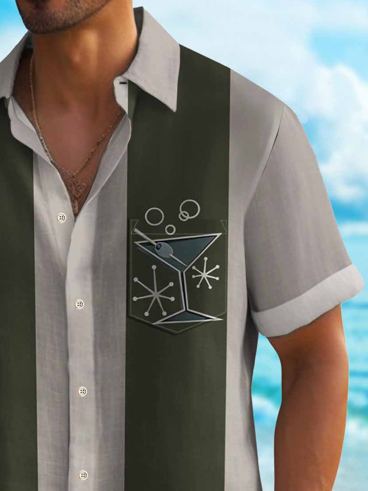 Alohadaddy 50's Retro Medieval Geometric Art Men's Bowling Shirt Pocket Camp Shirt Big Tall