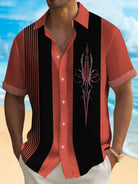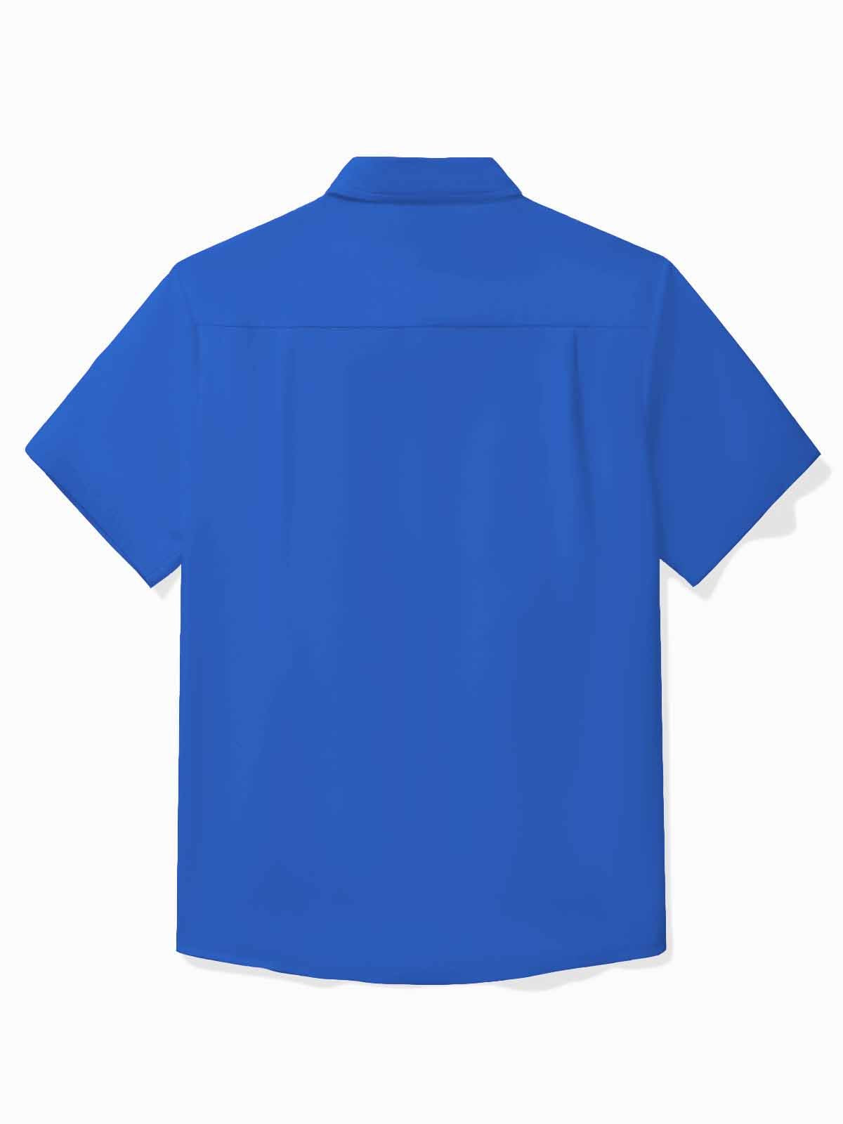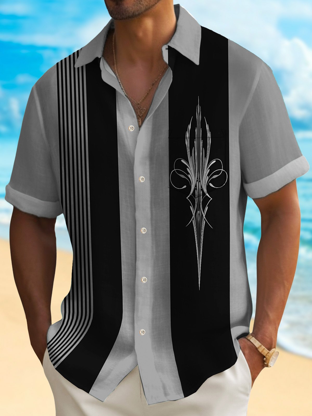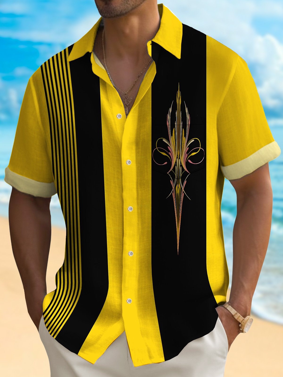 Alohadaddy 50's Retro Pinstripe Car Men's Bowling Shirt Cartoon Art Stretch Pocket Camp Shirt Big Tall
