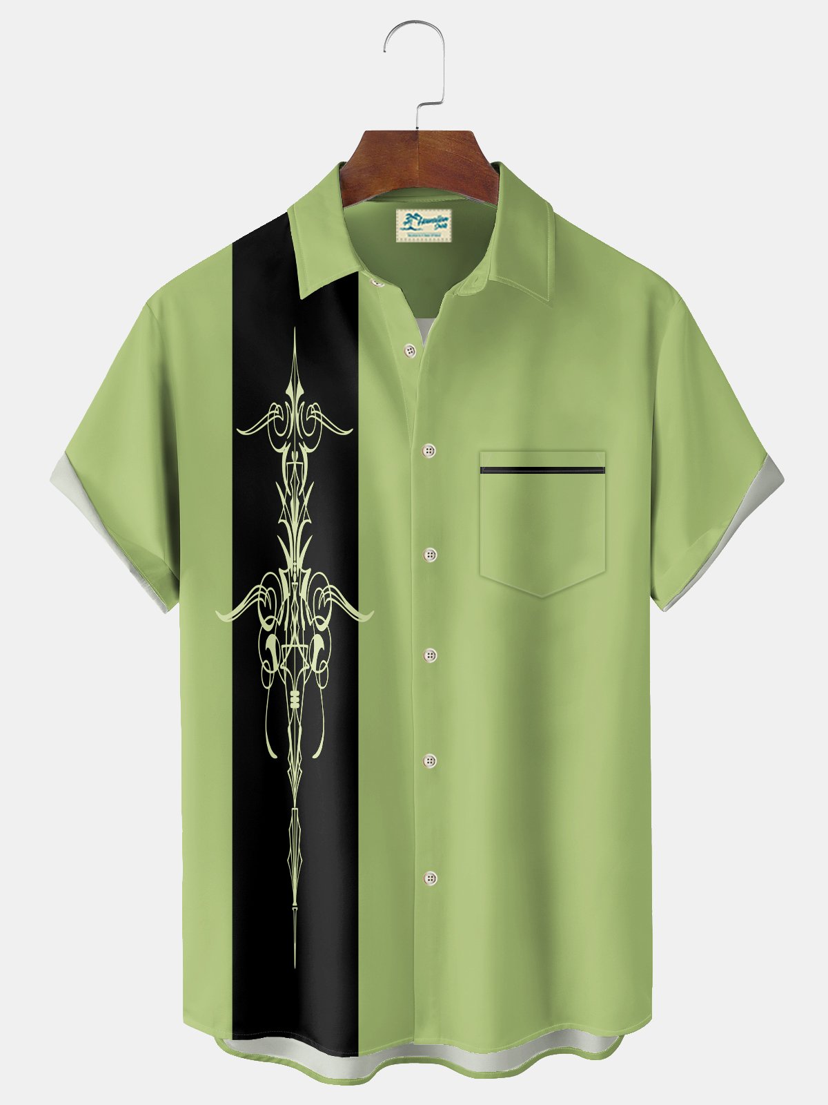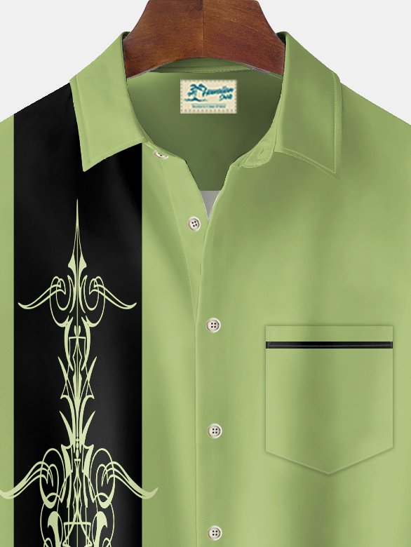 Alohadaddy 50's Retro Pinstripe Car Men's Bowling Shirt Cartoon Art Stretch Pocket Camp Shirt Big Tall