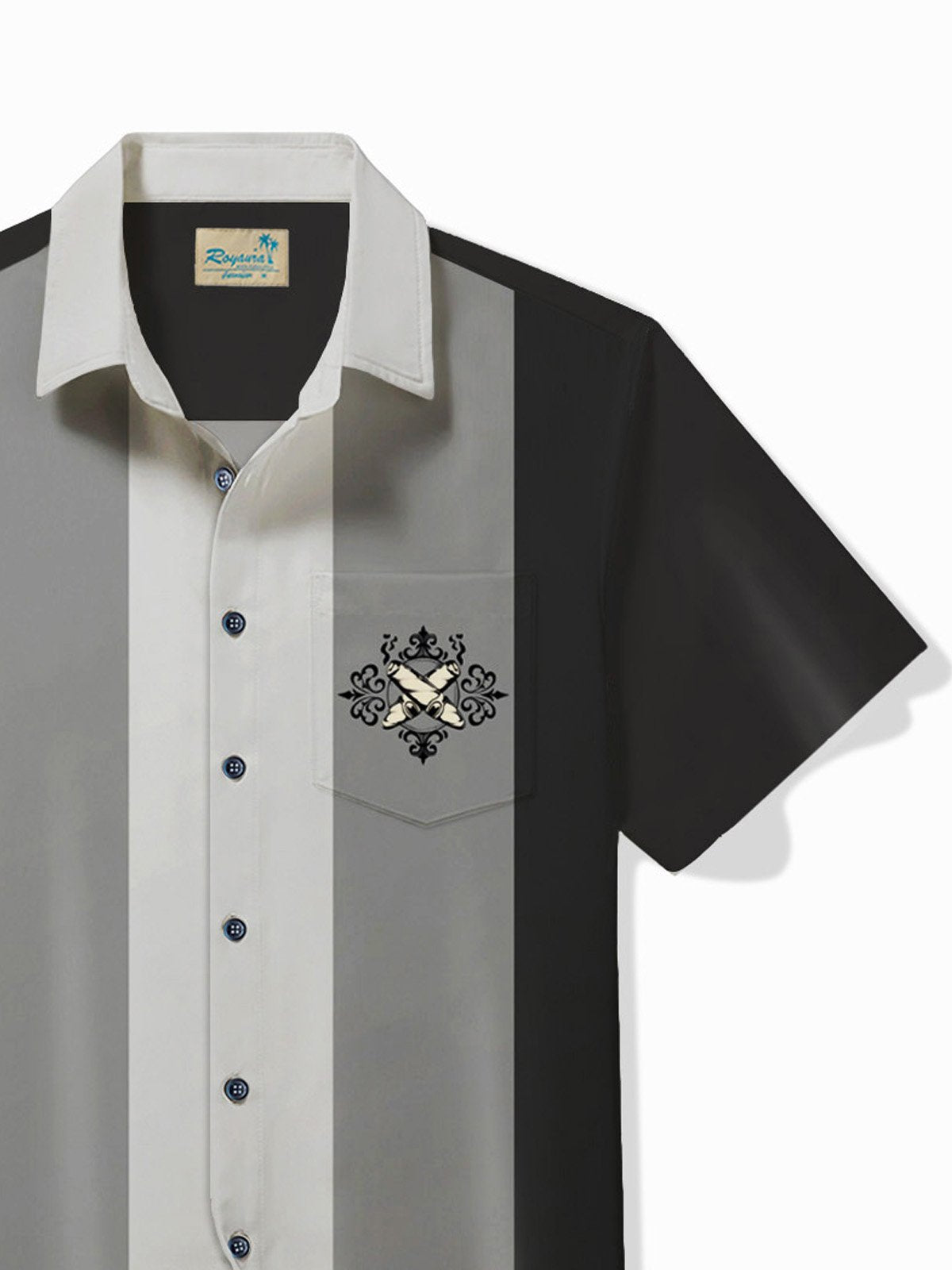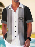 Alohadaddy 50's Vintage Bowling Shirt Cigar Art Stretch Quick Dry Pocket Camp Shirt Big Tall