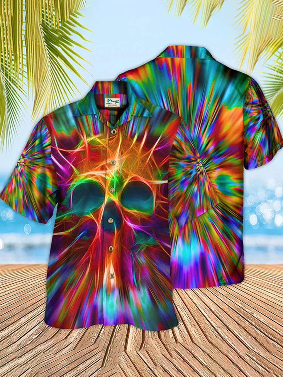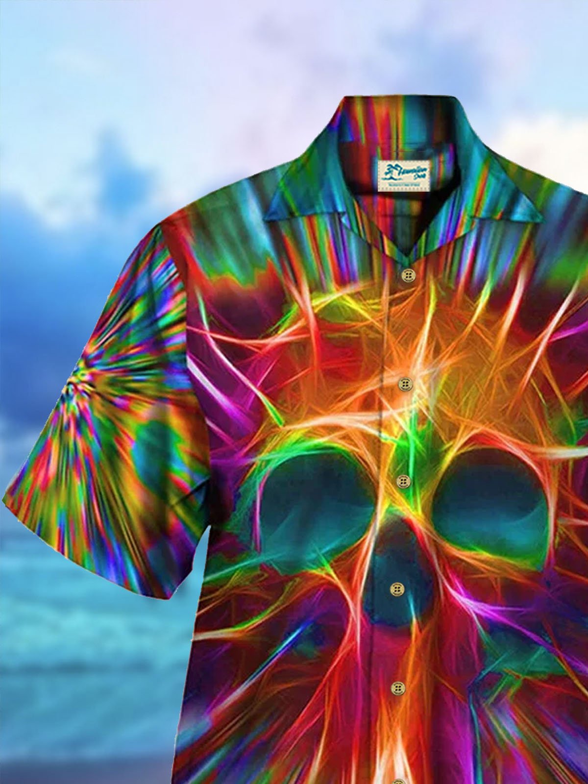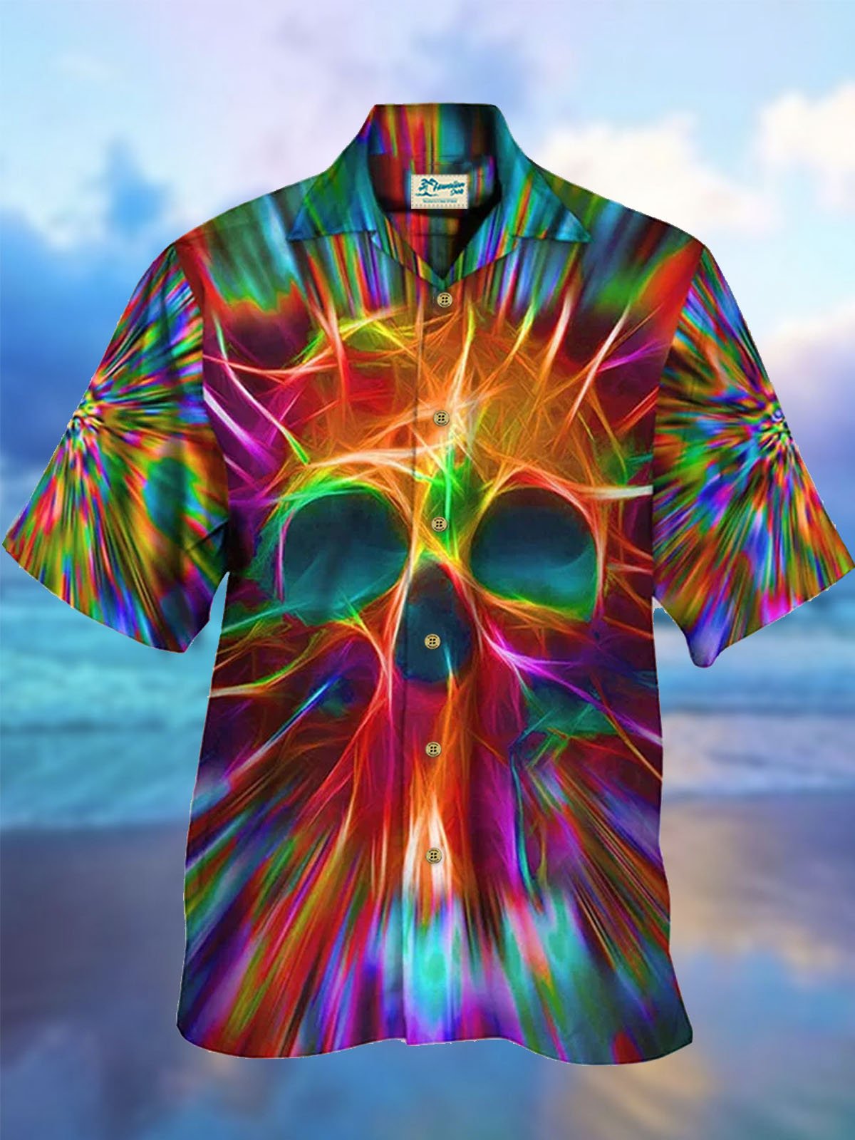 Alohadaddy 50's Vintage Men's Hawaiian Skull Shirts Gradient Psychedelic Stretch Camp Collar Shirts