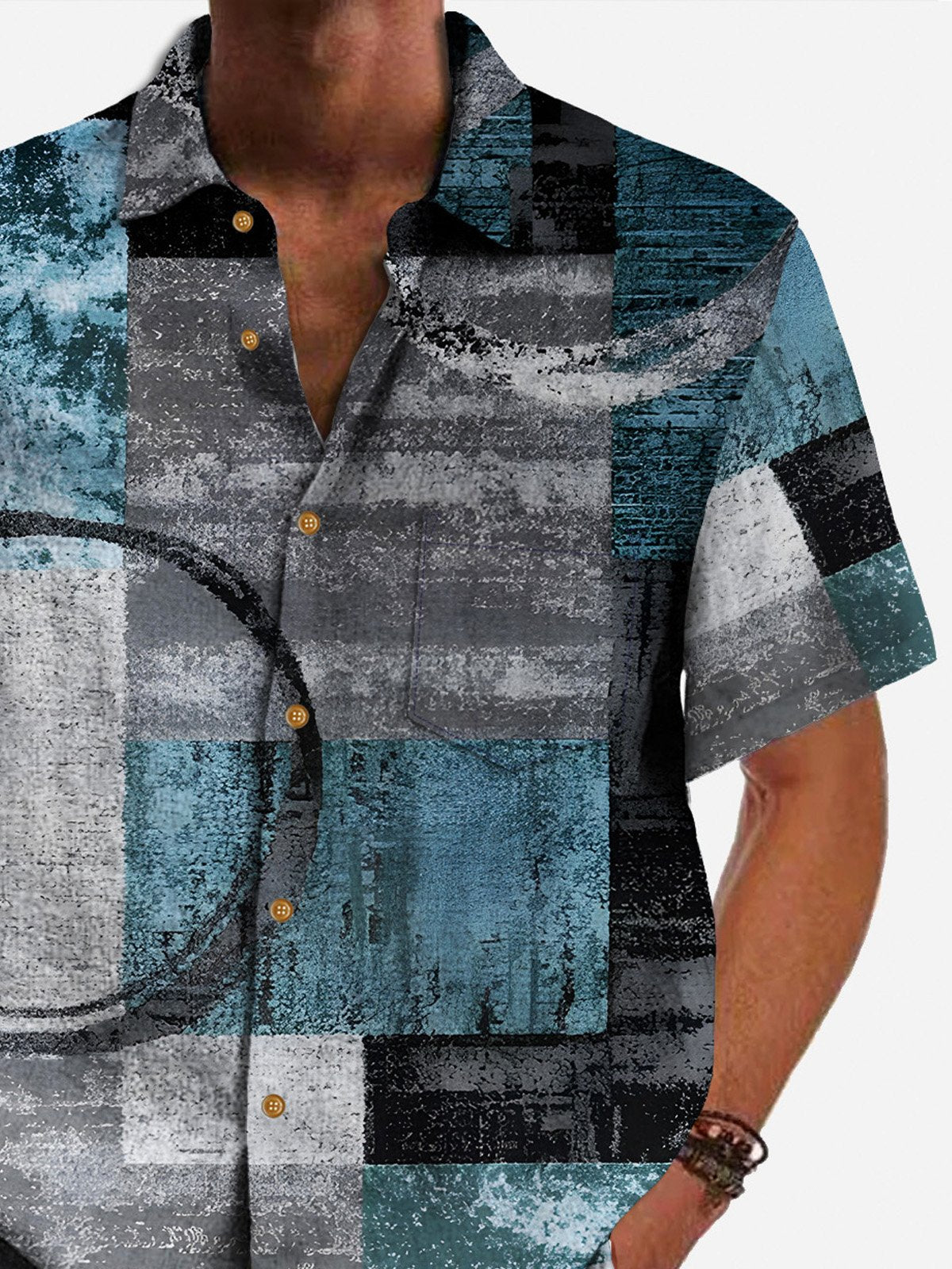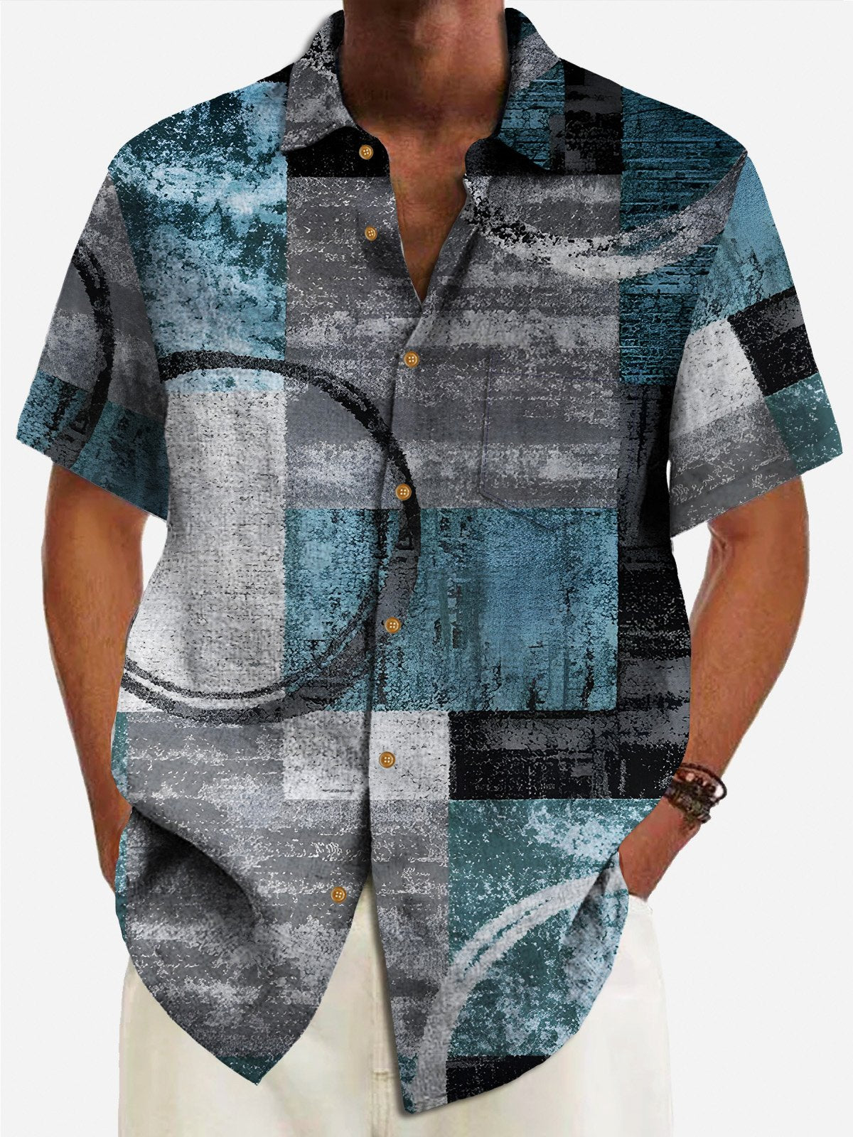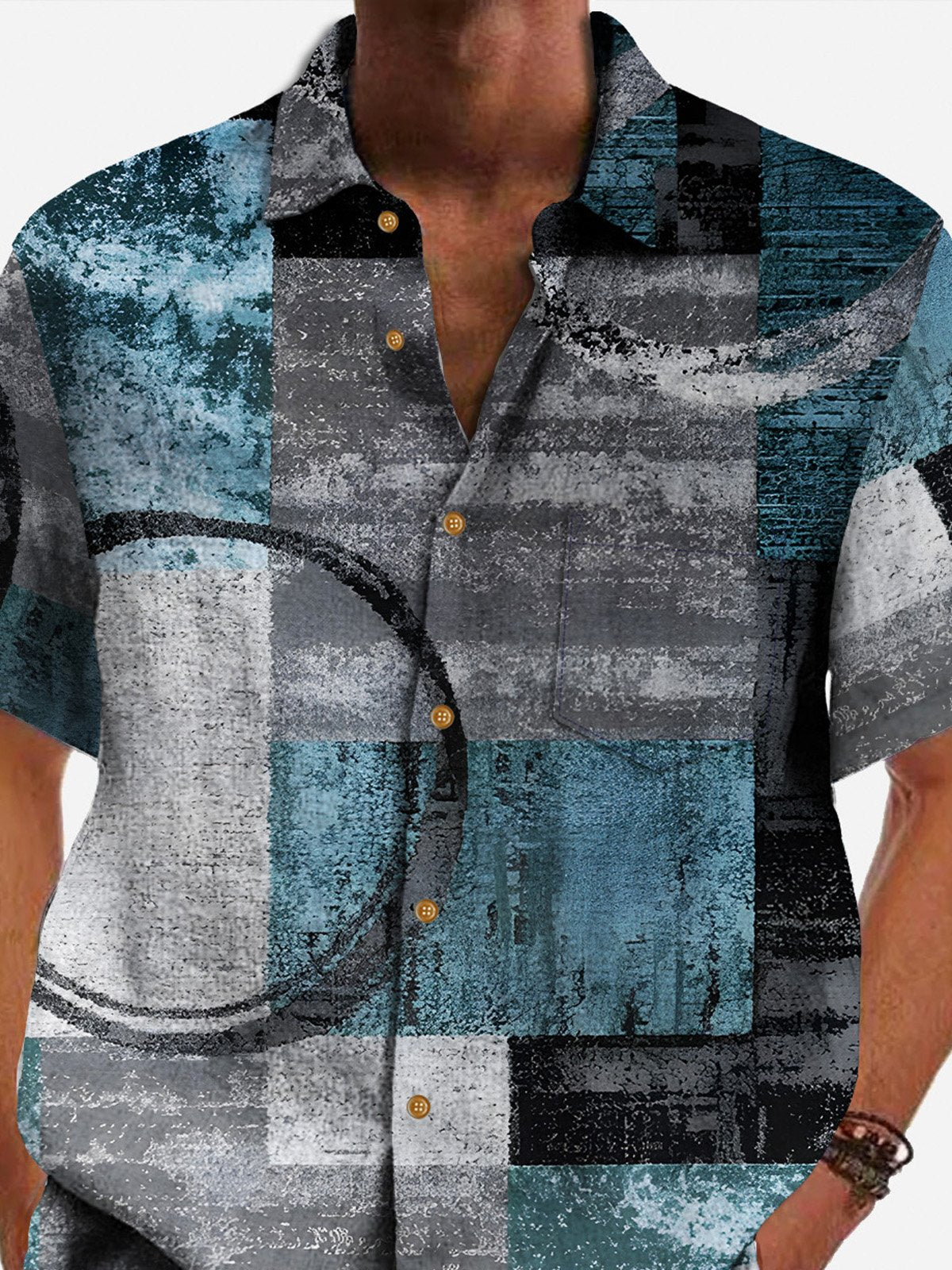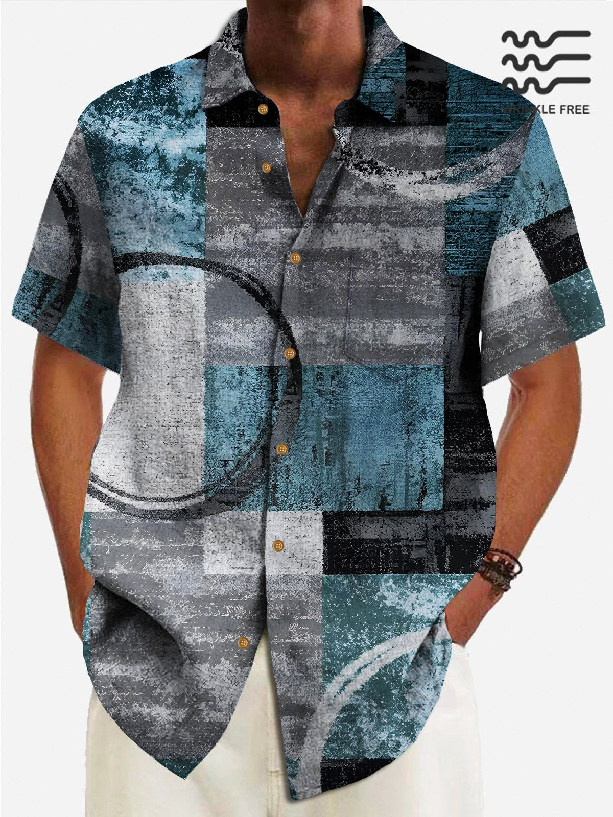 Alohadaddy 50's Vintage Mid-Century Geometric Men's Shirts Wrinkle Free Seersucker Pocket Camp Shirts Big Tall