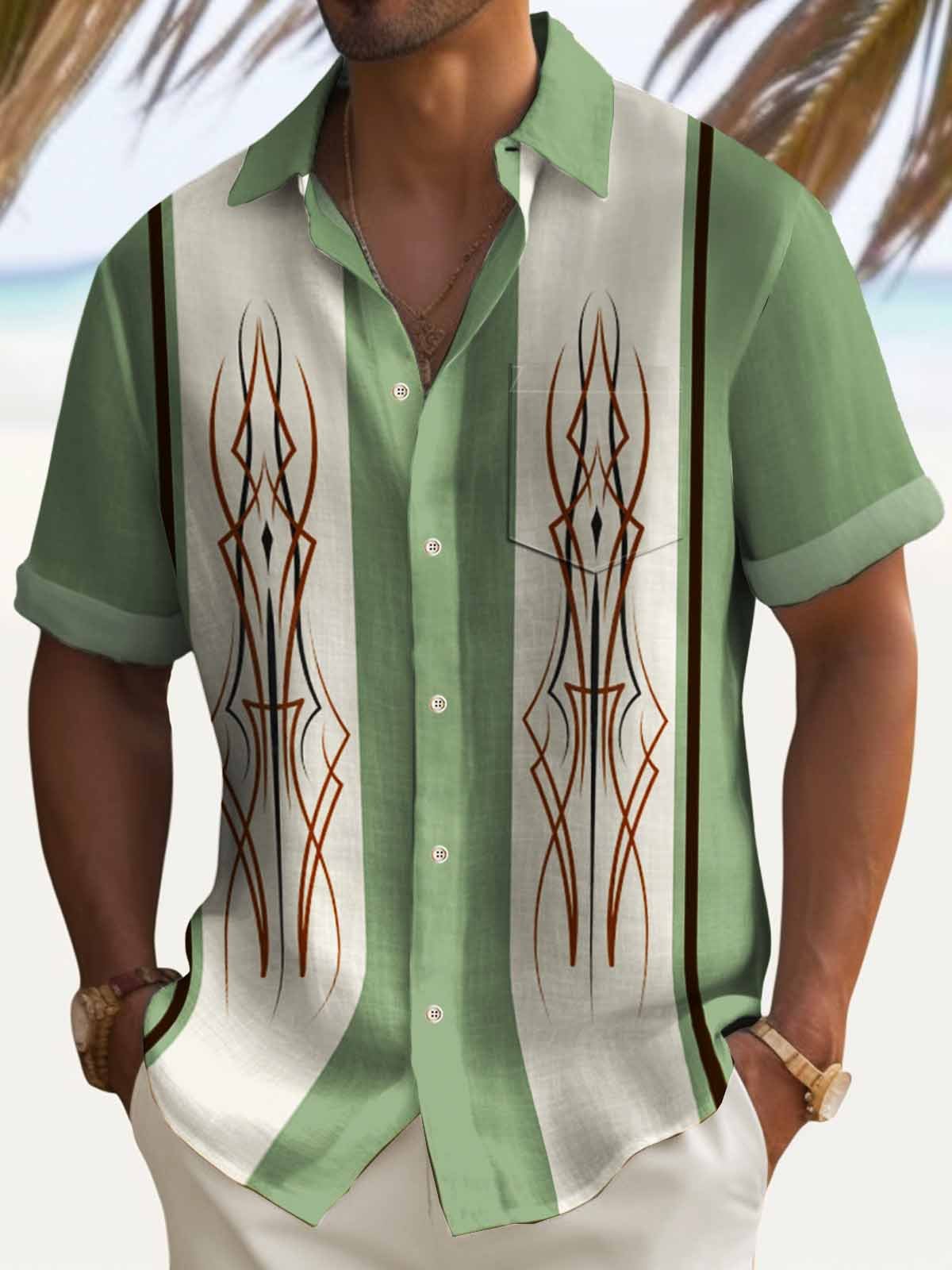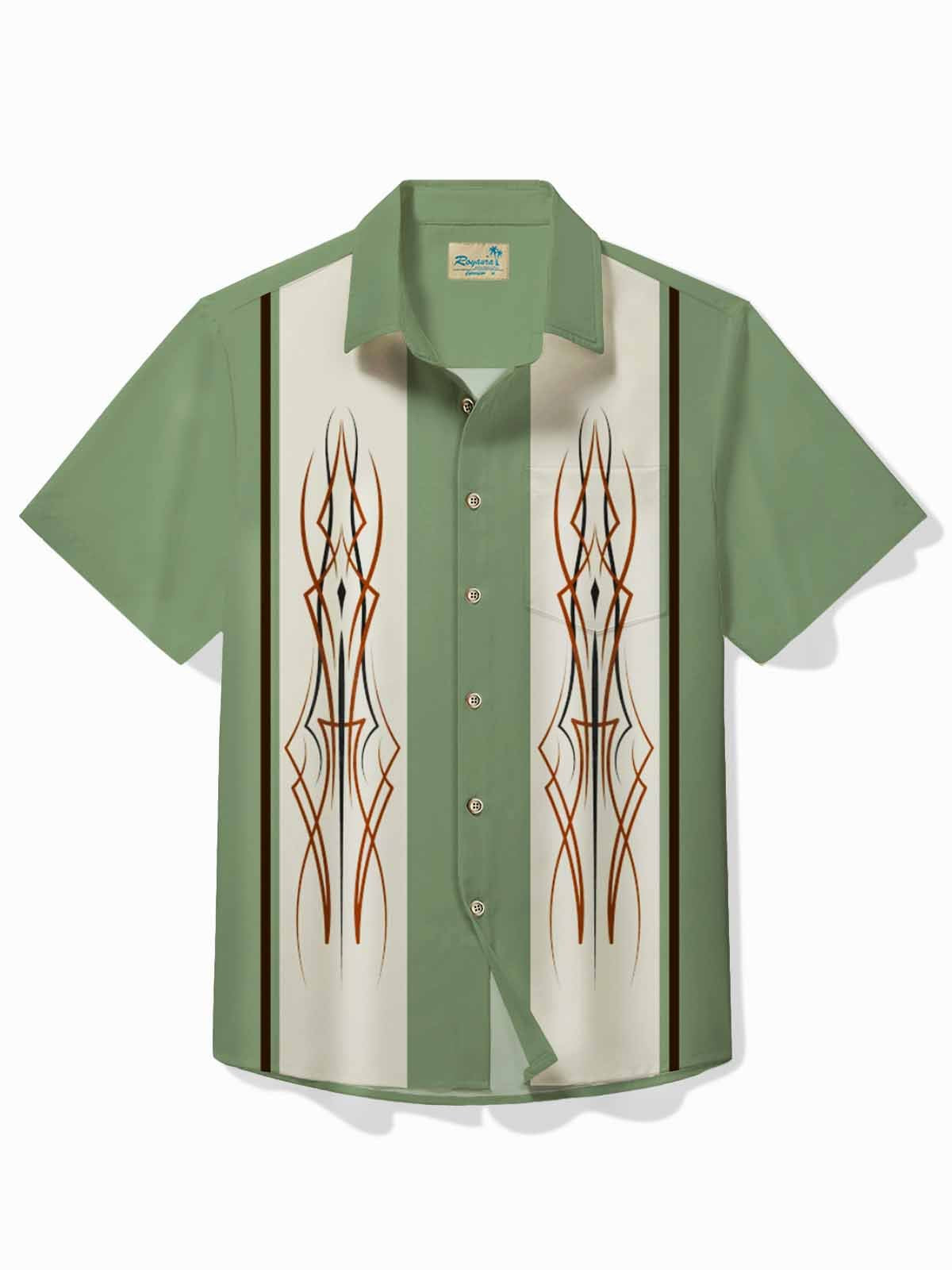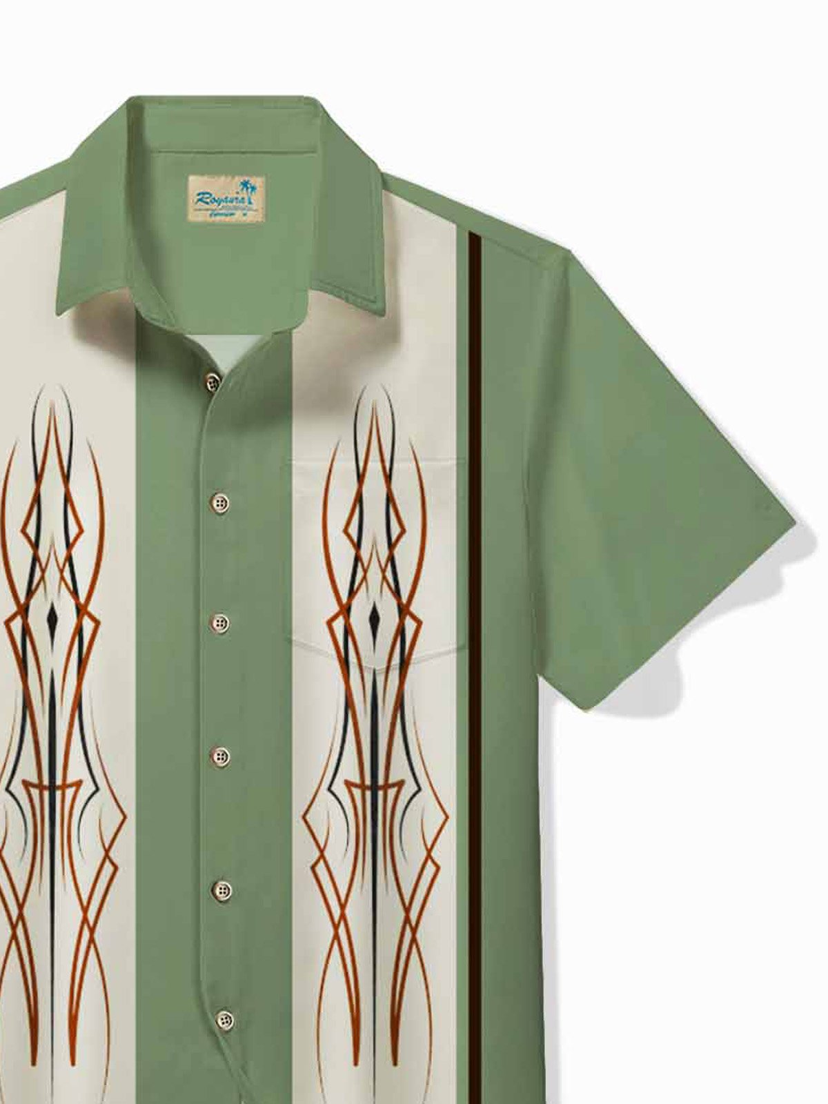 Alohadaddy 50's Vintage Pinstripe Car Men's Bowling Shirt Art Stretch Pocket Camp Shirt Big Tall