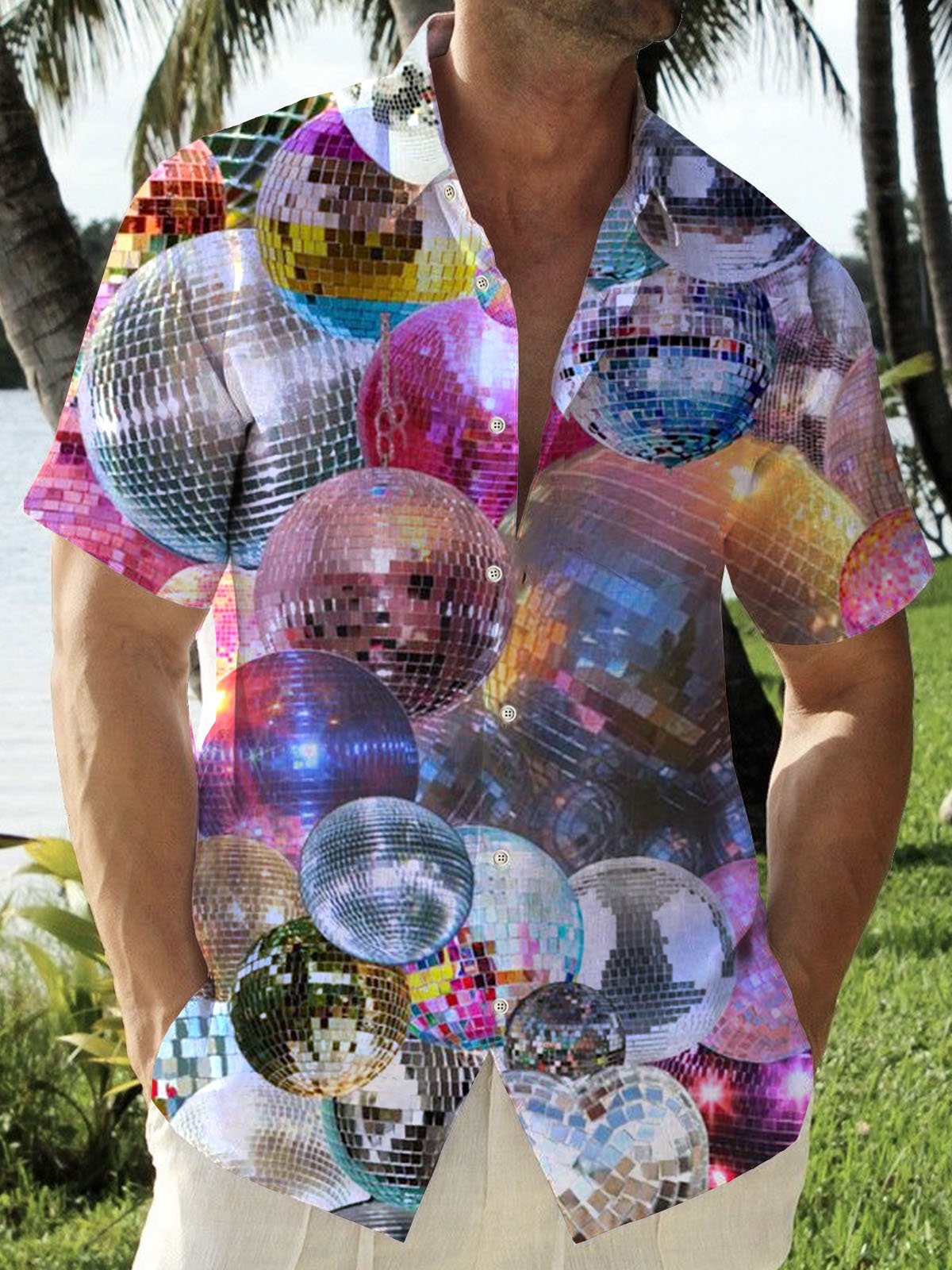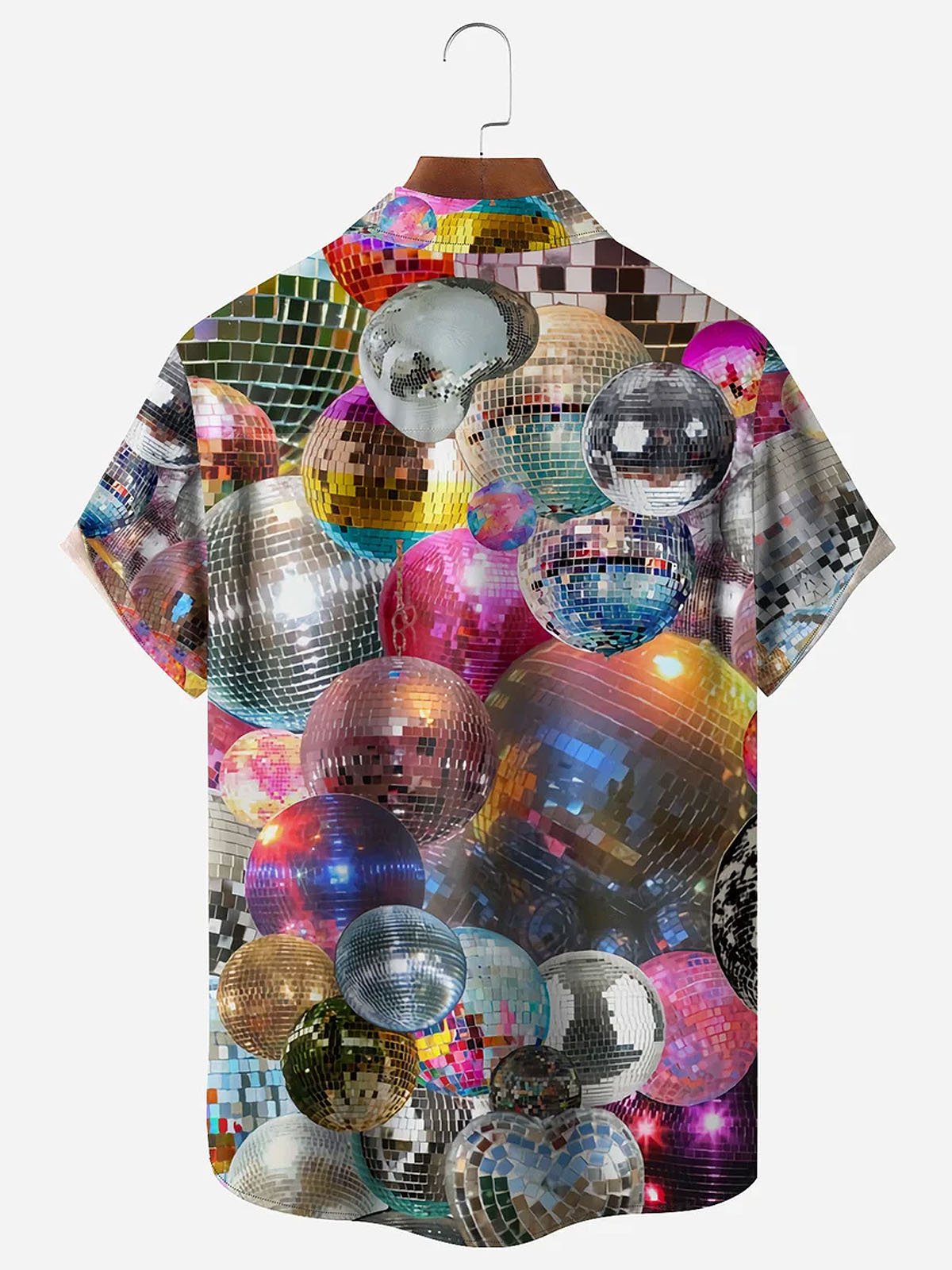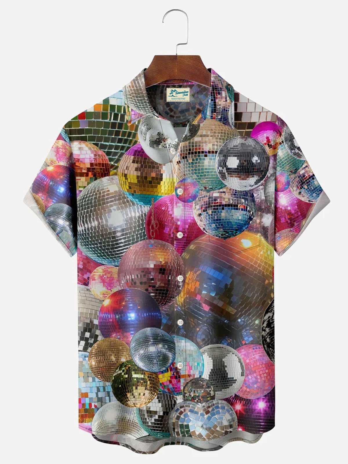 Alohadaddy 60's Disco Ball Music Instrument Men's Button Pocket Shirt
