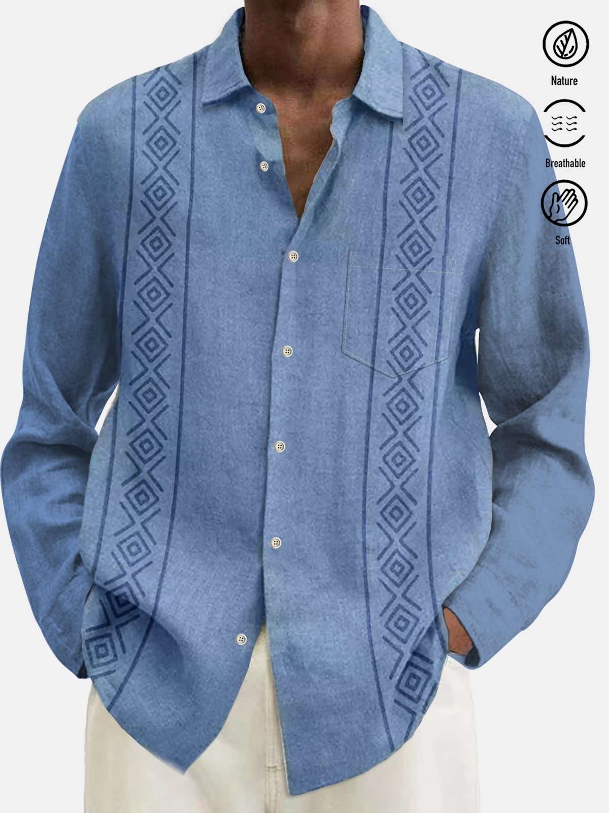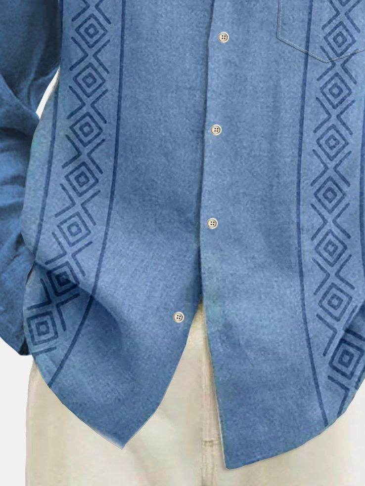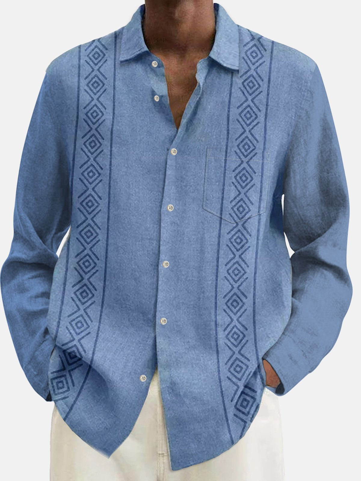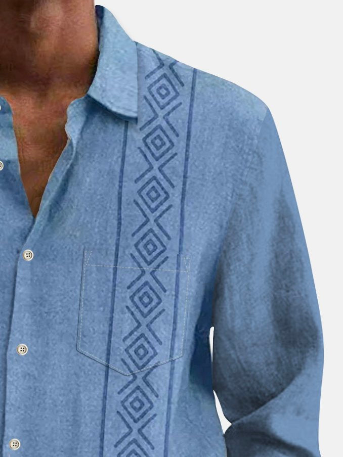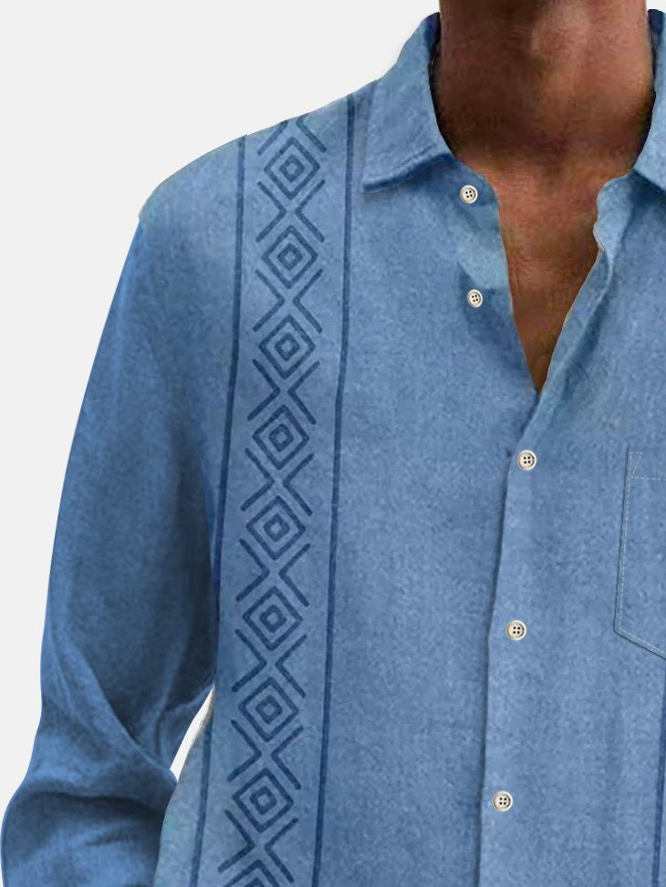 Alohadaddy 60's Vintage Men's Guayabera Print Button Down Long Sleeve Shirt Big Tall