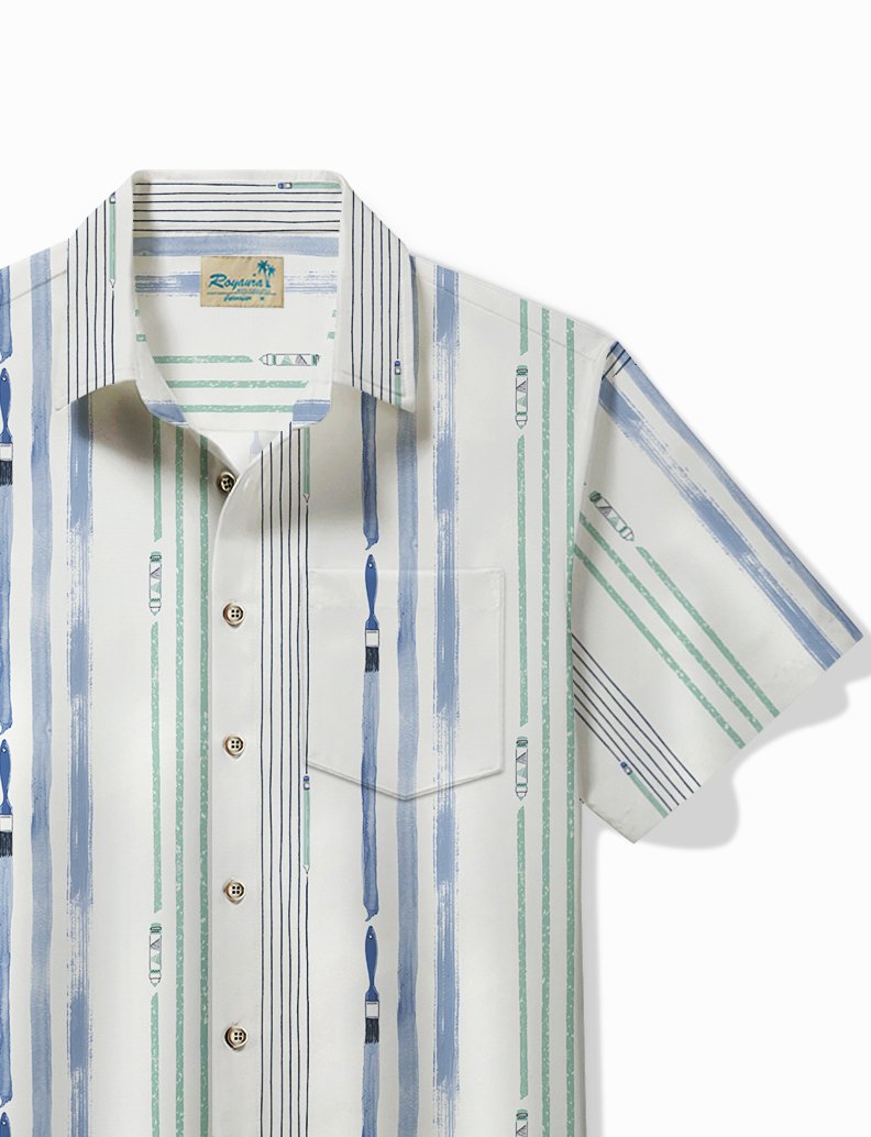 Alohadaddy Basic Stripe Art Men's Hawaiian Shirt Easy Care Pocket Camp Shirt
