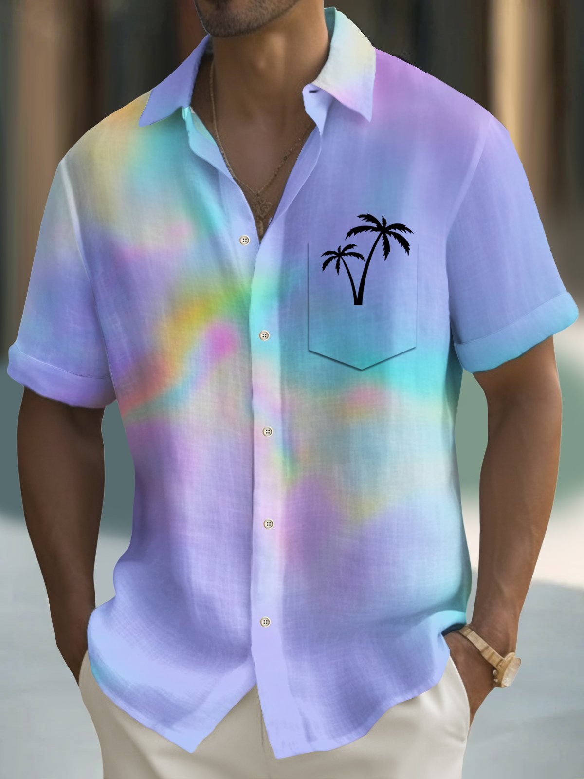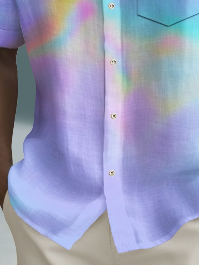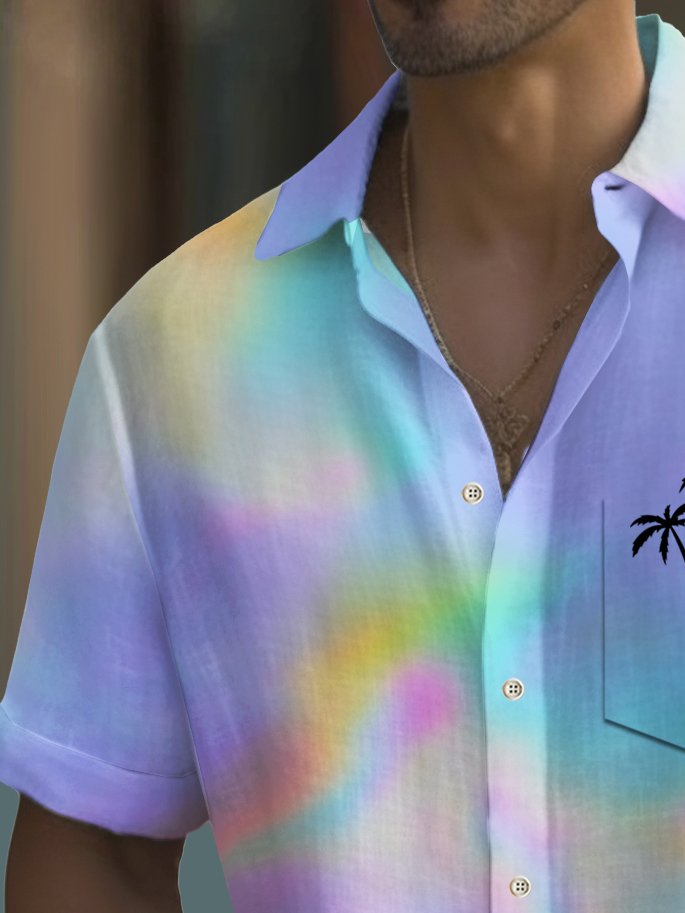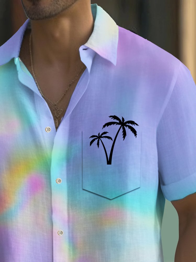 Alohadaddy Beach Vacation Men's Hawaiian Shirt Gradient Texture Coconut Tree Print Pocket Camping Shirt Big Tall