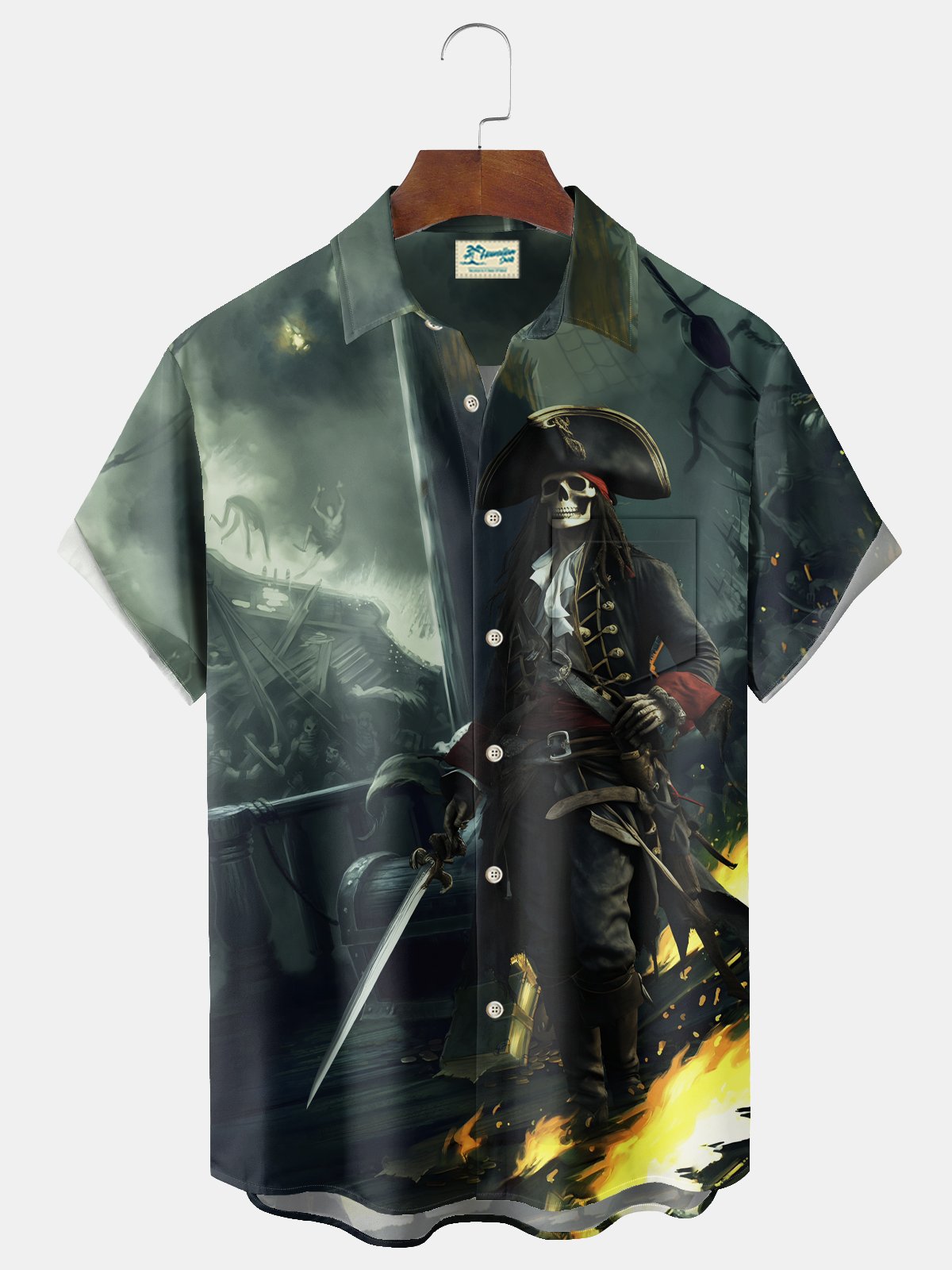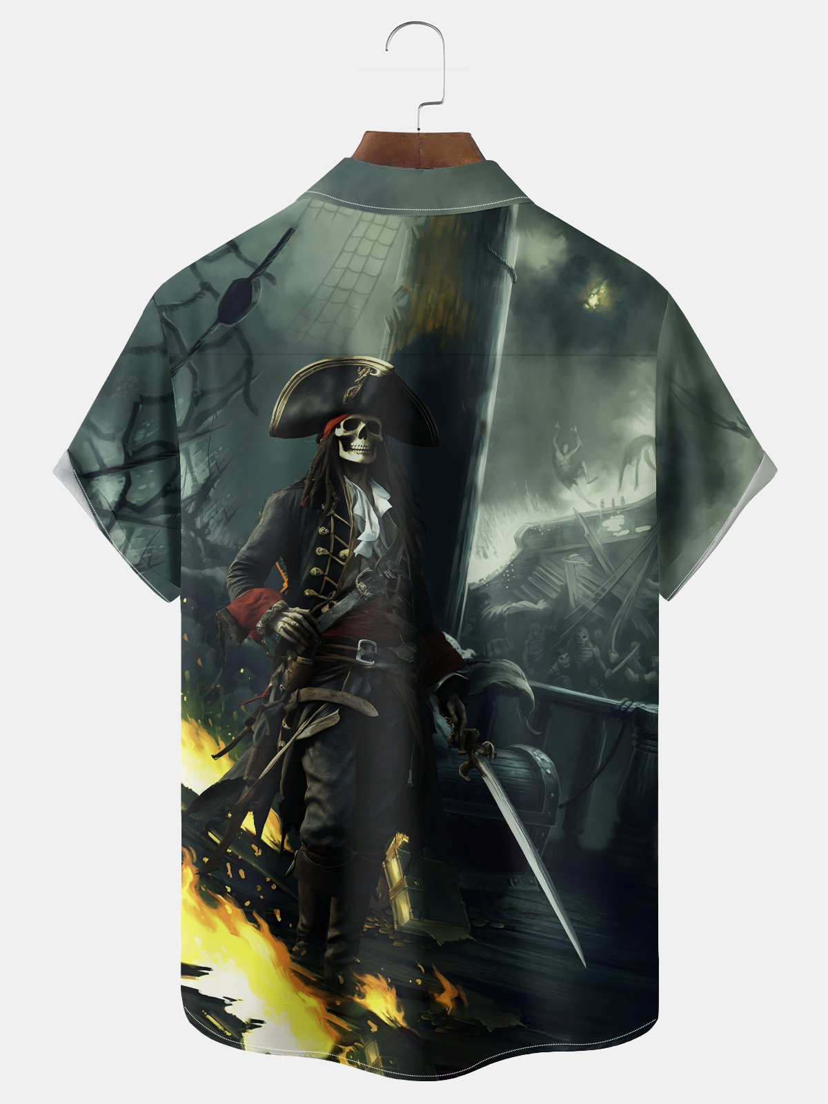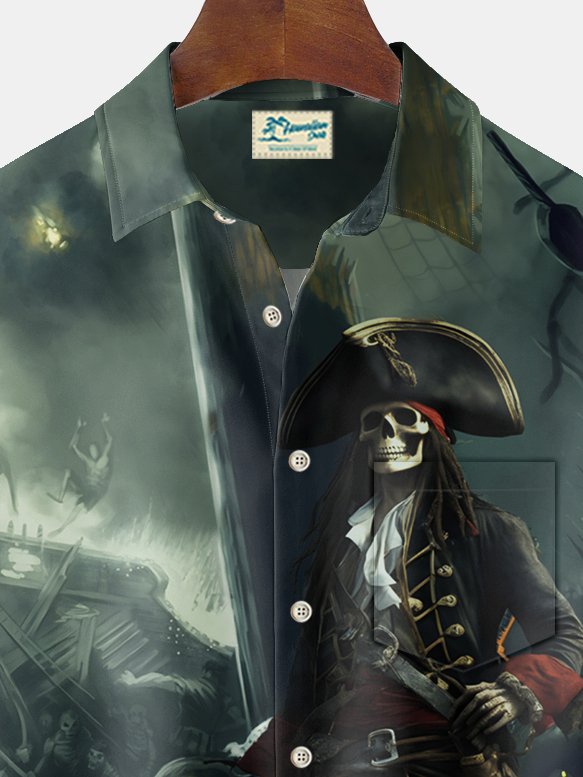 Alohadaddy Beach Vacation Men's Hawaiian Shirt Pirate Print Pocket Camping Shirt Big Tall