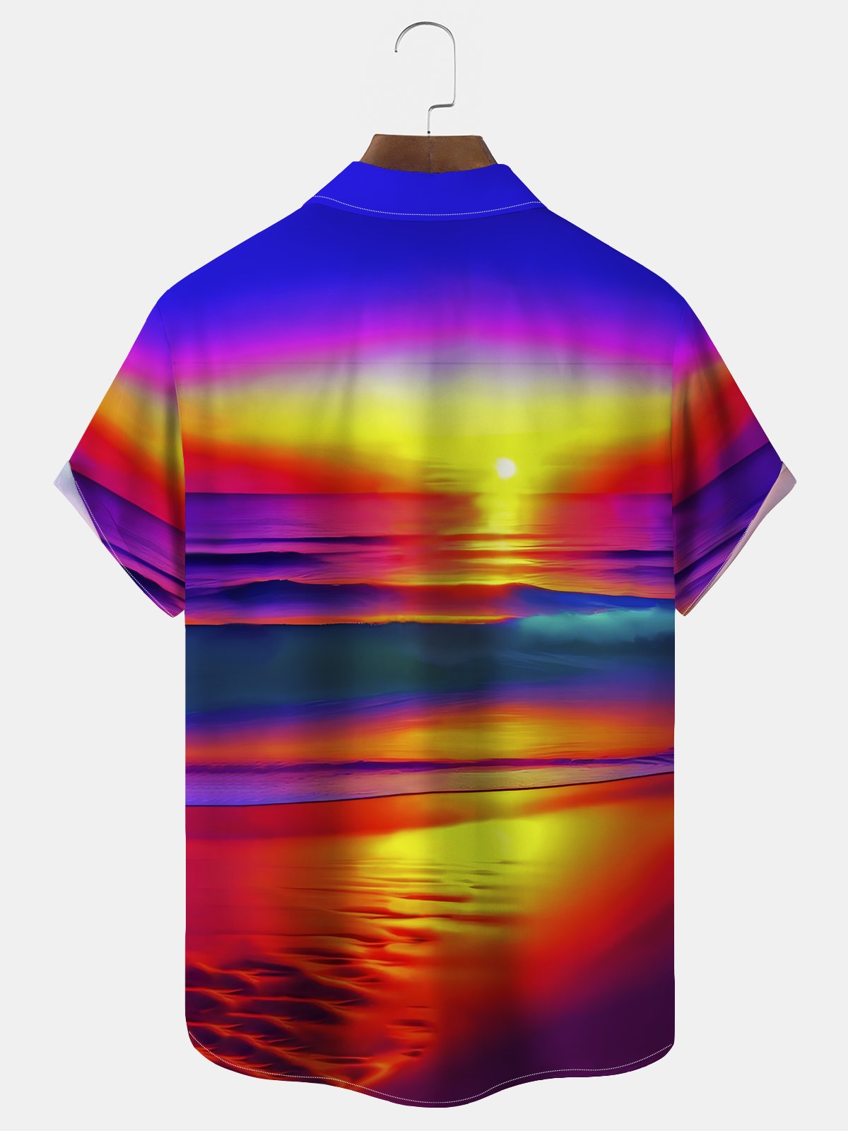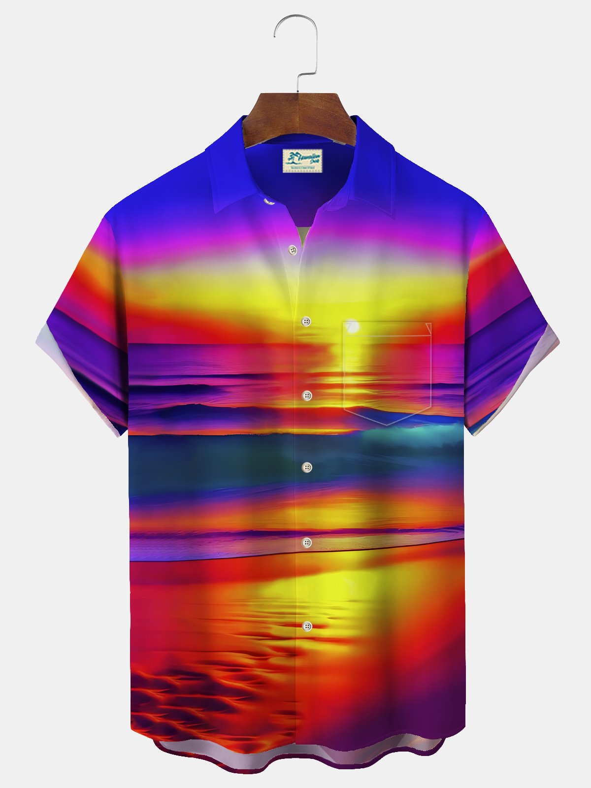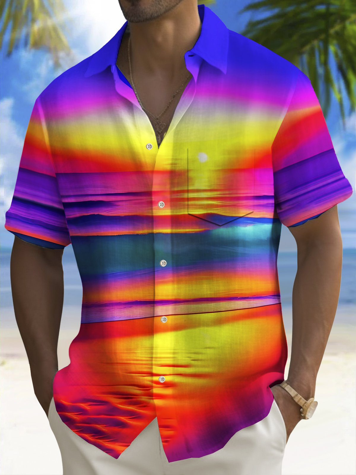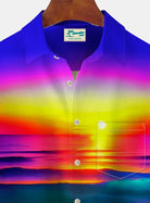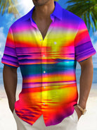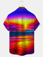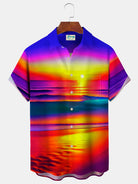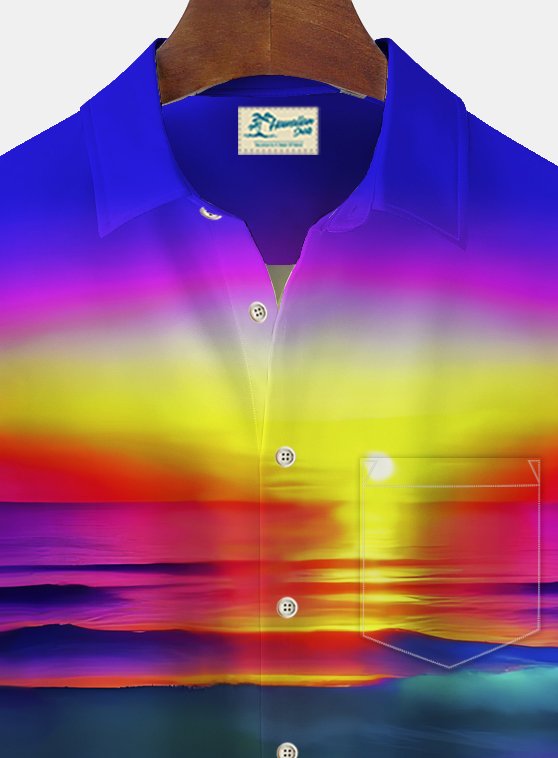 Alohadaddy Beach Vacation Men's Hawaiian Shirt Sunset Beach Print Pocket Camping Shirt Big Tall