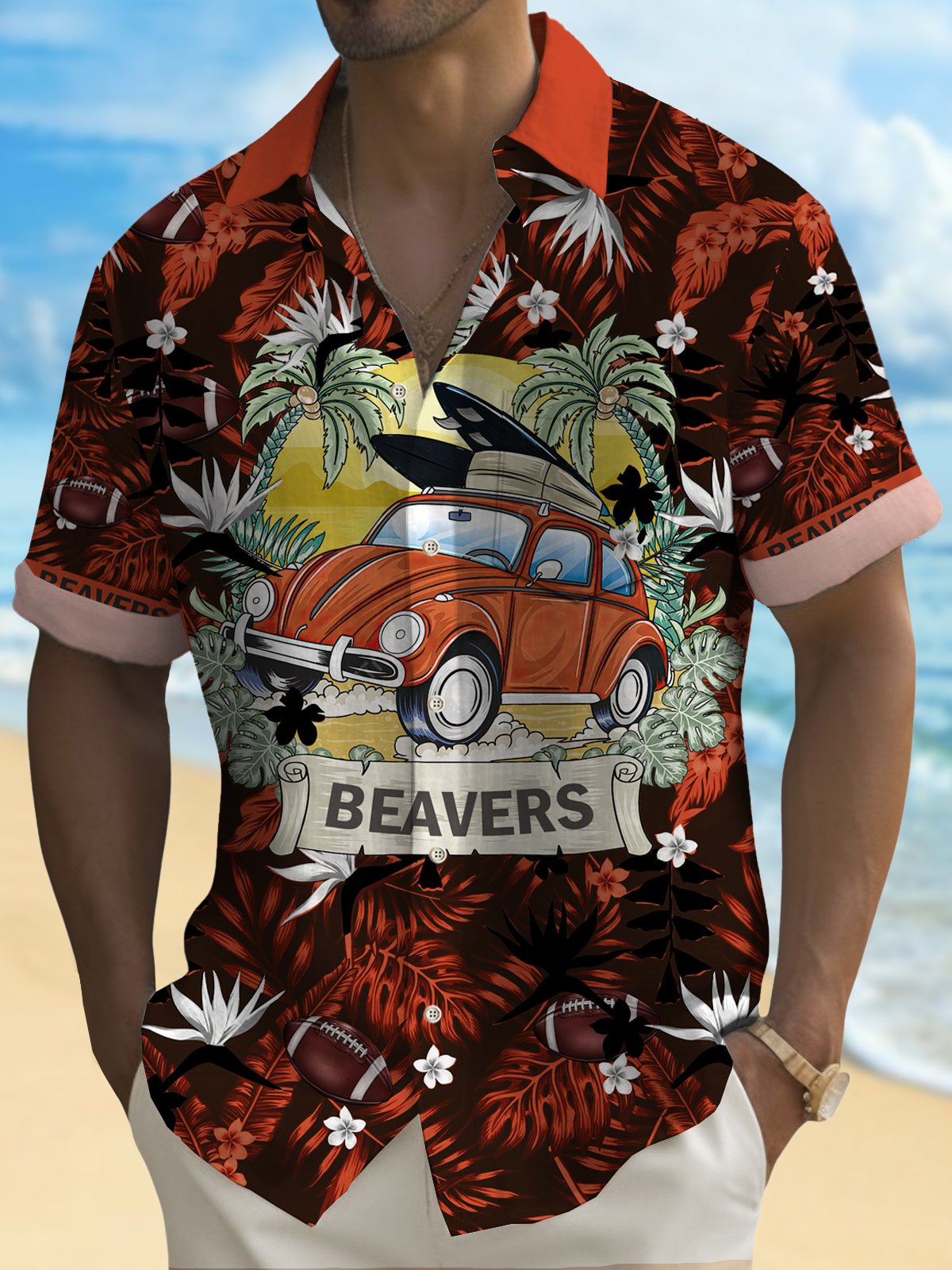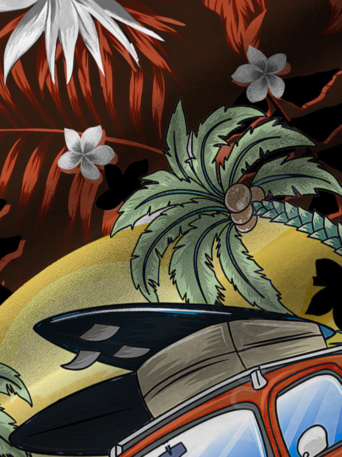 Alohadaddy Coconut Rugby Retro Car Print Men's Button Pocket Shirt