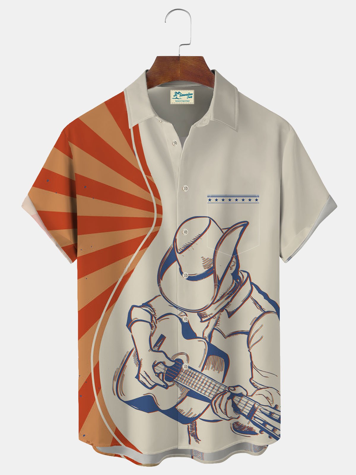 Alohadaddy Cowboy Music Guitar Men's Button Pocket Shirt