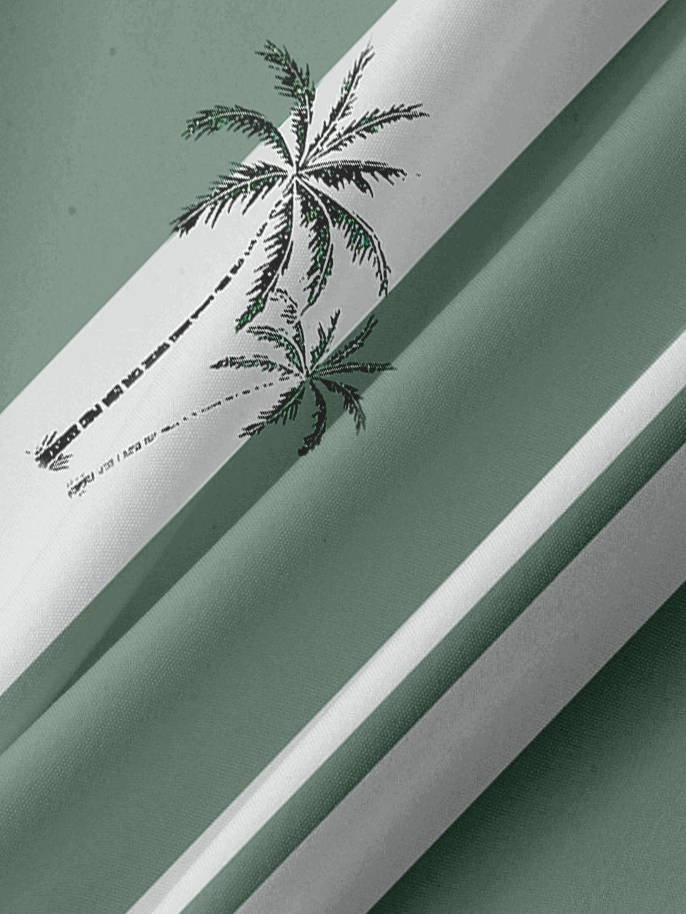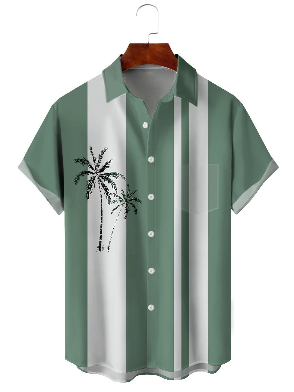 Alohadaddy Green Coconut Tree Casual Bowling Cotton-Blend Shirts