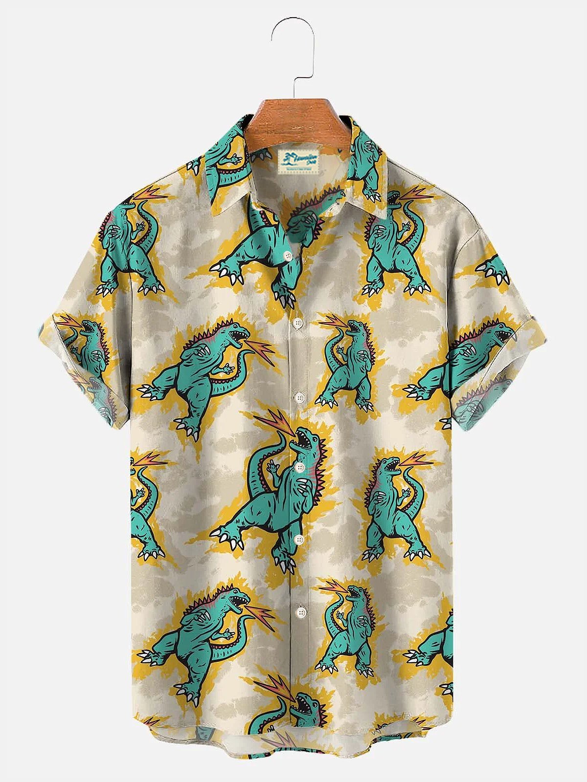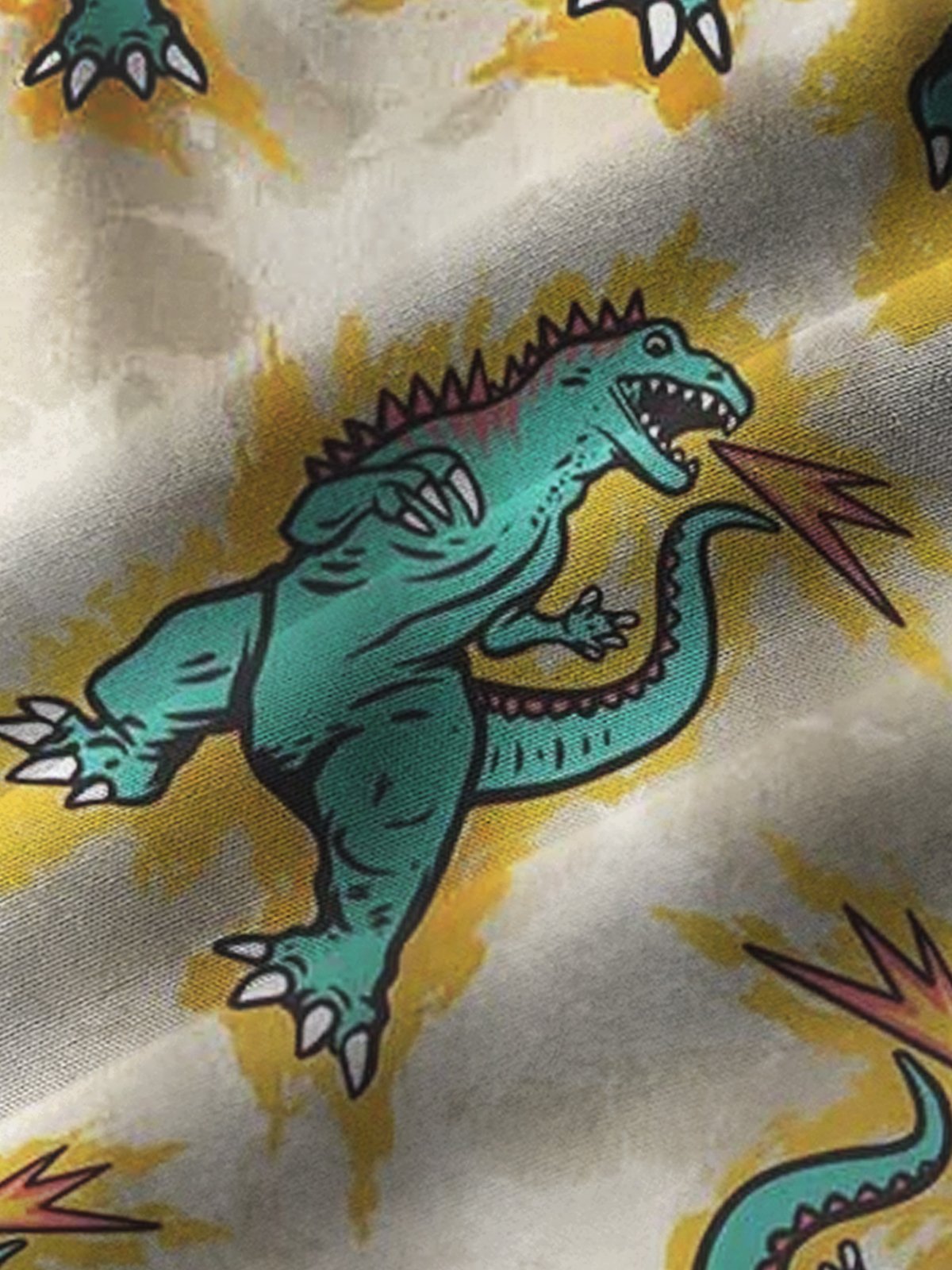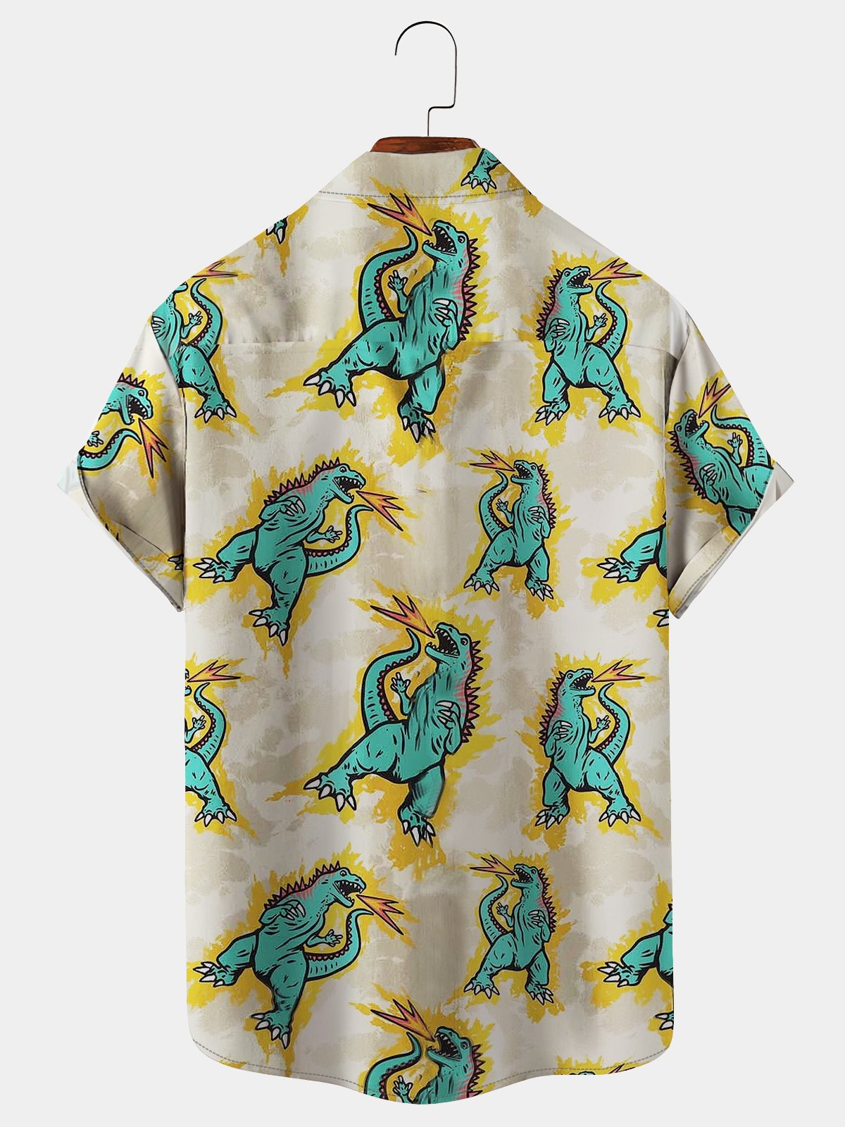 Alohadaddy Hawaiian 50s Cartoon Dinosaur Print Men's Button Pocket Shirt