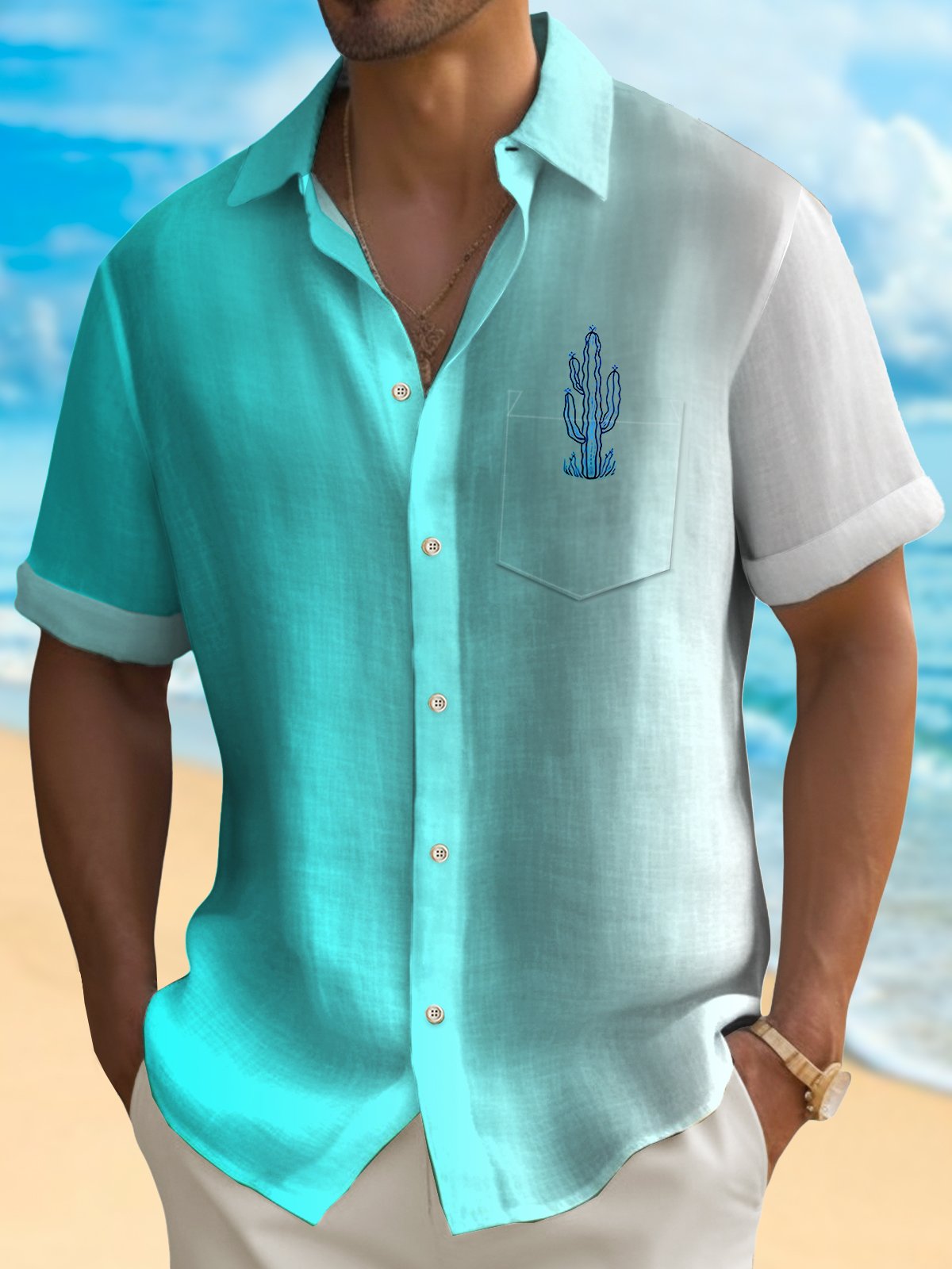 Alohadaddy hawaiian cactus print men's pocket shirt