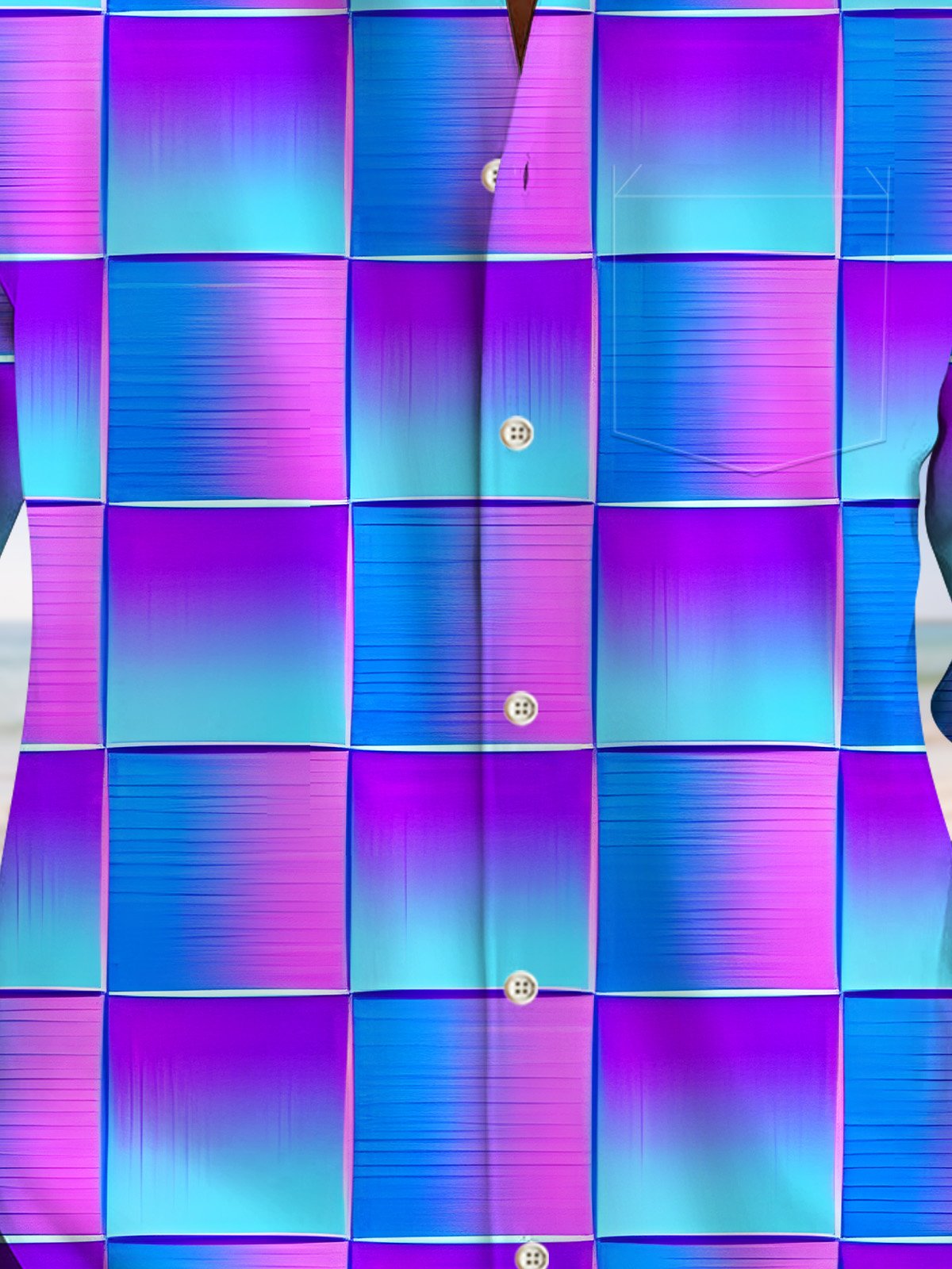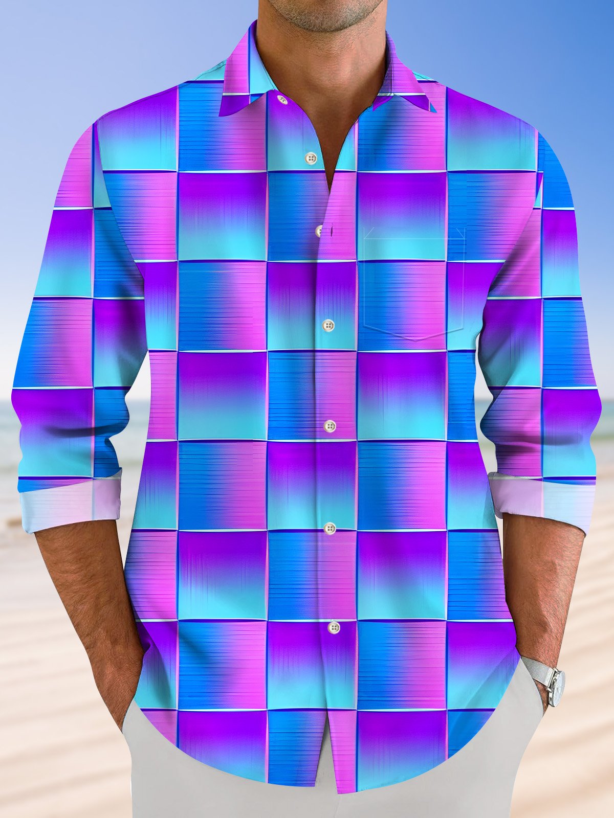 Alohadaddy Hawaiian Geometric Gradient 3D Print Men's Button Pocket Long Sleeve Shirt