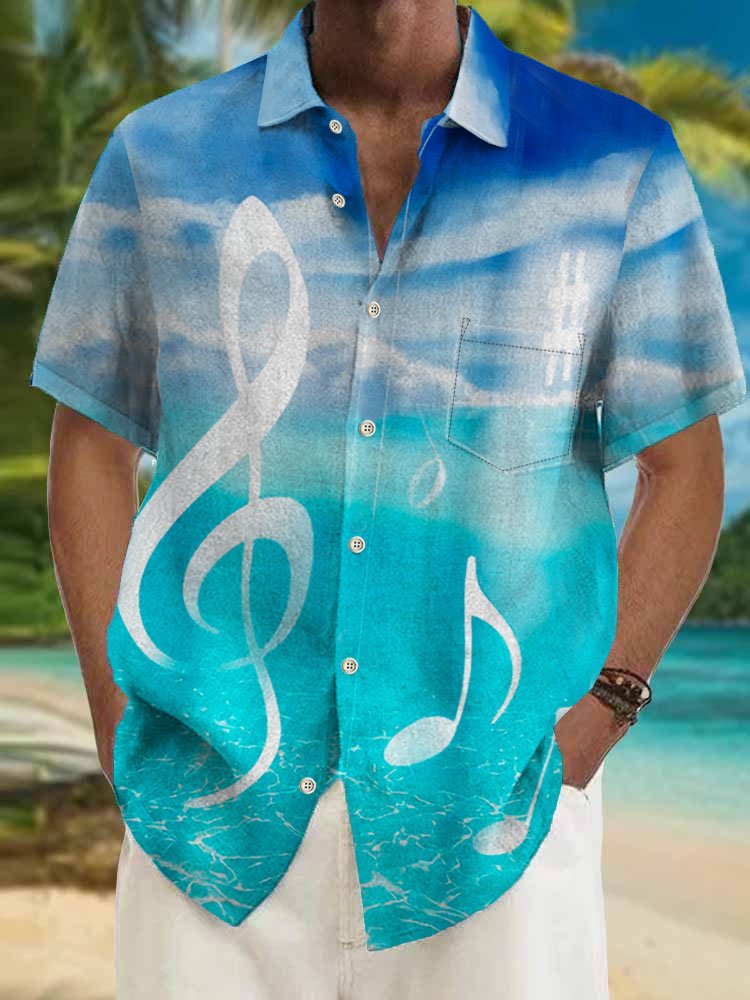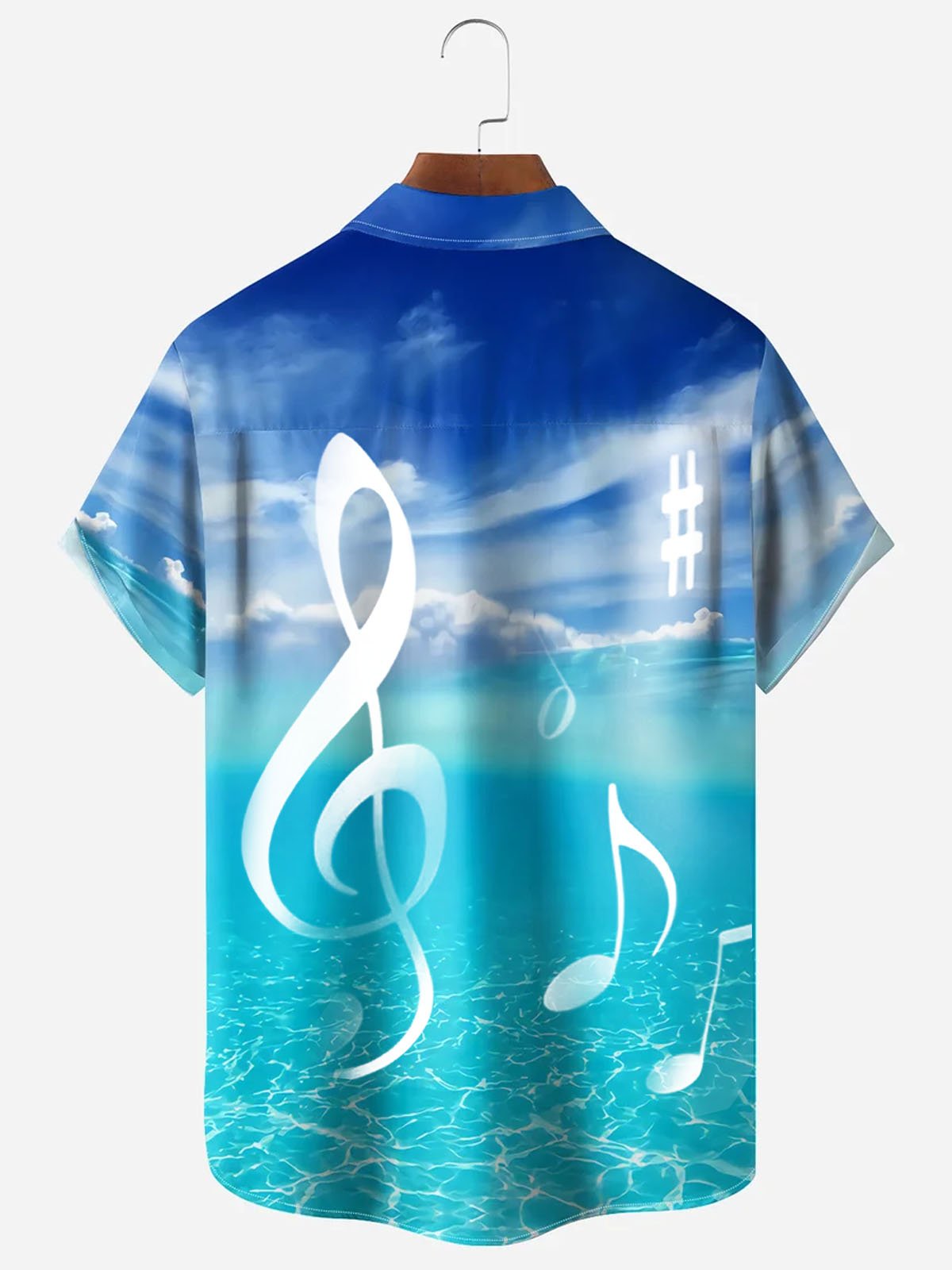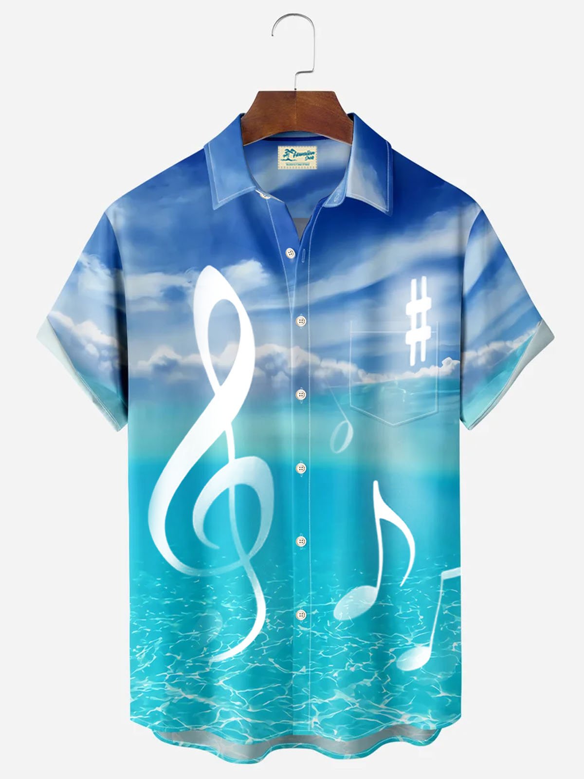 Alohadaddy Hawaiian Gradient Moire Musical Note Men's Button Pocket Shirt