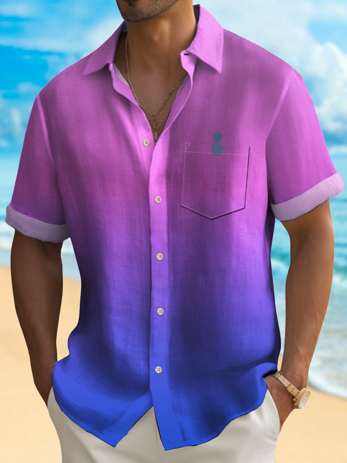 Alohadaddy Hawaiian pineapple print men's pocket shirt