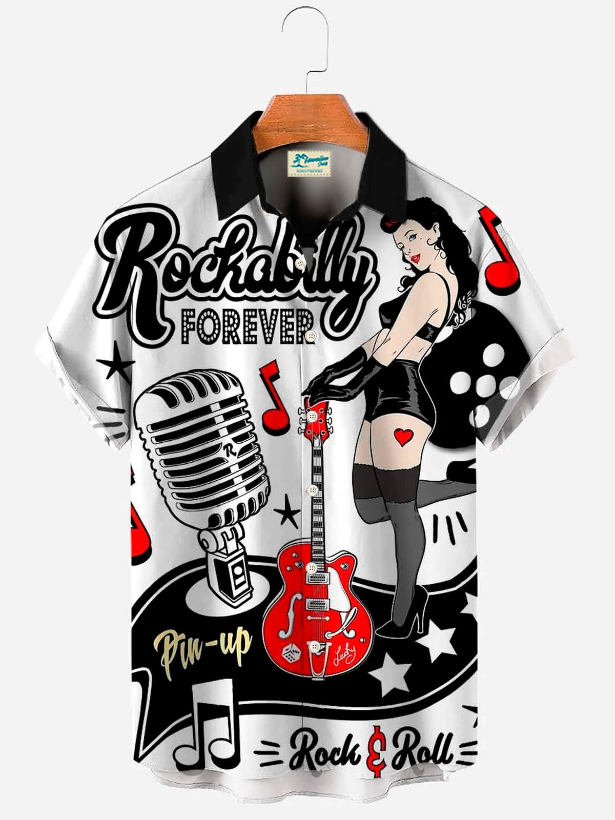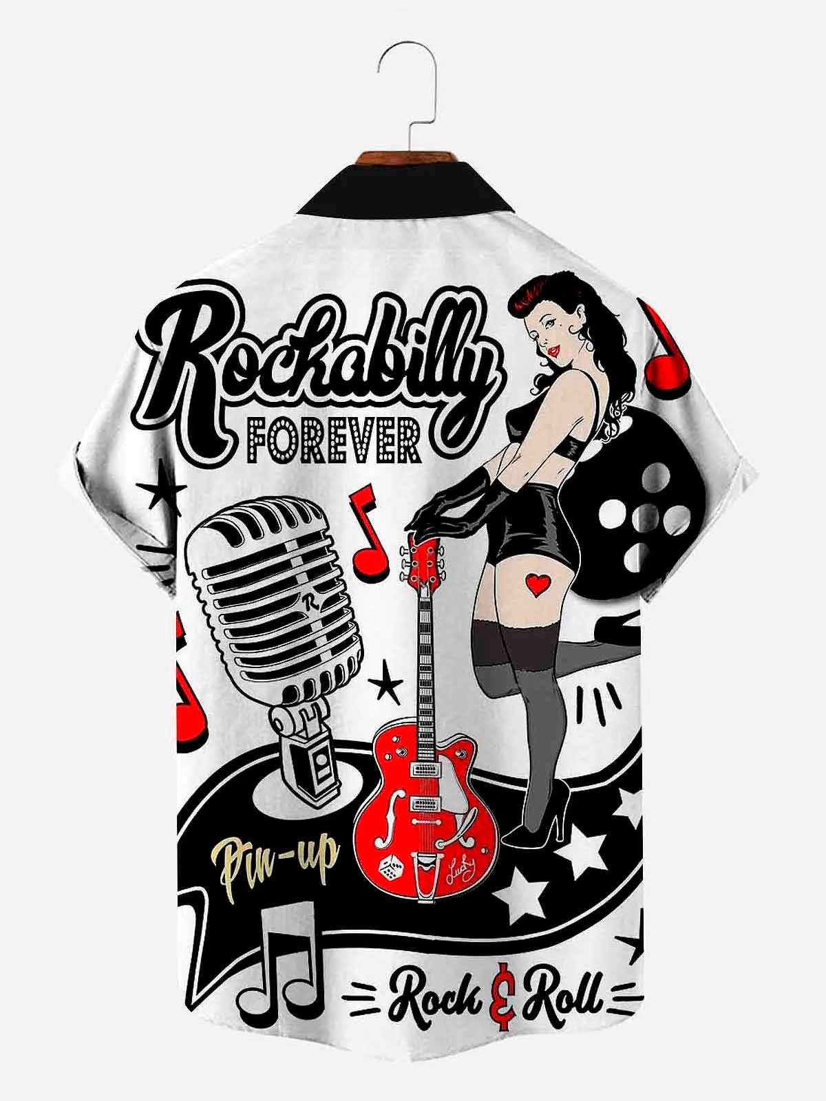 Alohadaddy Instrument Guitar Music Beauty Print Men's Button Pocket Shirt