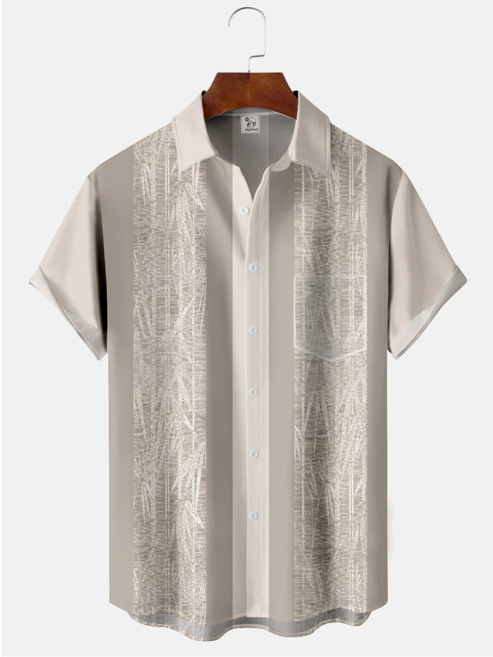 Alohadaddy Khaki Bamboo Texture Casual Bowling Cotton-blend Shirts