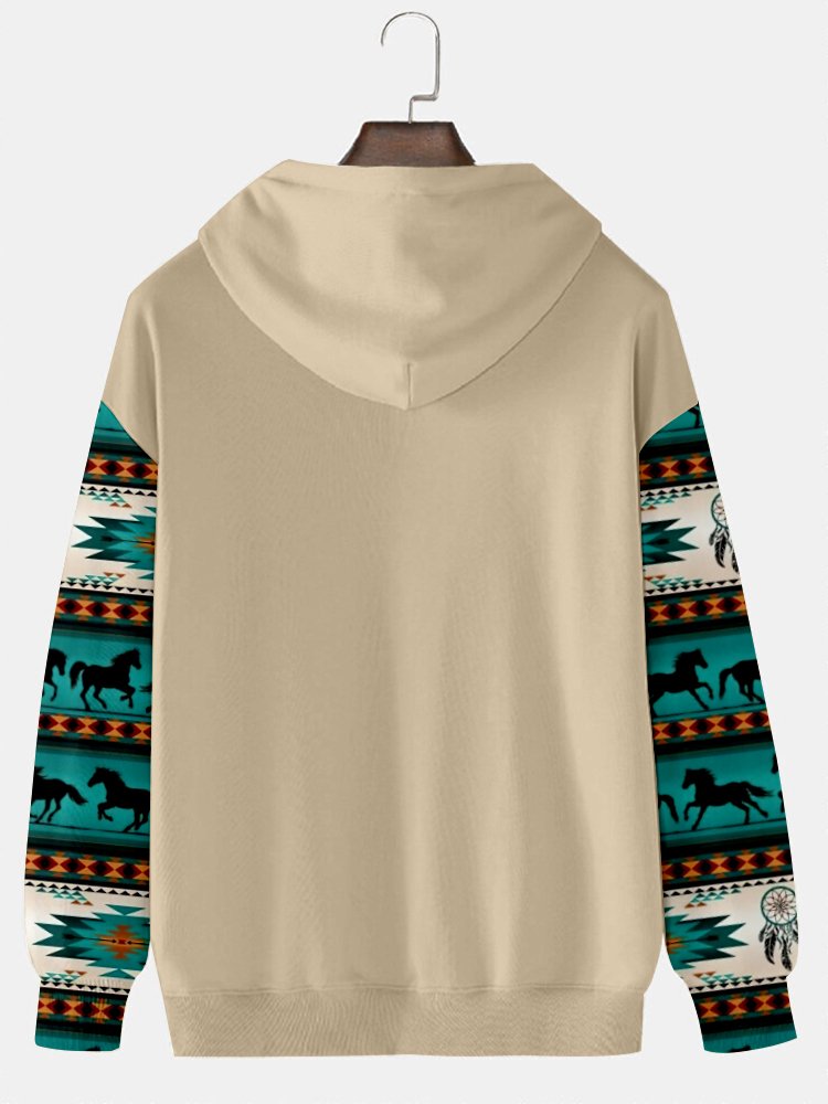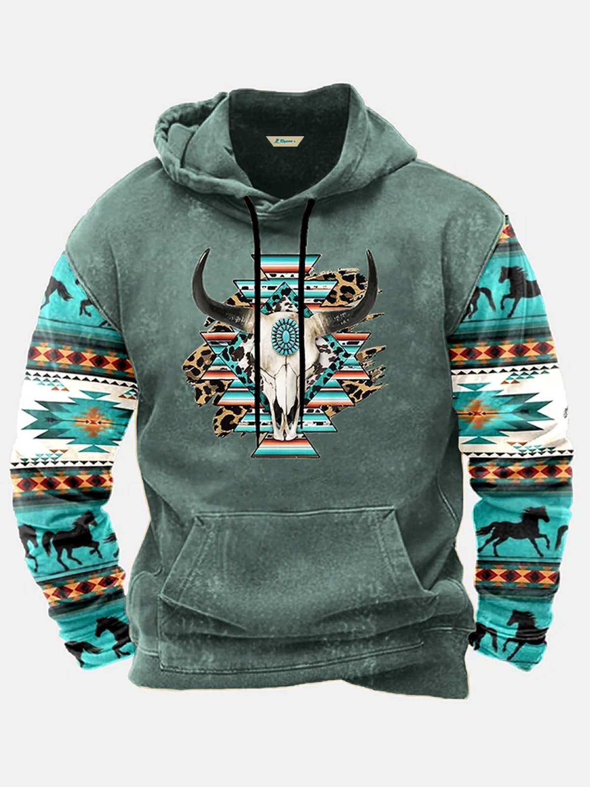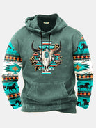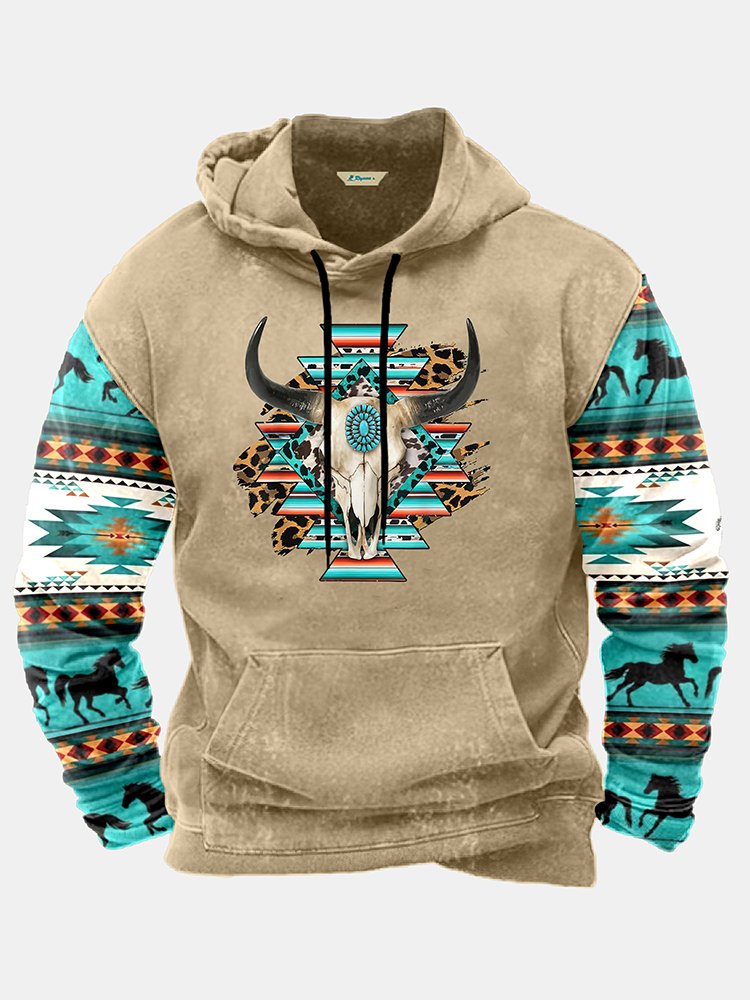 Alohadaddy Men's Aztec Western Bull Skull Print Vintage Drawstring Hoodies