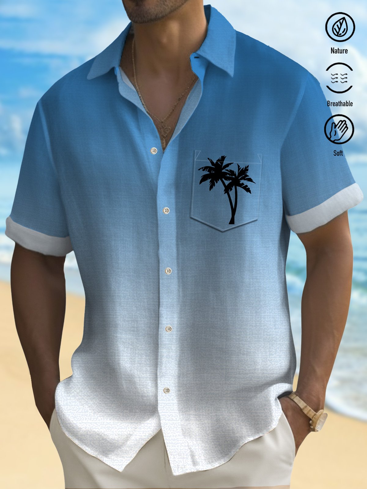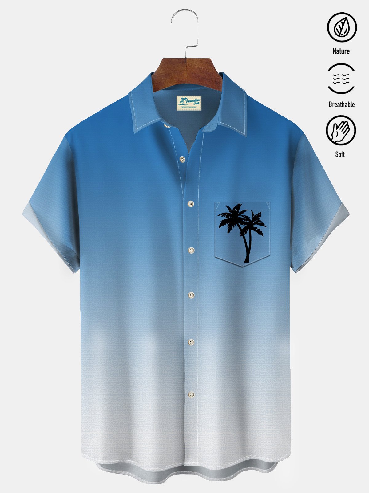 Alohadaddy Men's Gradient Coconut Tree Print Button Pocket Shirt