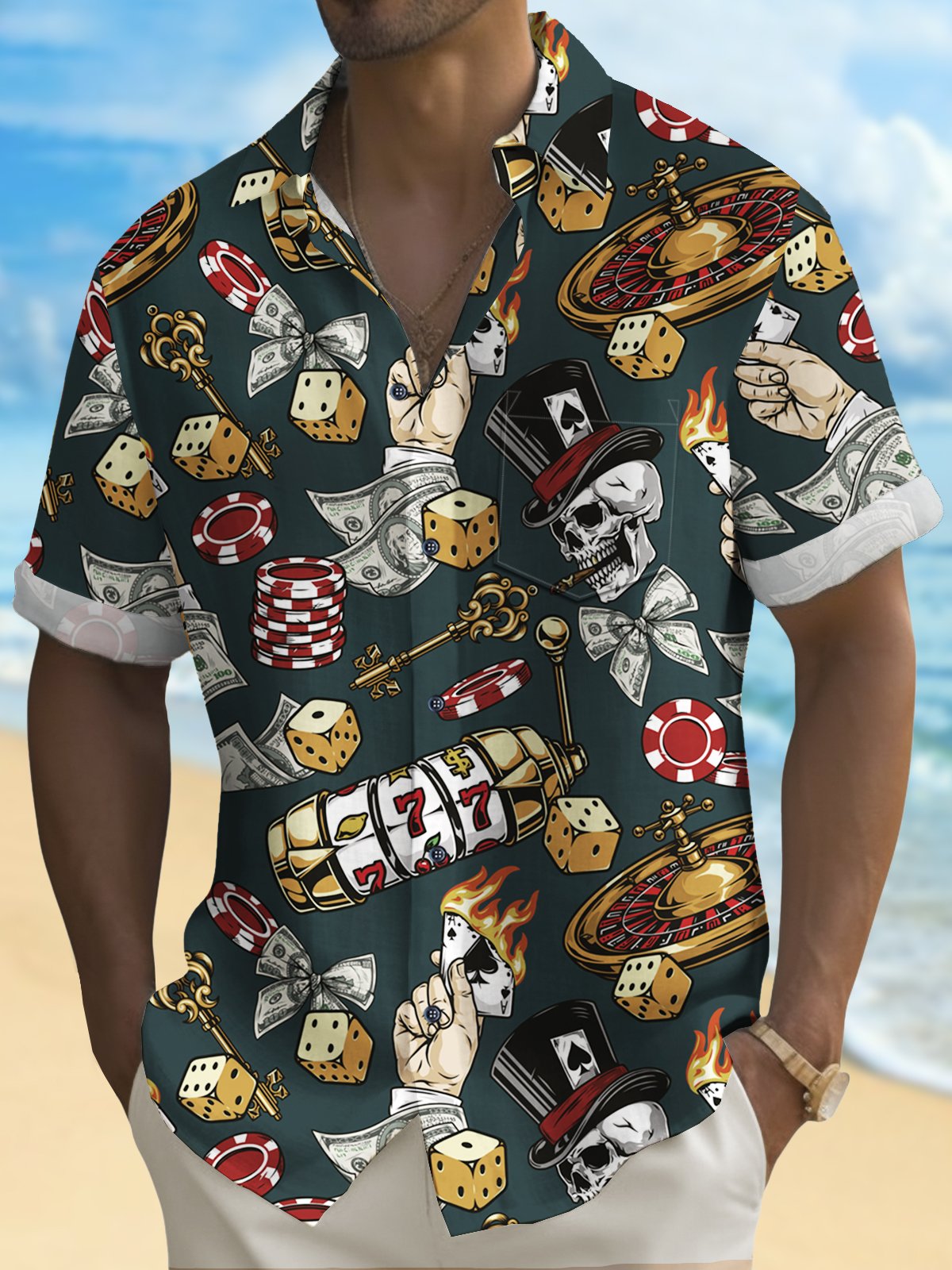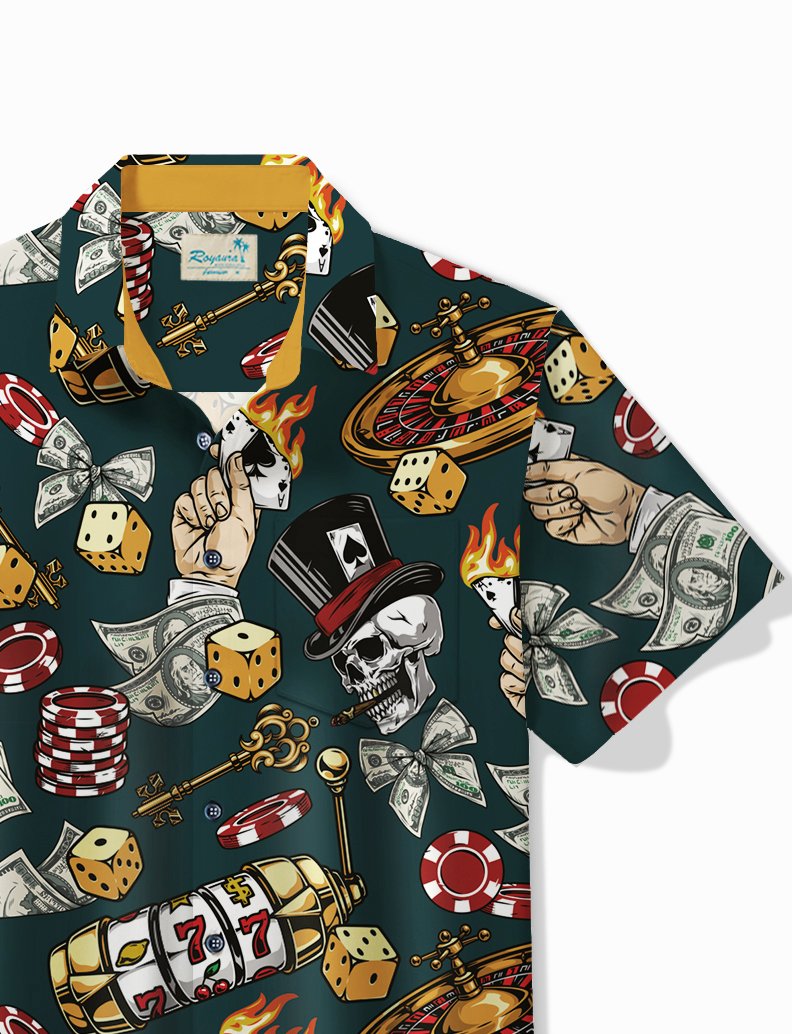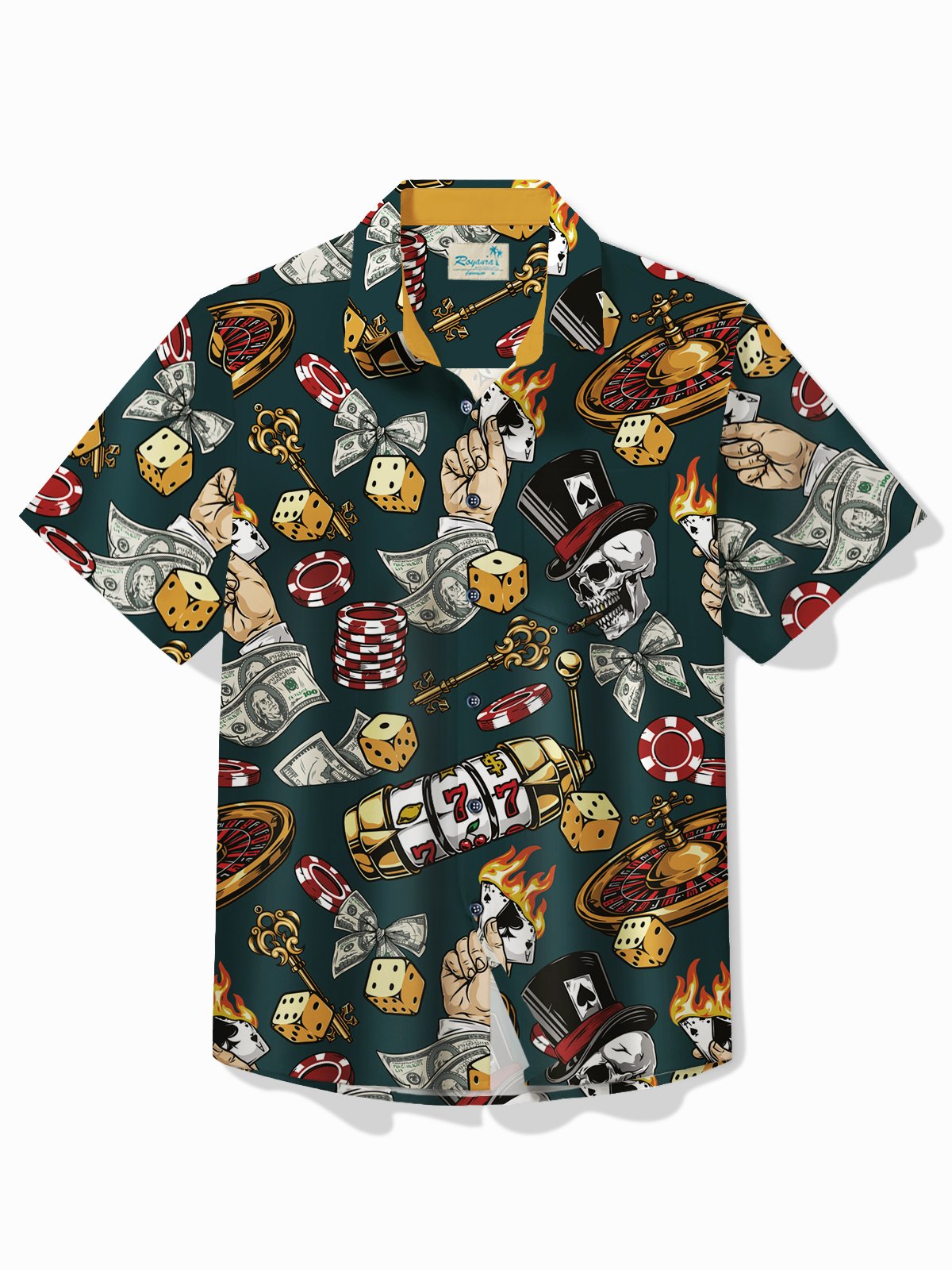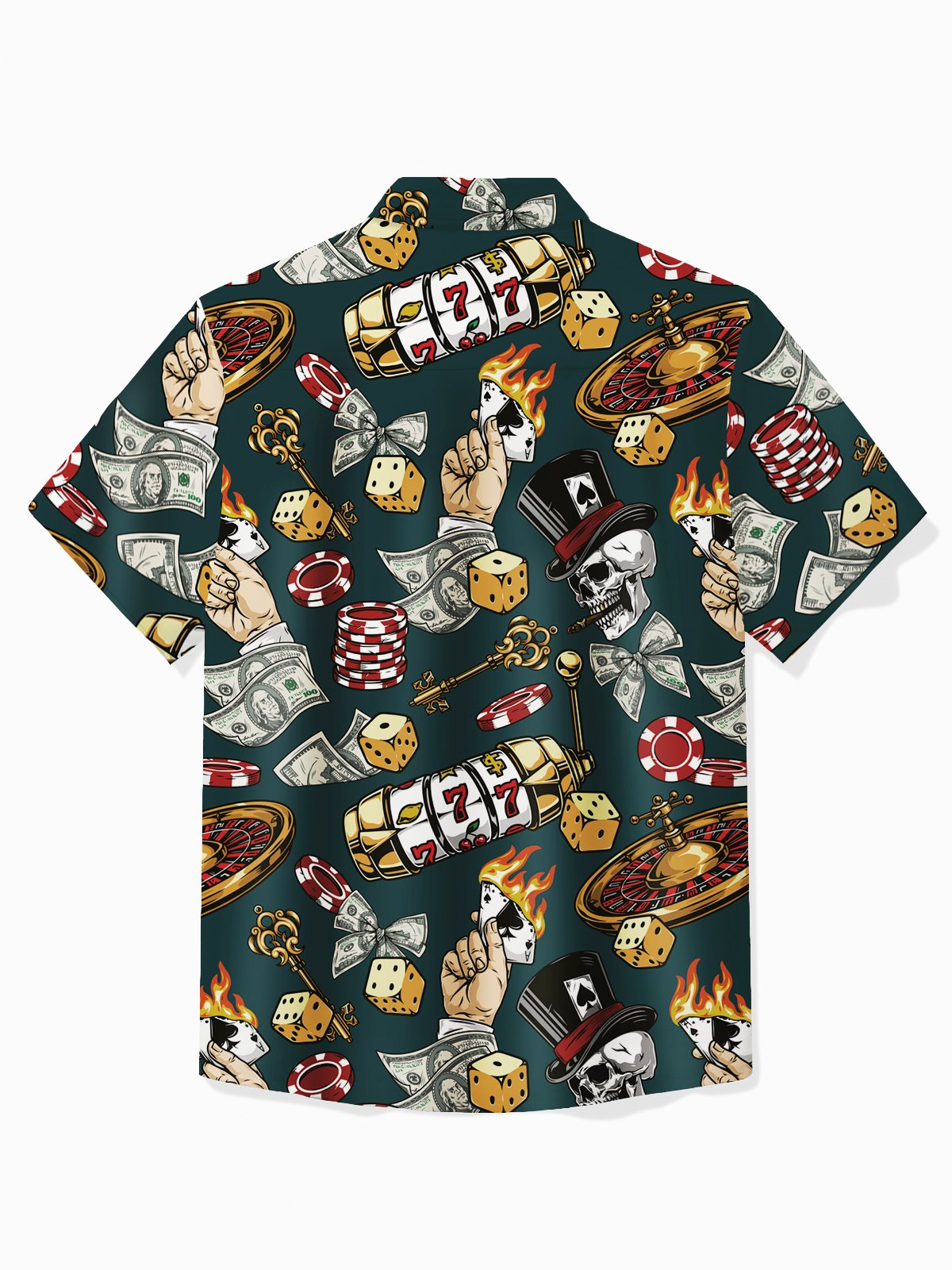 Alohadaddy Men's Hawaiian Shirt Las Vegas Poker Skull Pocket Camping Shirt