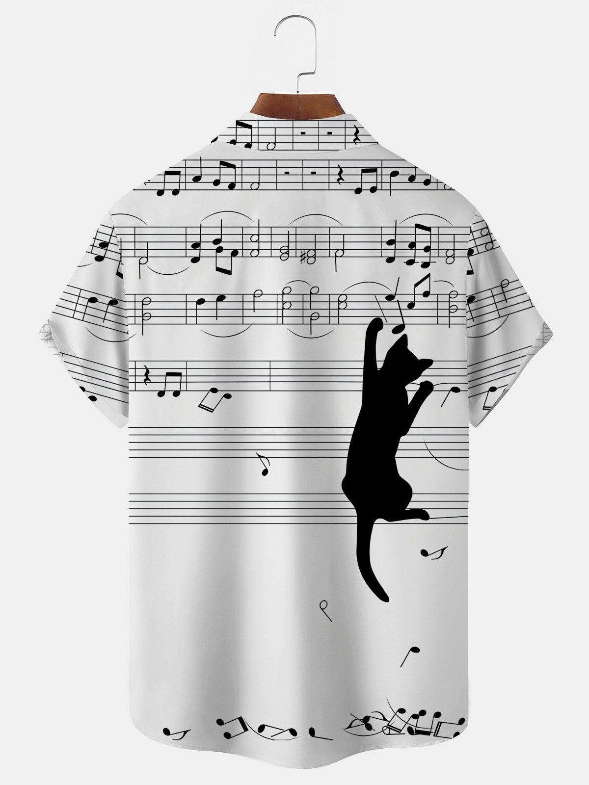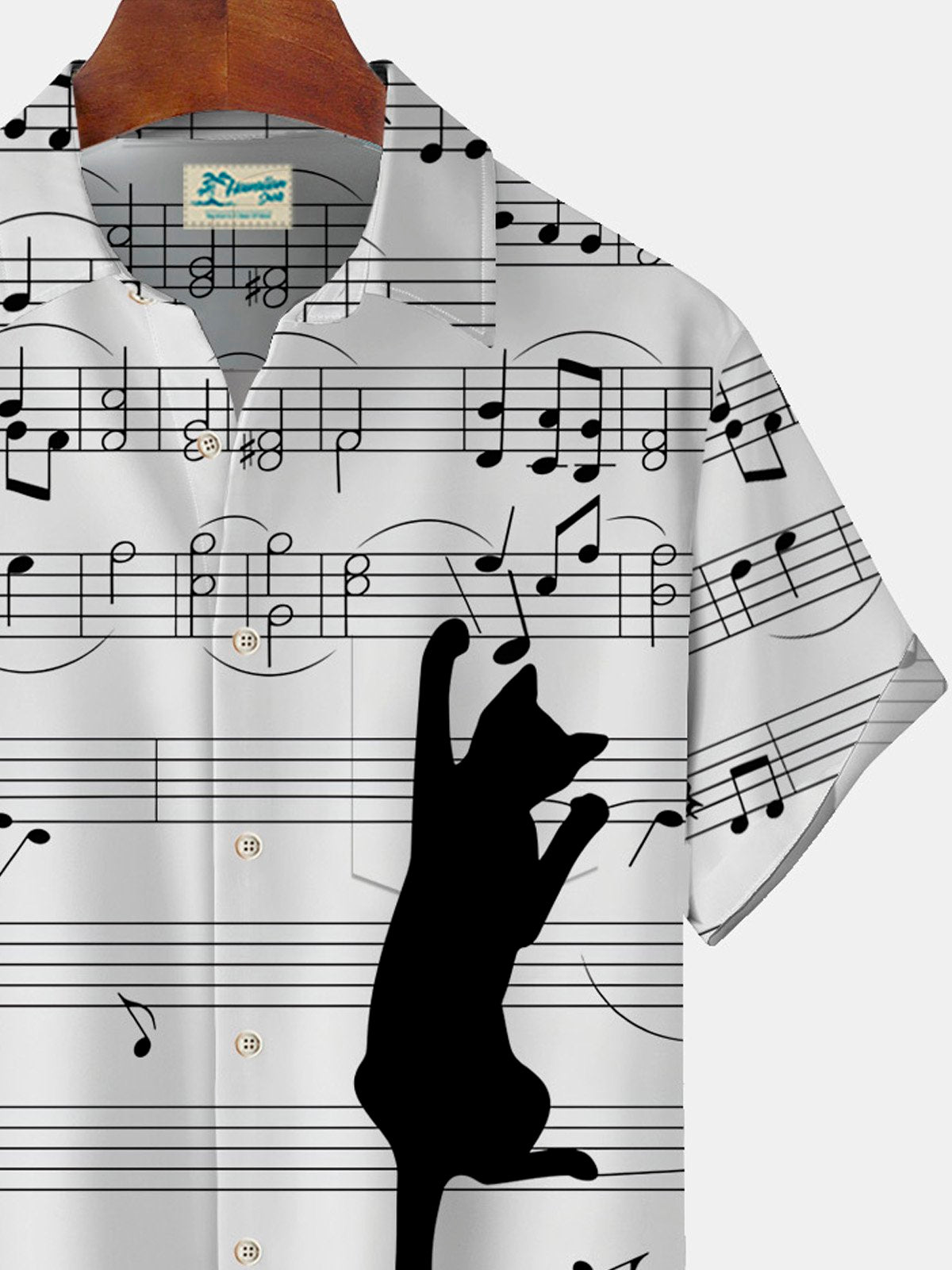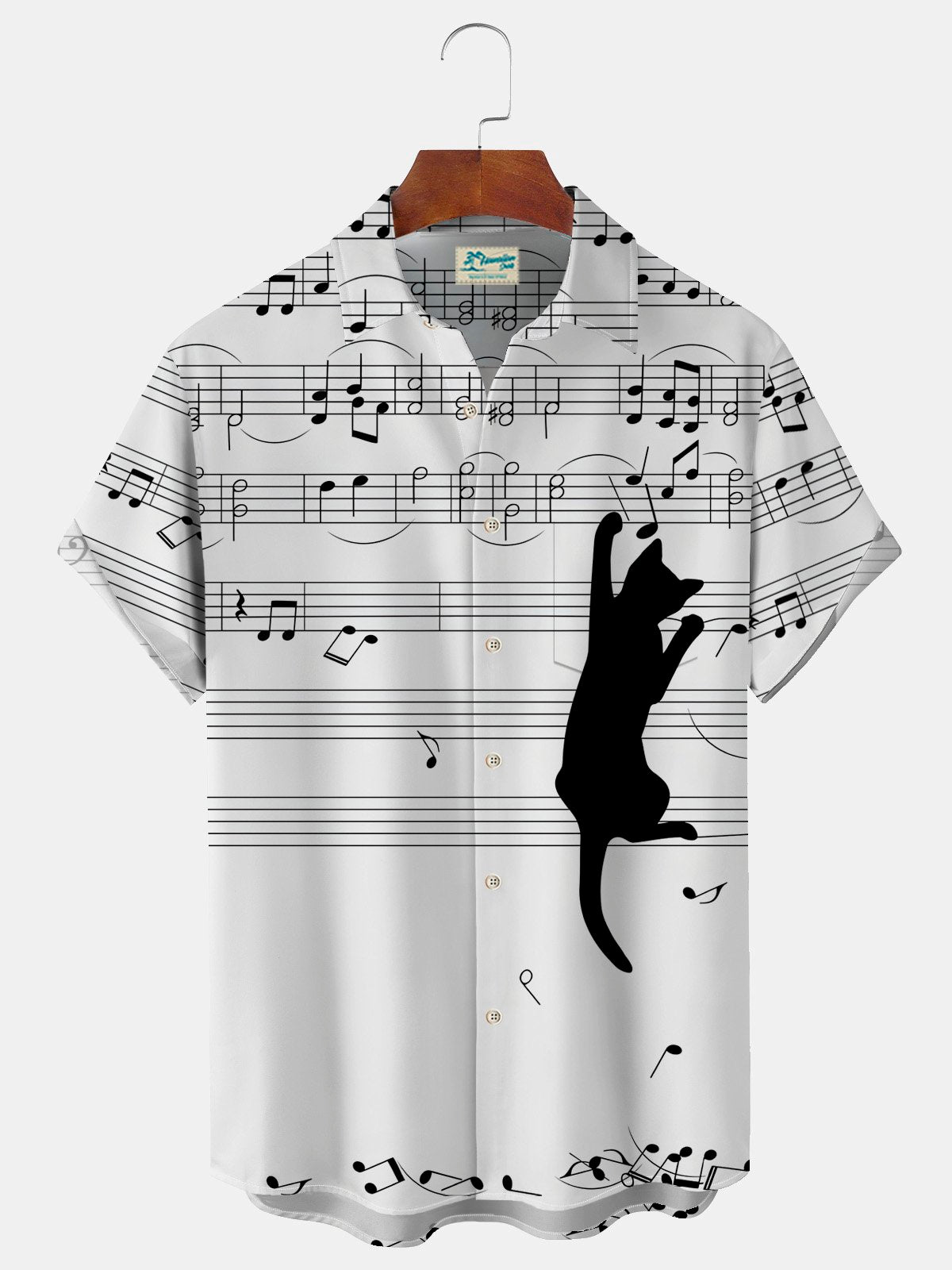 Alohadaddy Men's Music Note Cat Print Button Pocket Shirt