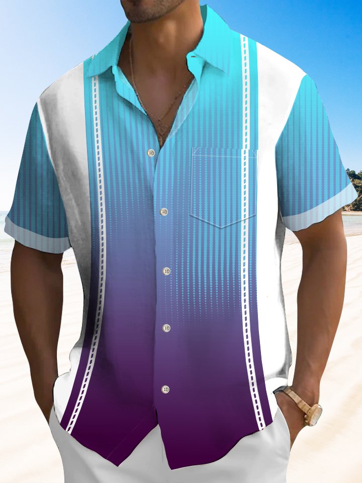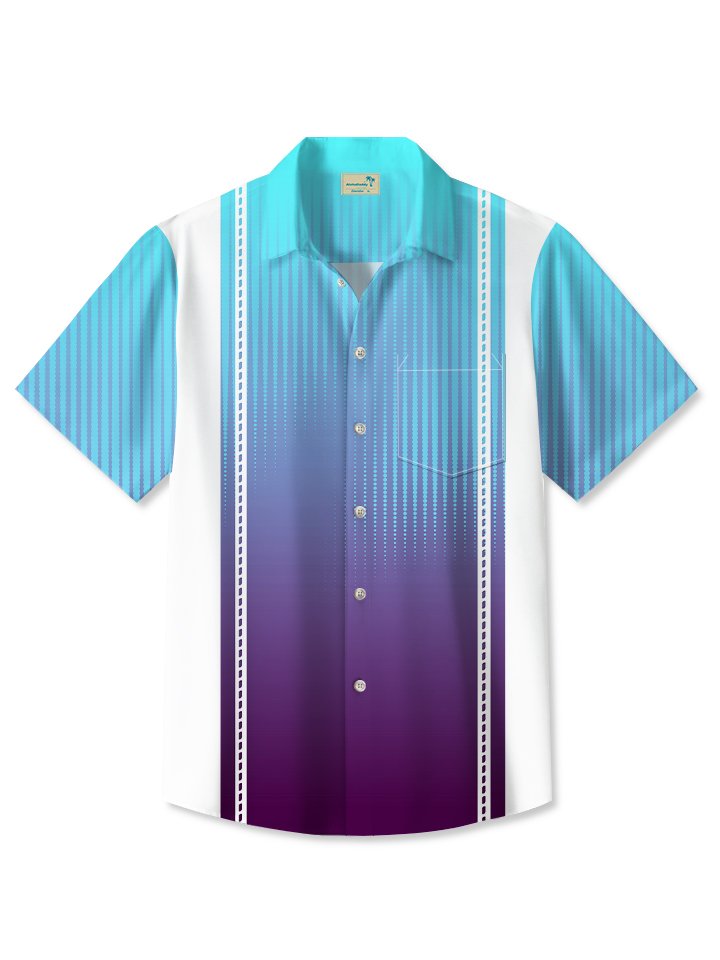 Alohadaddy Men's Retro Geometric Line Gradient Bowling Pocket Shirt