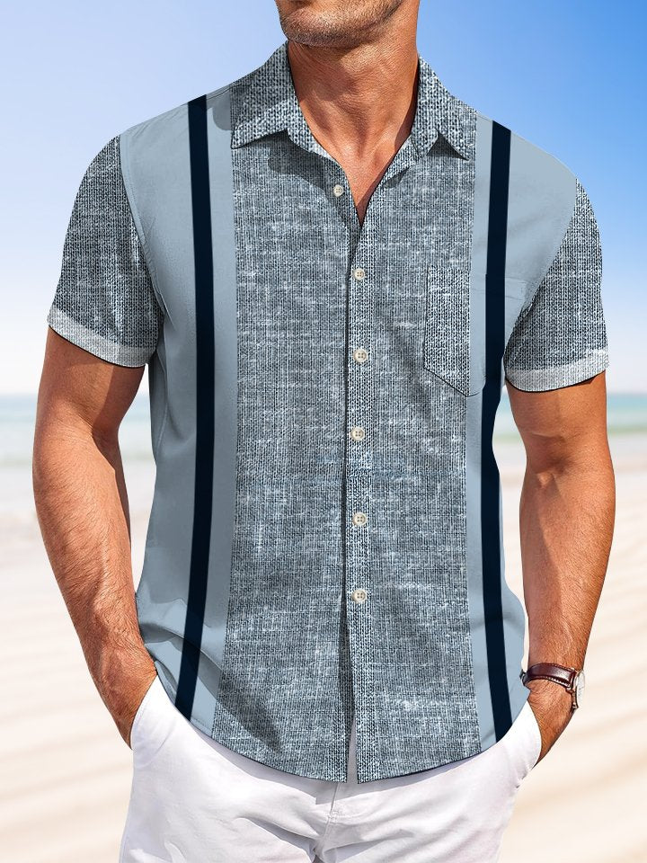 Alohadaddy Men's Vintage Textured Geometric Line Bowling Shirt