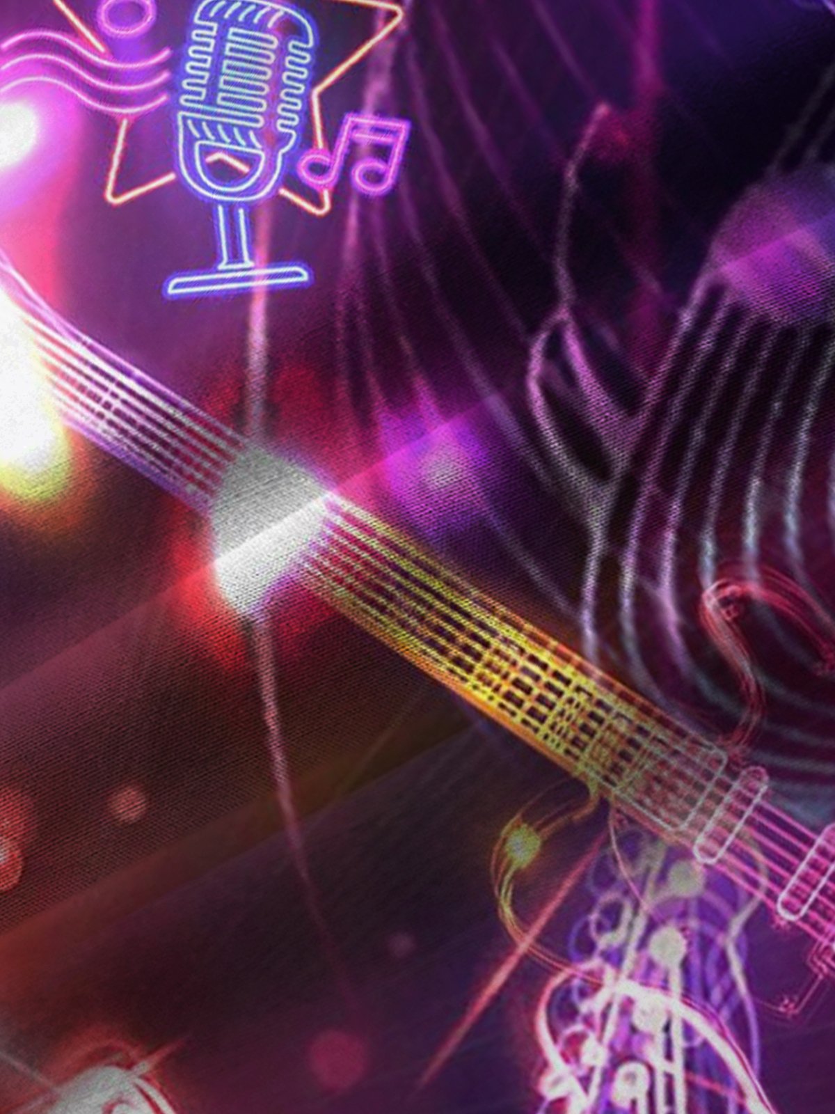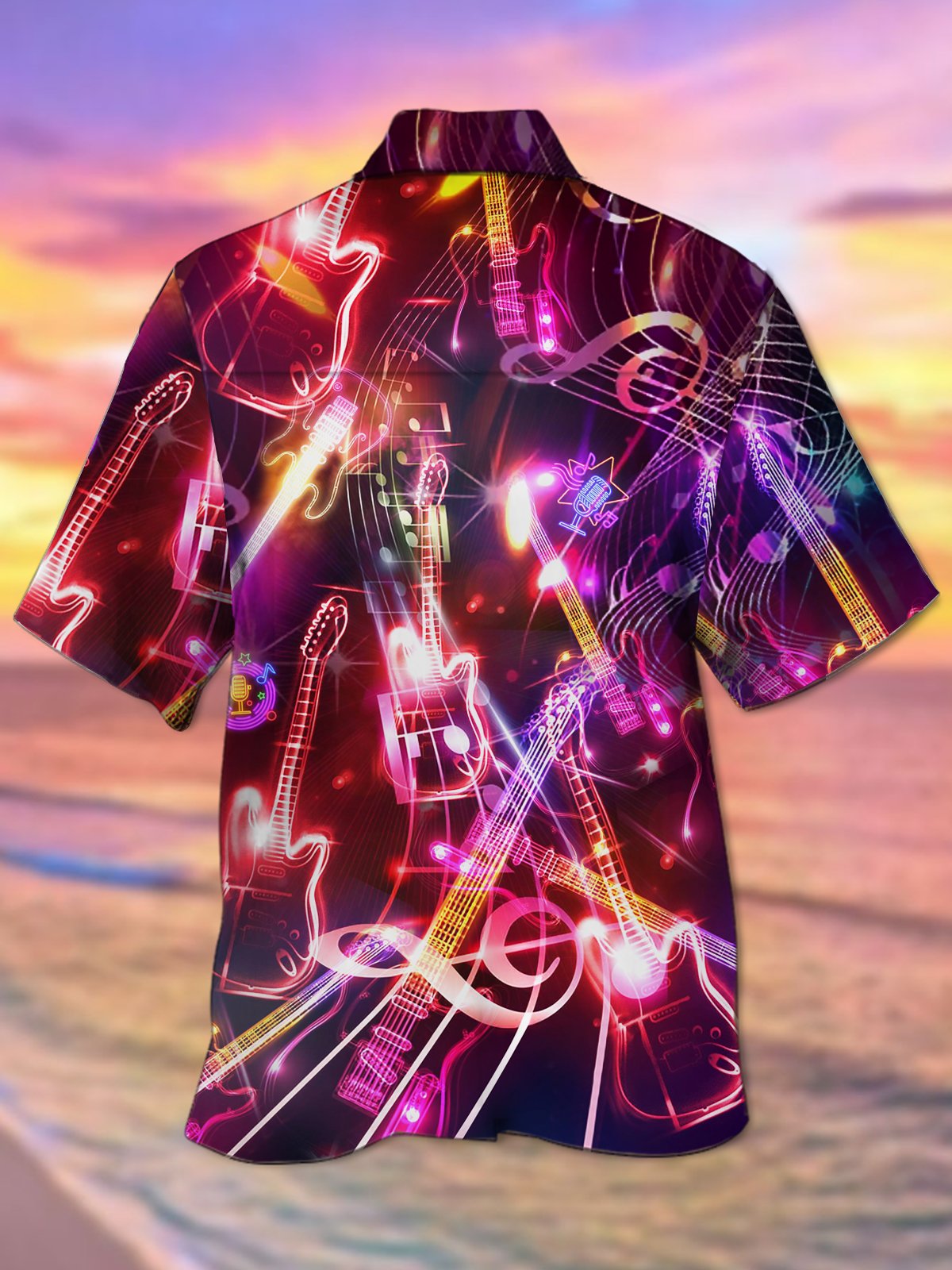 Alohadaddy Music Festival Holiday Purple Men's Hawaiian Shirt Guitar Neon Art Quick Dry Pocket Camp Shirt Big Tall