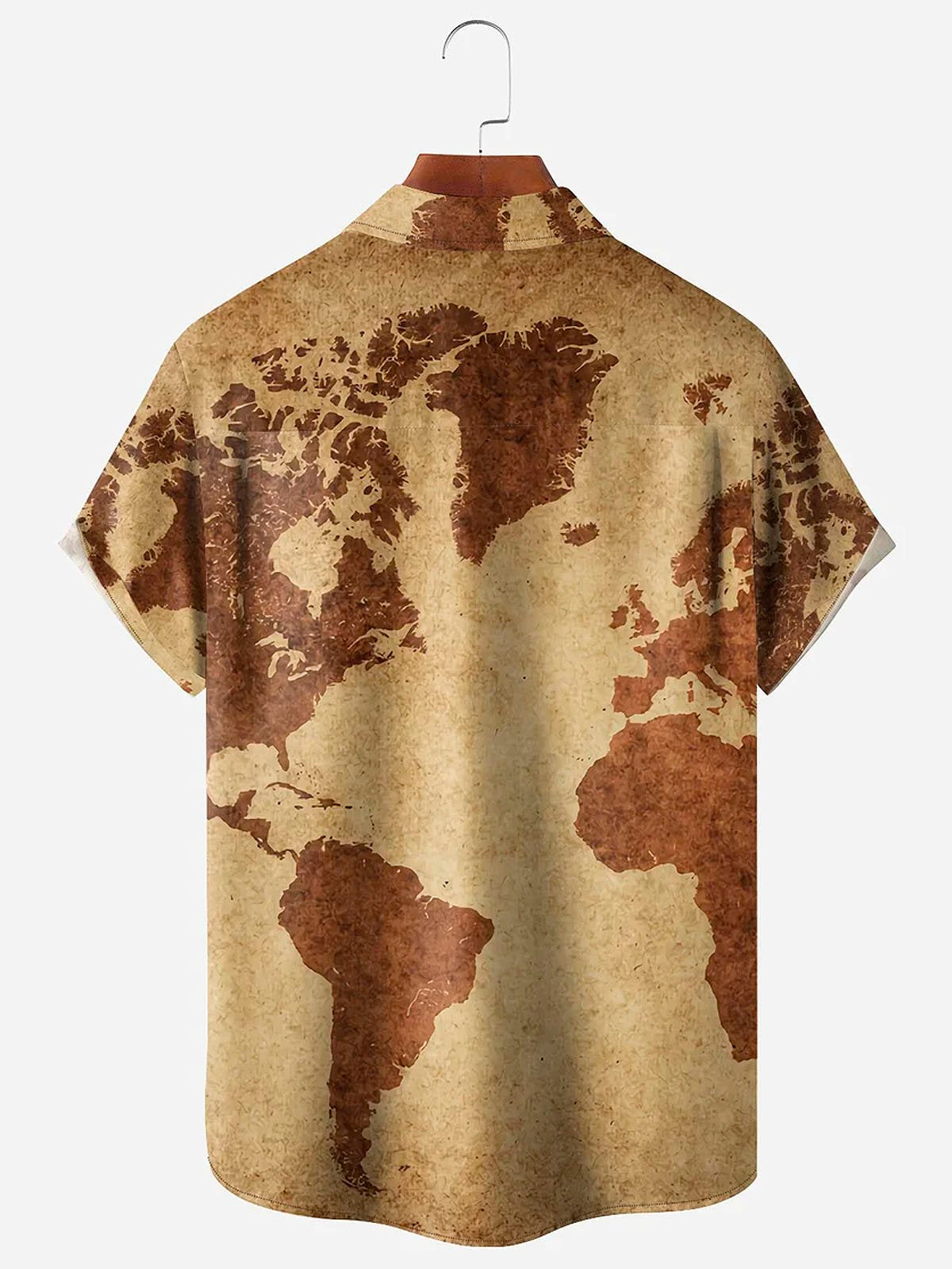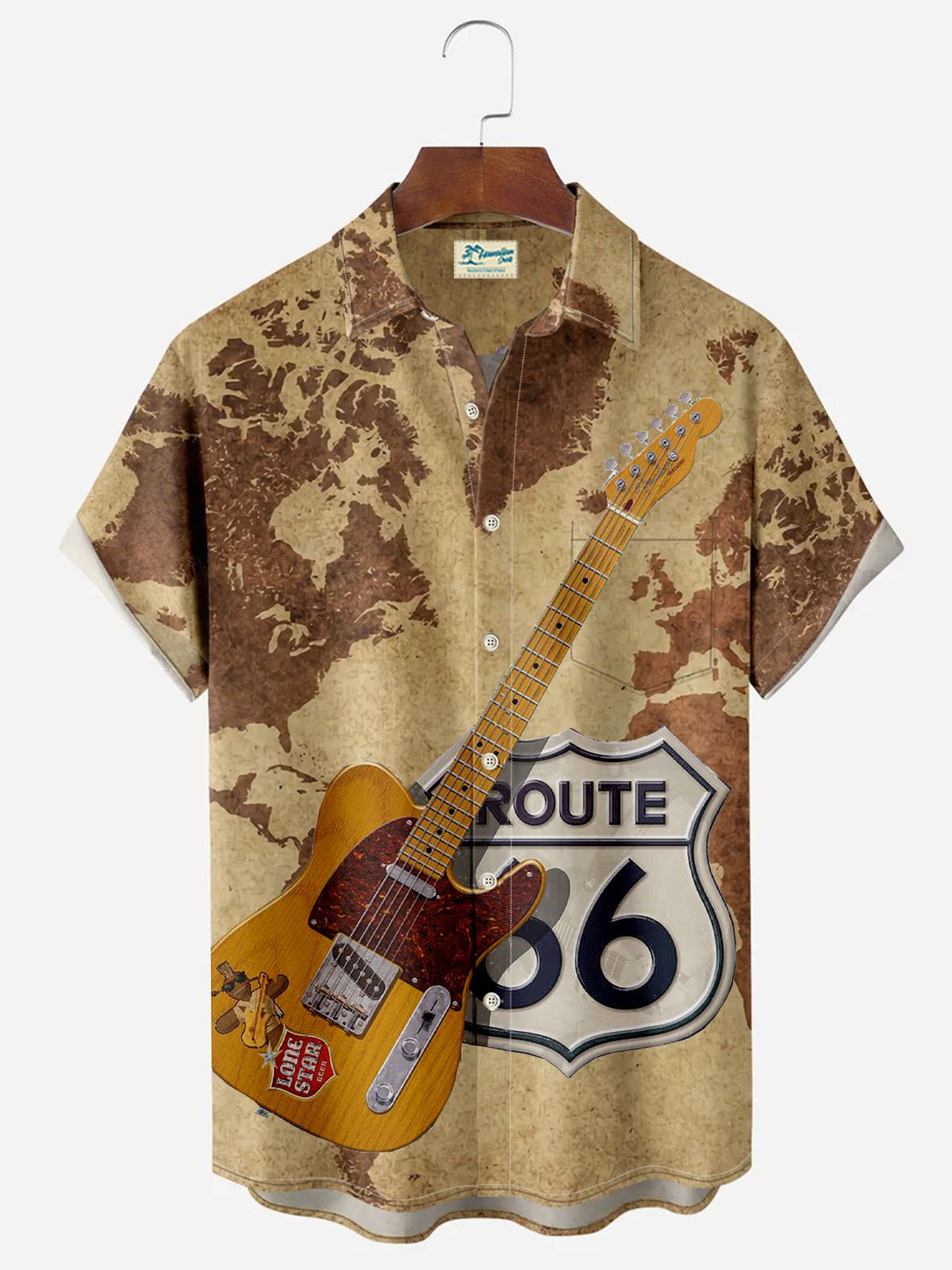 Alohadaddy Music Instrument Map Route 66 Men's Bowling Button Pocket Shirt