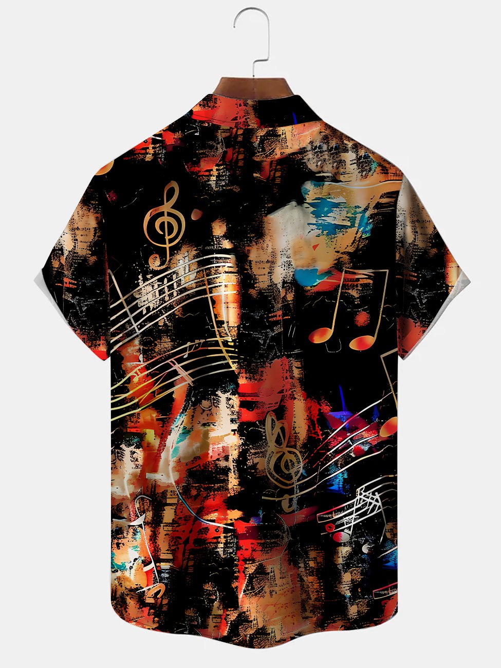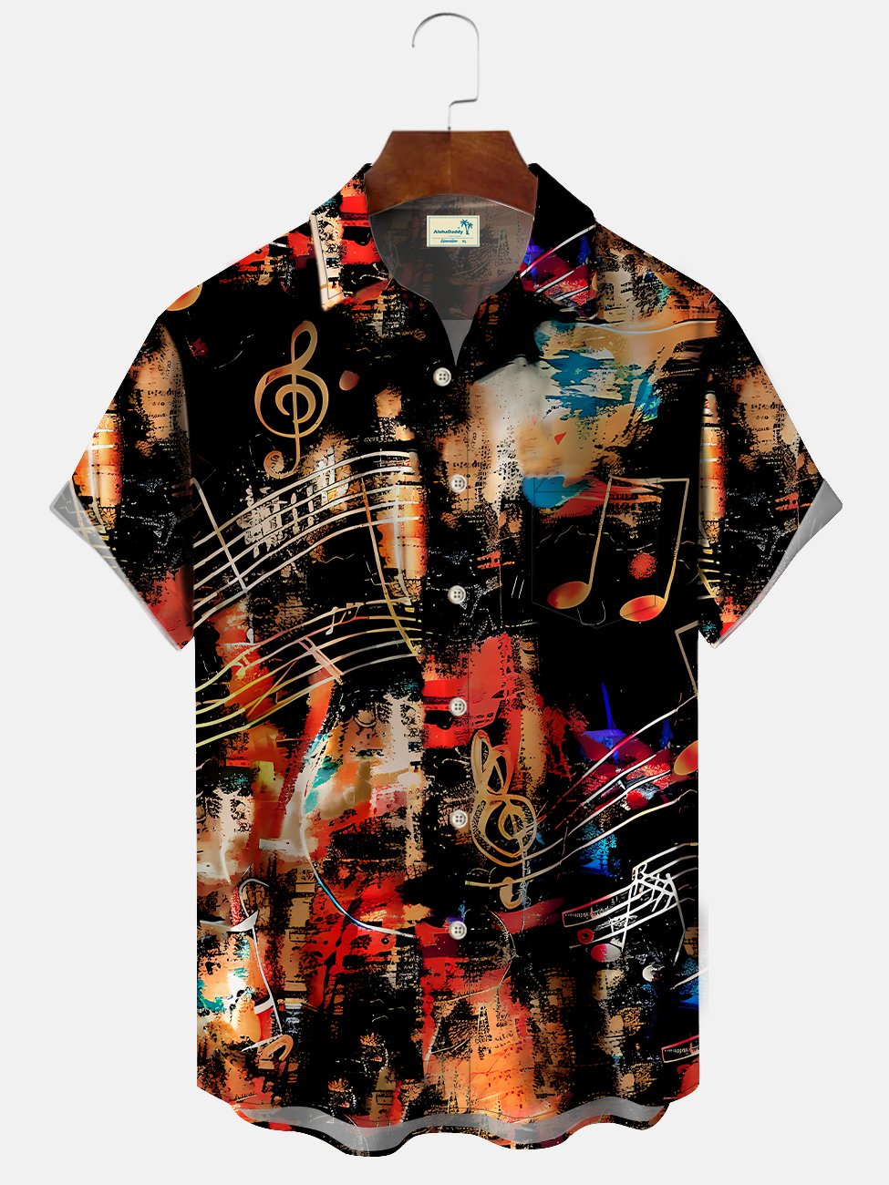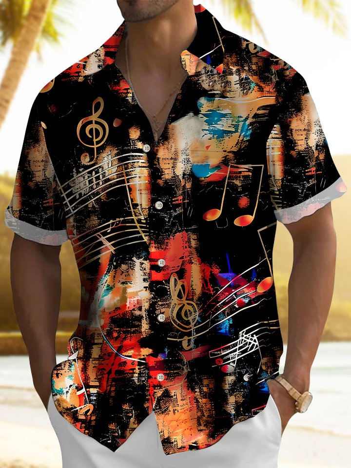 Alohadaddy Music Note Art Oil Paint Men's Hawaiian Shirt Band Stretch Camping Pocket Ombre Shirt
