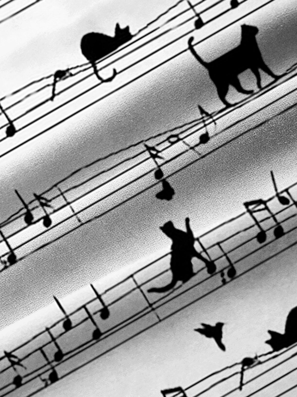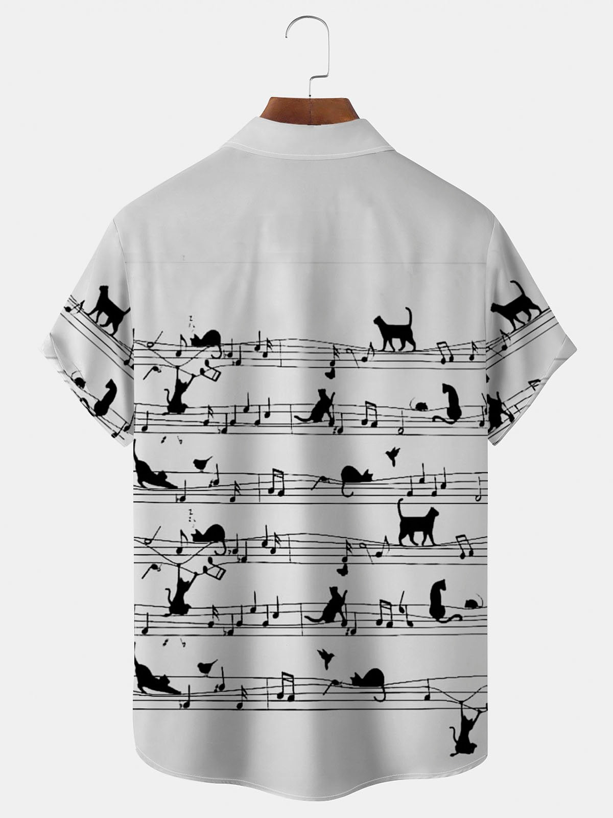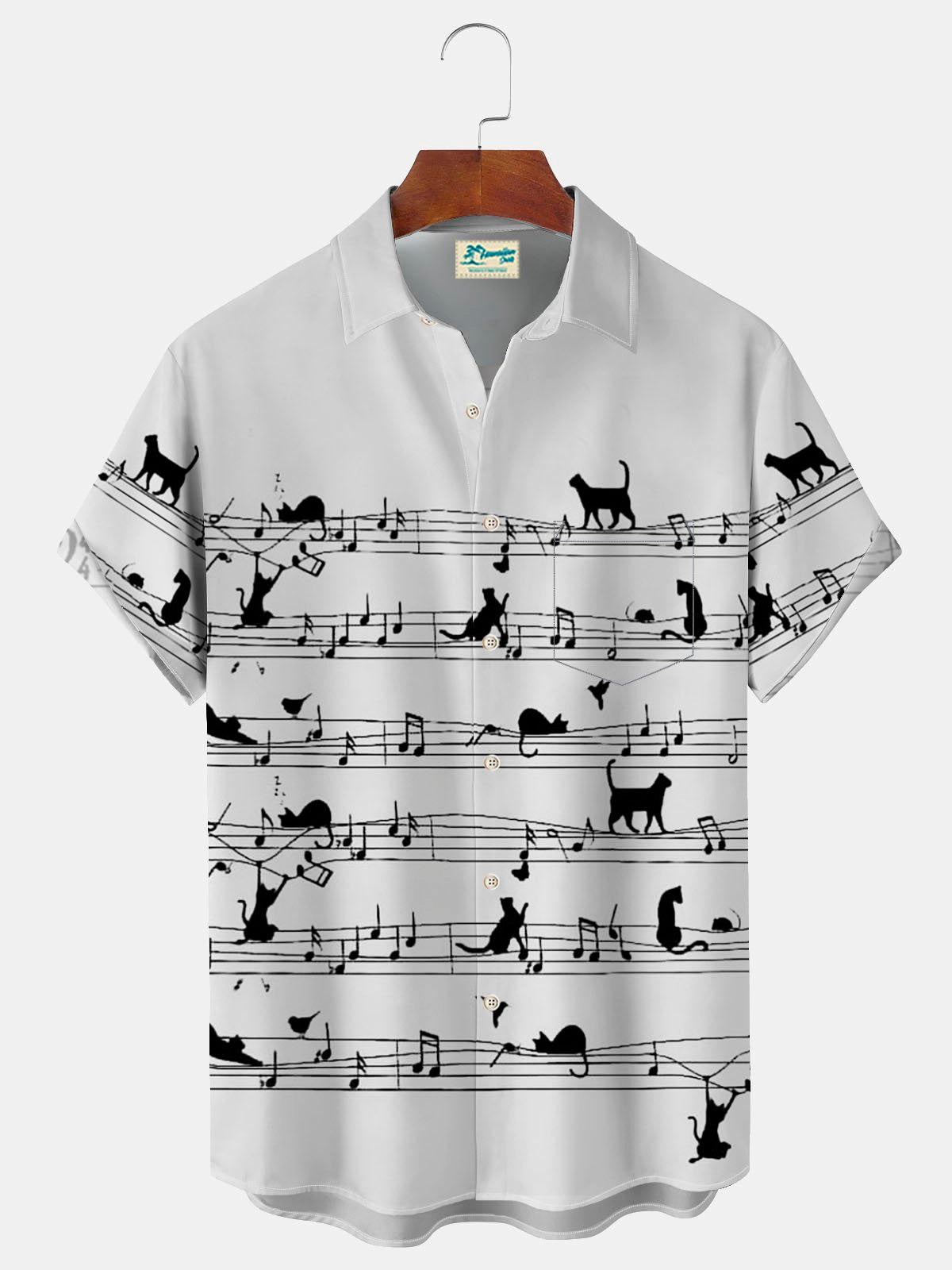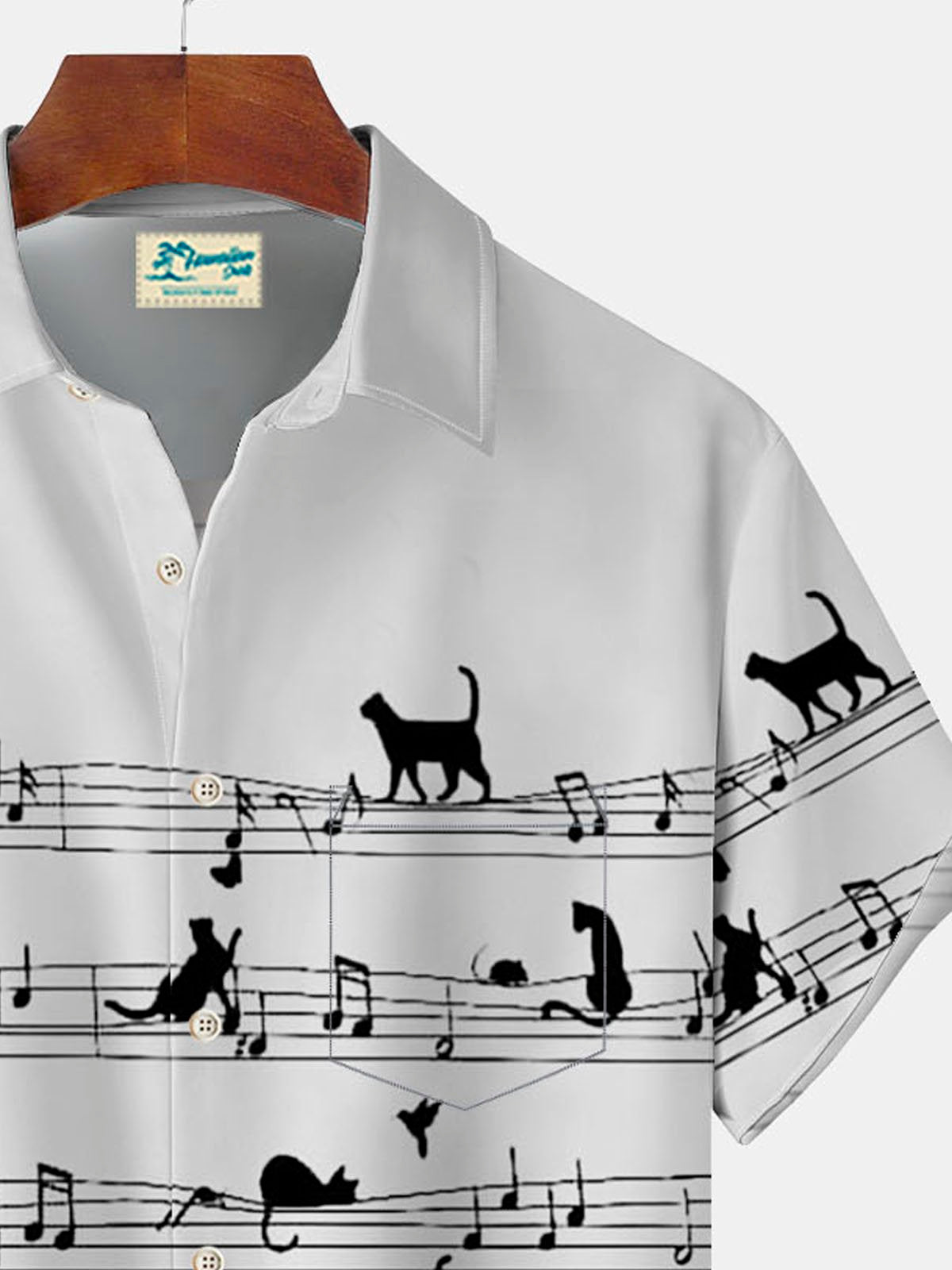 Alohadaddy Music Note Fun Cat Men Button Pocket Shirt