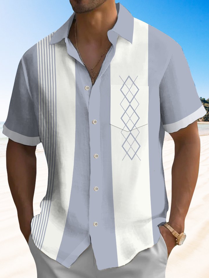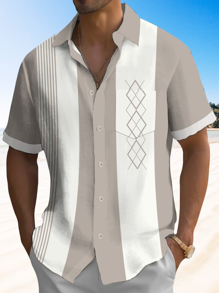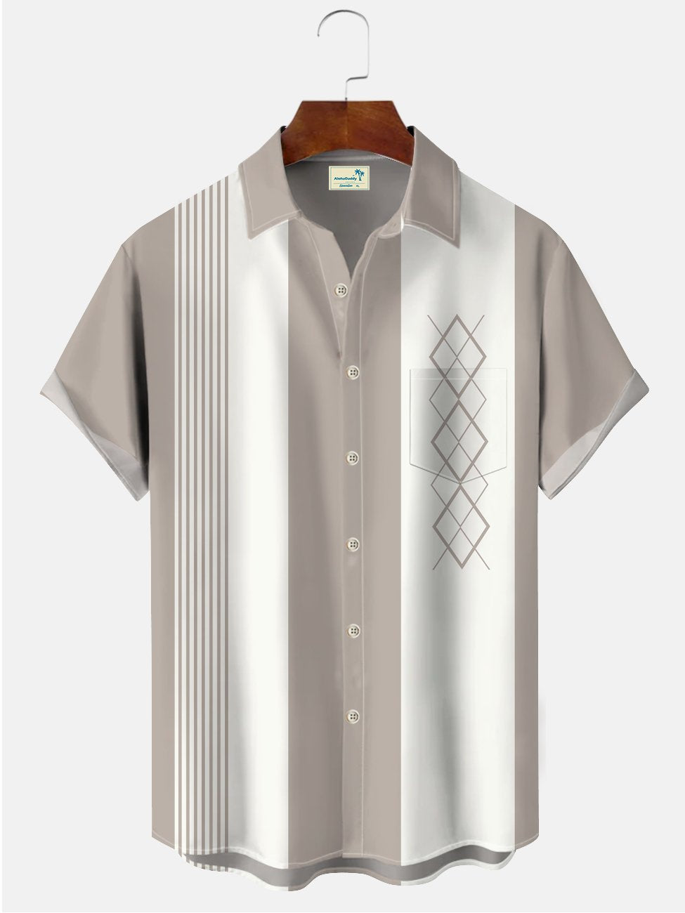 Alohadaddy Pocket Vintage Bowling Geometric Print Beach Men's Hawaiian Shirt
