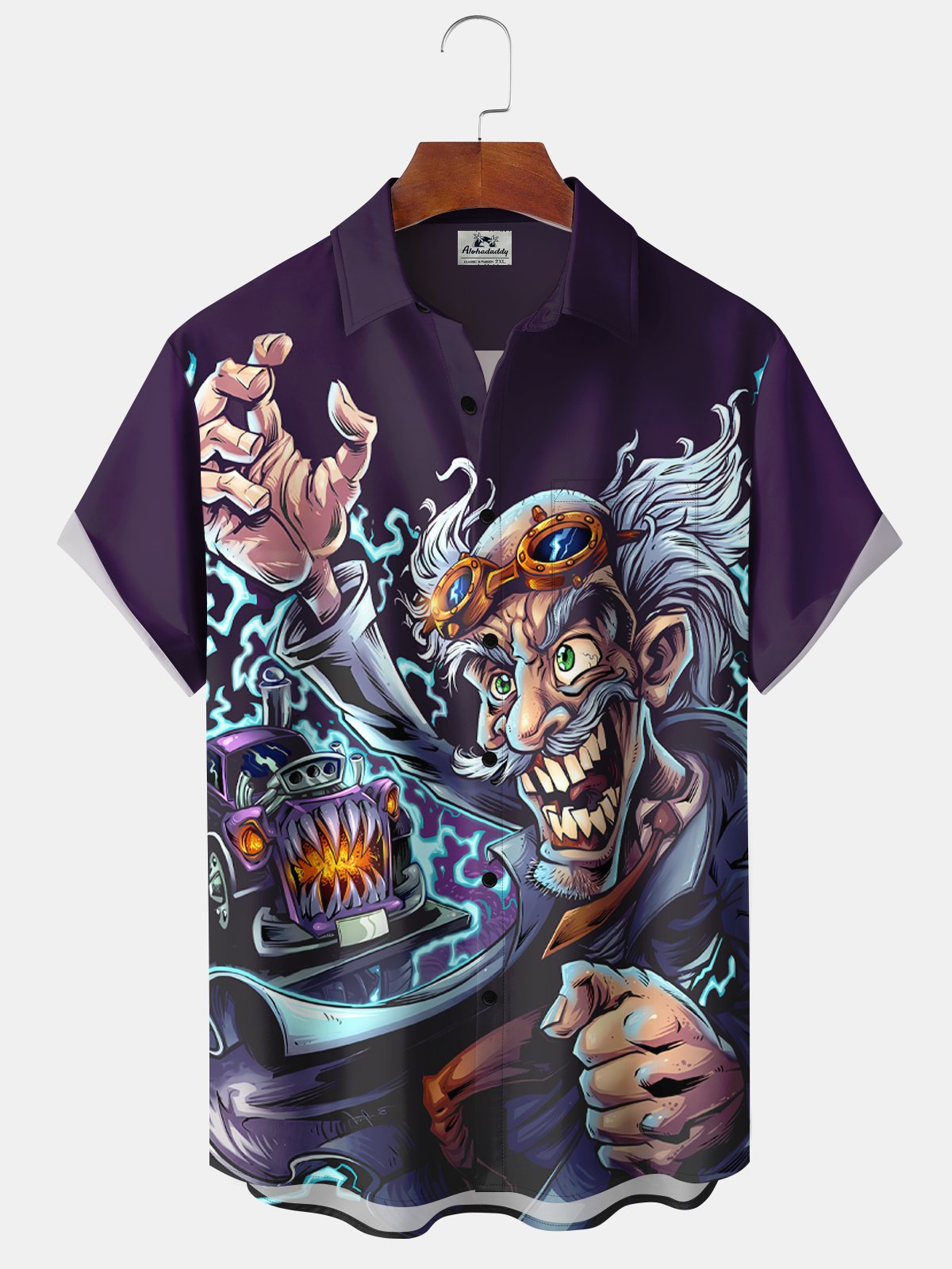 Alohadaddy Retro 60s Cartoon Car Flame Pocket Shirt