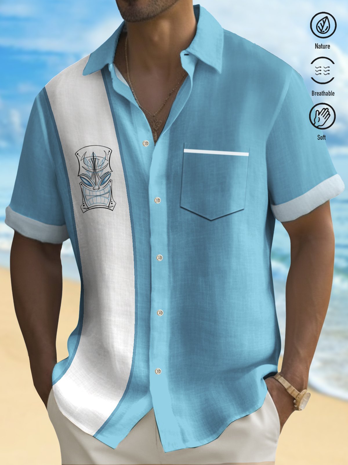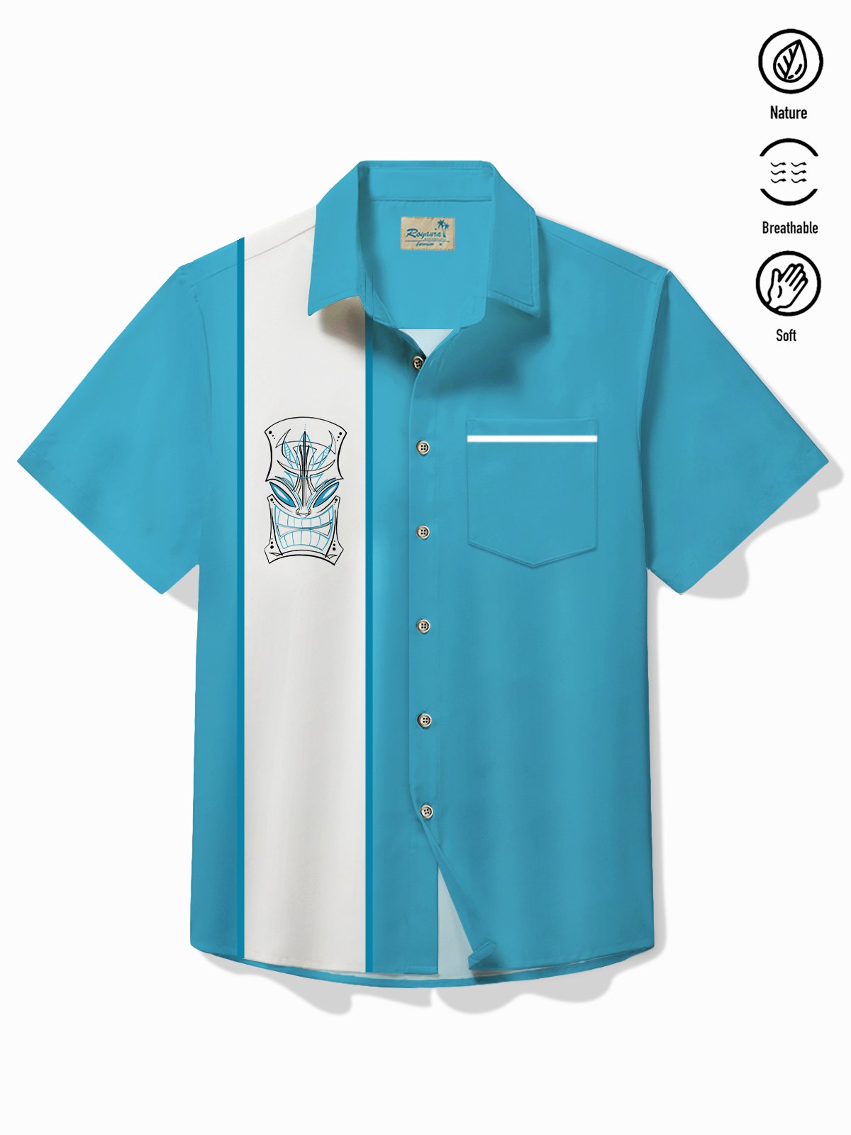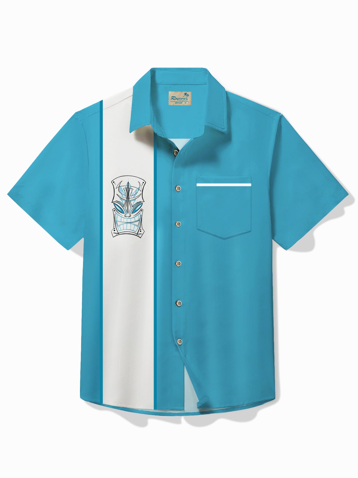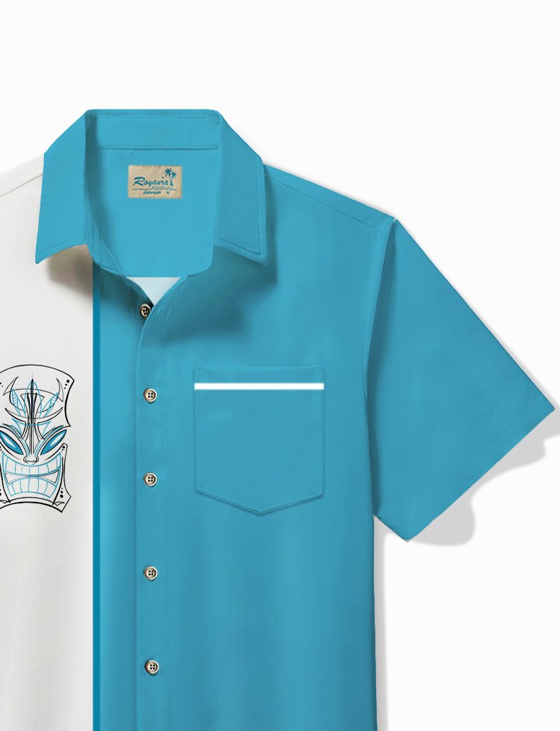 Alohadaddy Retro Bowling Construction Tiki Men's Hawaiian Shirt Stretch Easy Care Pocket Camping Shirt