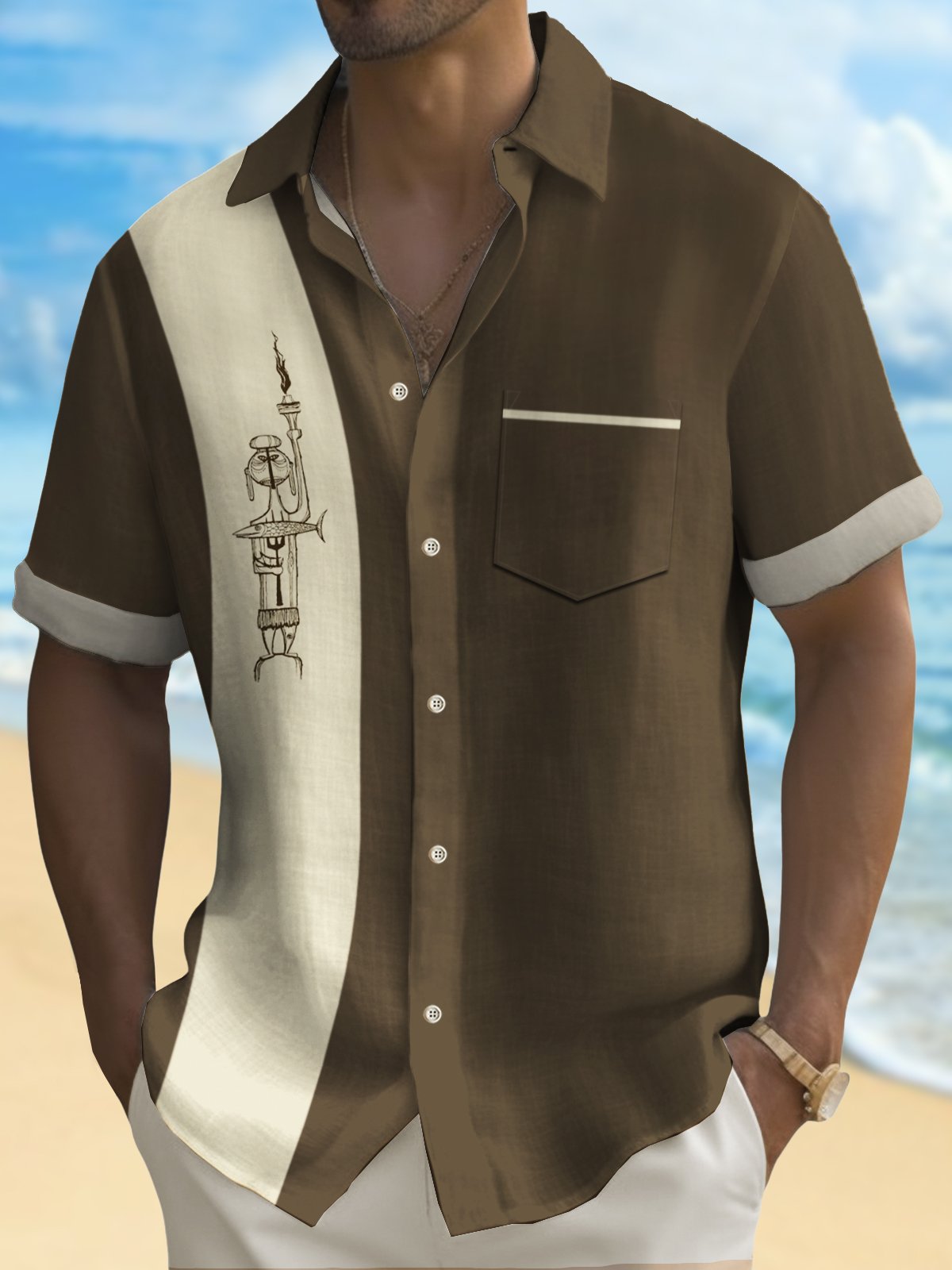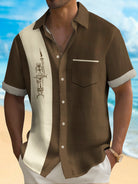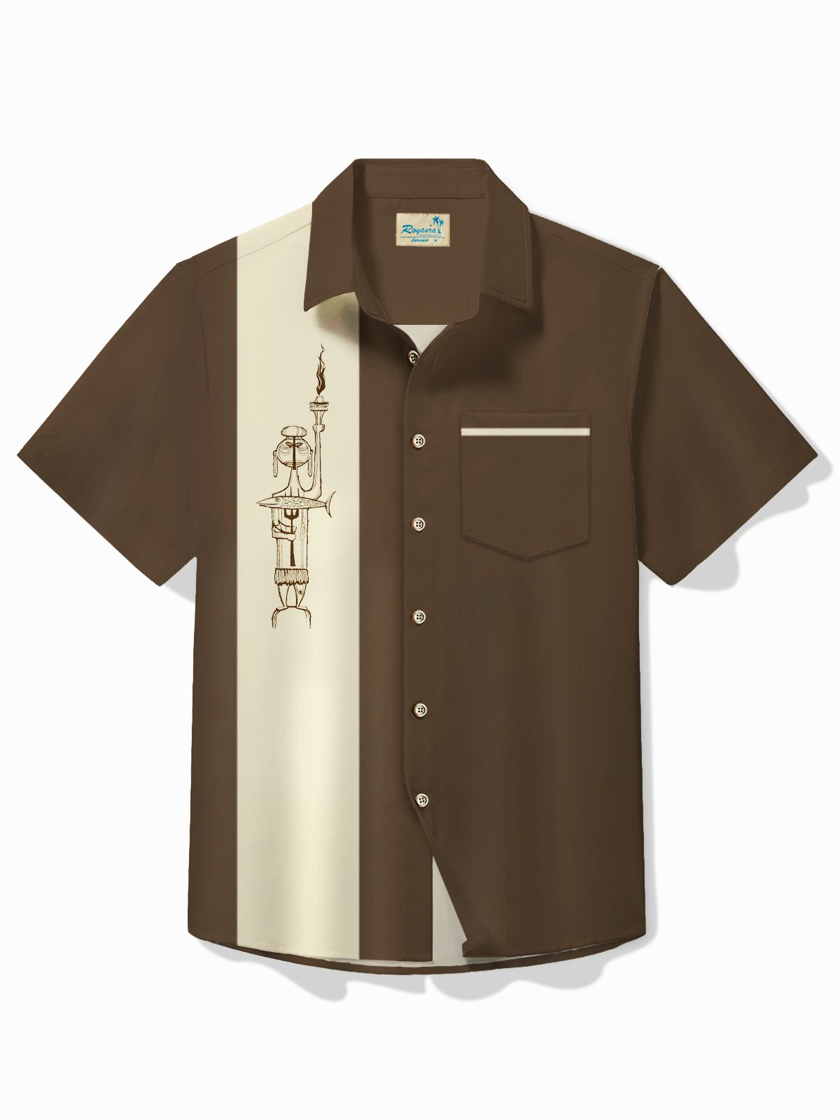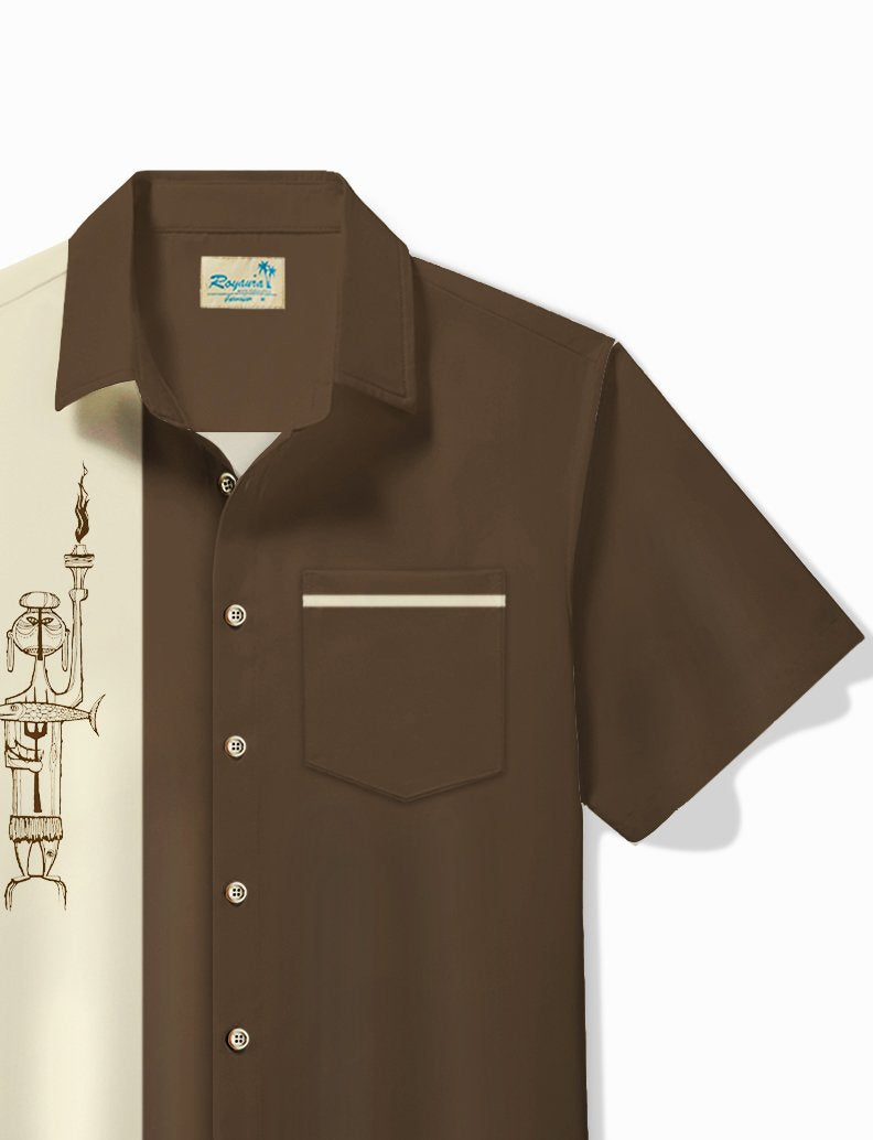 Alohadaddy Retro Bowling Men's Hawaiian Shirt Cartoon Line Print Pocket Camping Shirt